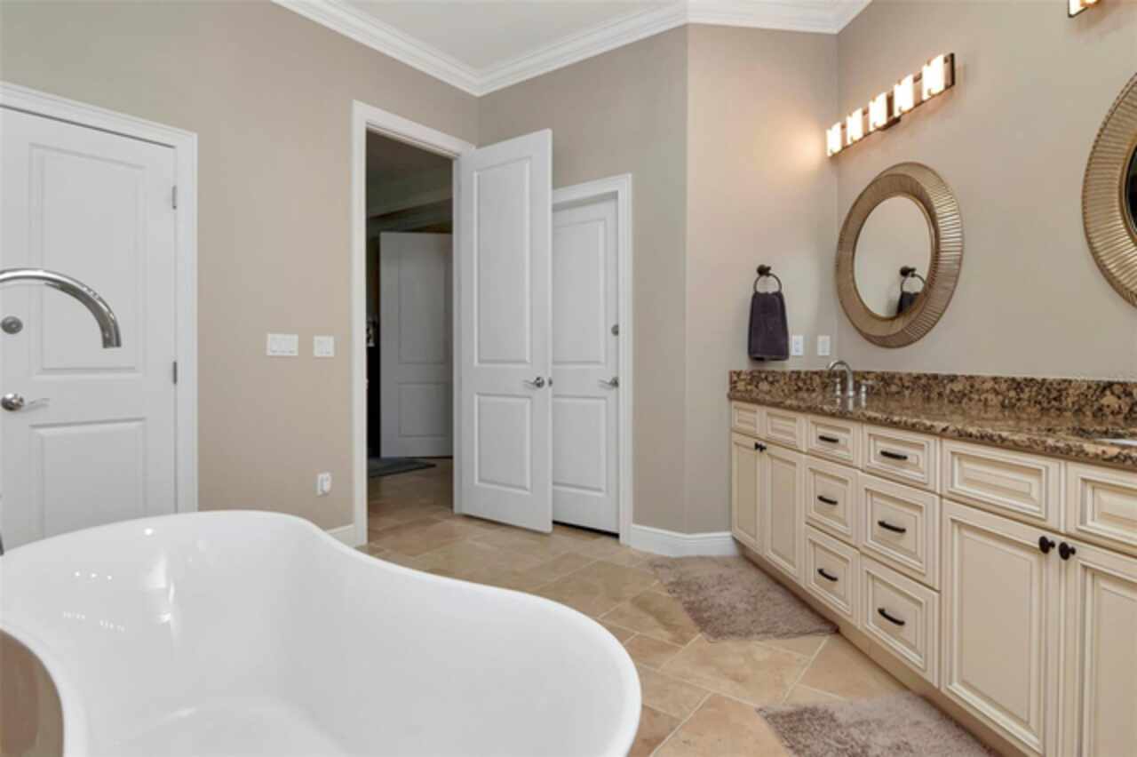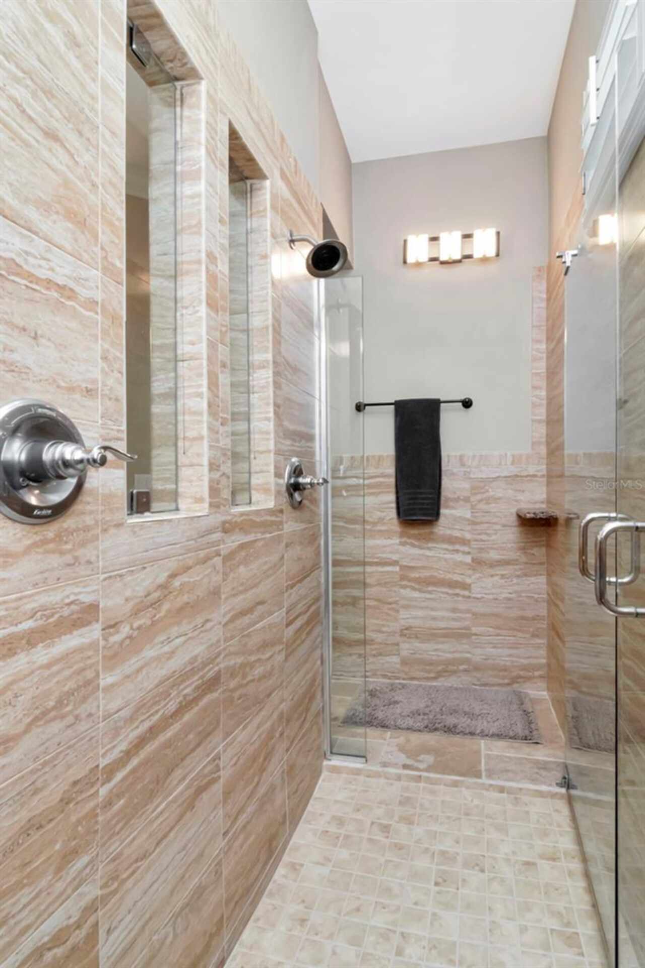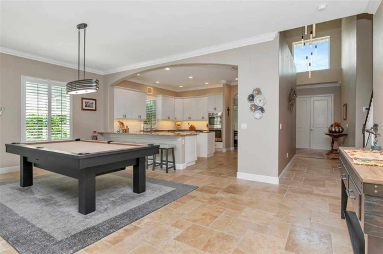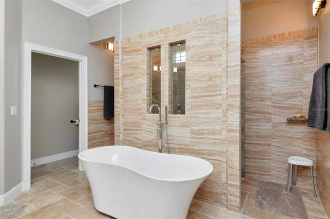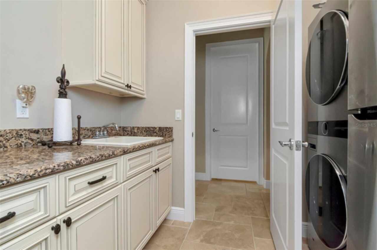 REDUCED PRICE. We are pleased to present this STUNNING, 2015 BUILT, 3 bedrooms, a study and plus bonus room, 3-1/2 bath, 3, 634 sq. ft. home in Cheval! This model-like property features a light and bright open floor plan with volume ceilings; a SPECTACULAR KITCHEN with 42" custom cabinetry, granite countertops, stainless steel appliances, new 5-burner island gas cooktop (2021), double ovens, drawer microwave and walk in pantry; spacious bedrooms (MAIN FLOOR PRIMARY BEDROOM); a BEAUTIFUL PRIMARY BATHROOM with large shower (dual shower heads), freestanding garden tub and dual master closets; all secondary full baths with custom cabinetry and granite countertops; MAIN FLOOR ALL TRAVERTINE and WOOD-PATTERNED TILE on second floor; tray ceilings; PLANTATION SHUTTERS and ELEGANT CROWN MOLDING throughout; 5-1/2 inch baseboard throughout; gas fireplace; a HEATED SALT WATER POOL with brick paver decking and newly re-screened enclosure (heat pump pool heater installed 2020, new salt cell 2021, new variable-speed pool pump 2023); 2 HVAC systems and tankless hot water heater; security system; laundry room with custom cabinetry and sink; large closets that provide great storage; oversized 2 car garage with epoxy floor finish (2019) and overhead storage racks; a brick paver driveway (2020), walkway and porch and much more! Cheval has 3 convenient entry gates, all of which are staffed 24 hours a day, seven days a week. Cheval also offers easy access to the newly renovated Cheval Golf Club and Athletic Center and the new Cheval golf course opening in November, and to the adjoining TPC Club. Add to these GREAT SCHOOLS, a community park/playground and a convenient location for shopping and interstate travel and you have a fantastic place to call Home. Enhanced energy efficiency and quietness with new (November 2024) HVHZ (Miami-Dade) impact French doors with internal shades and blackout drapes going from master bedroom to pool. Other energy improvements include changing all ceiling fans to new remote-control fans with LED lights, upgrading almost all light fixtures throughout the house to LED, installing a new variable-speed Energy Star rated pool pump, improving attic insulation to R38, installing radiant barrier, and adding R30 insulation over garage. As a precaution against potential prolonged power outages without worrying about the availability of gasoline, installed a generator inlet port with manual interlock (connects generator to circuit breaker panel) and an extended natural gas line to connect the included portable tri-fuel generator capable of powering most critical electrical equipment.