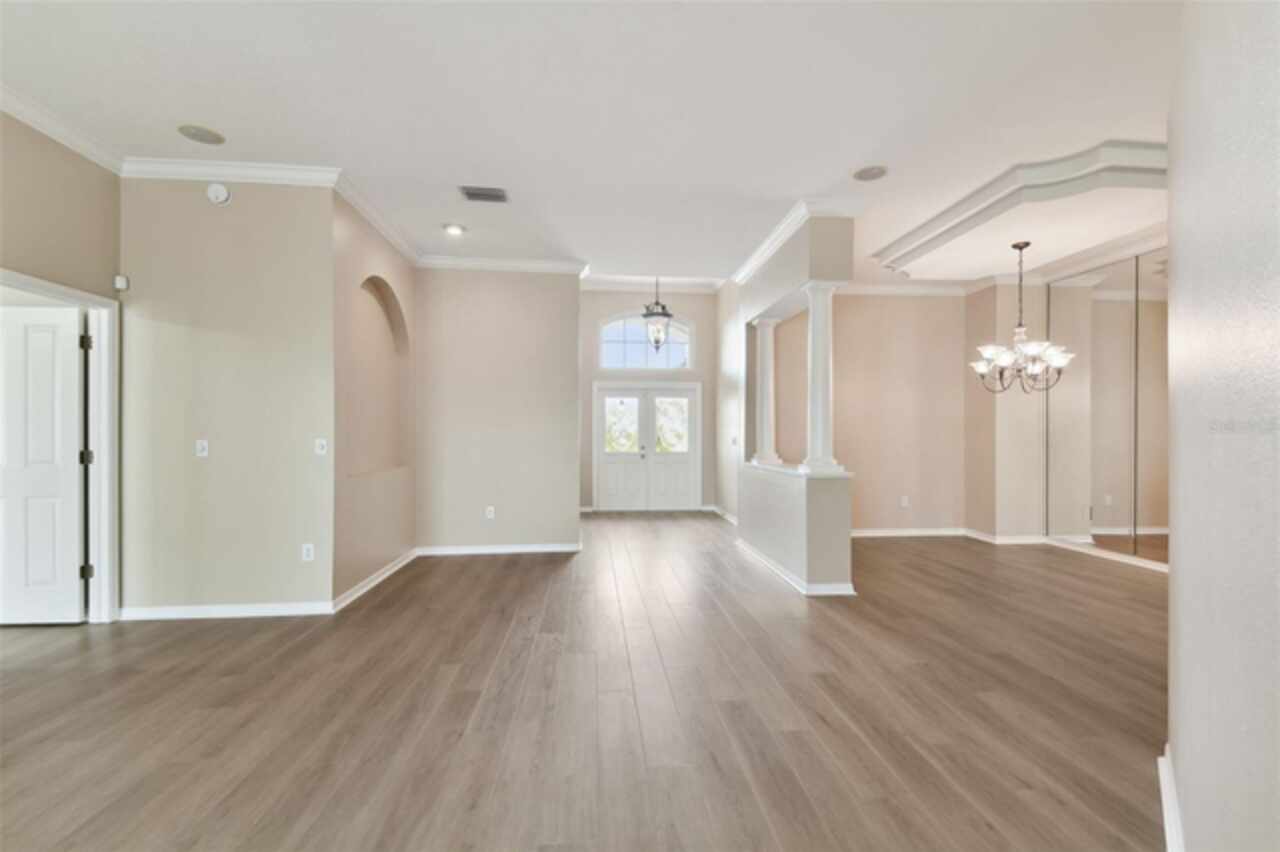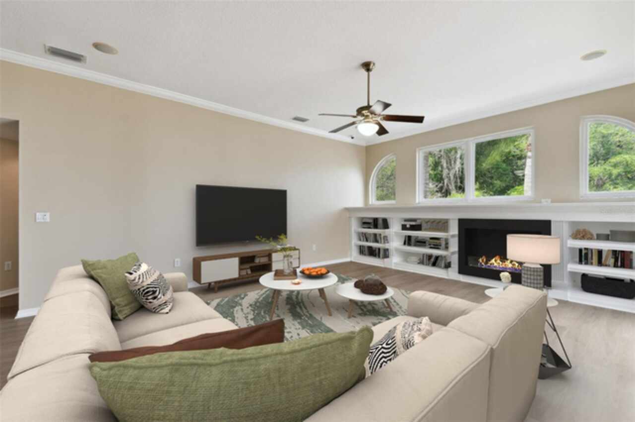 Under contract-accepting backup offers. One or more photo(s) has been virtually staged. NEW AC, NEW APPLIANCES, SO MANY UPGRADES! INCREDIBLE NEW PRICE. Includes 1 year Home WARRANTY! Welcome to over 3, 200 square feet of fully updated elegance in the prestigious, gated Preakness Village of Lexington Oaks Golf and Country Club. This 4-bedroom, 3.5-bathroom home has been thoughtfully redesigned from top to bottom, blending modern luxury with everyday functionality. Step into a grand foyer with soaring 10-foot ceilings and experience the warmth of brand new luxury vinyl plank flooring, paired with soft new carpet in the guest bedrooms. The heart of the home—an expansive open-concept family room with custom built-in shelving—flows seamlessly into the gourmet kitchen featuring new granite countertops, stainless steel appliances, and a motion-sensing faucet. Every detail has been considered, from updated sinks, faucets, and toilets throughout to a brand NEW AC system just installed for year-round comfort. This spacious floor plan includes a formal living room, formal dining room, a dedicated office, and a versatile upstairs bonus room with a remodeled half bath—perfect for a home gym, theater, or playroom. Enjoy peace of mind with hurricane-impact windows and sliders (a $30, 000 value), a 2021 roof, and a finished garage with epoxied flooring and Wi-Fi-enabled MyQ garage door opener. A water softener and reverse osmosis system ensure top-tier water quality throughout the home. Step outside to your extended screened-in patio (electric set up for a Spa), surrounded by mature palm trees and lush landscaping, with a tranquil pond and conservation view near the 18th hole—an entertainer’s paradise or your private retreat. With over $100, 000 in recent upgrades, this move-in-ready home stands out as one of the best values in the community. Residents enjoy resort-style amenities including a clubhouse, pool, fitness center, tennis and basketball courts, sand volleyball, and scenic walking/biking trails. Conveniently located just minutes from I-75/I-275, Wiregrass Mall, Tampa Premium Outlets, and top-rated schools. SAVE 1% off your interest rate in your first year with preferred lender! The property is not currently homesteaded so taxes can be adjusted. Don’t let this rare opportunity pass you by—schedule your private showing today!