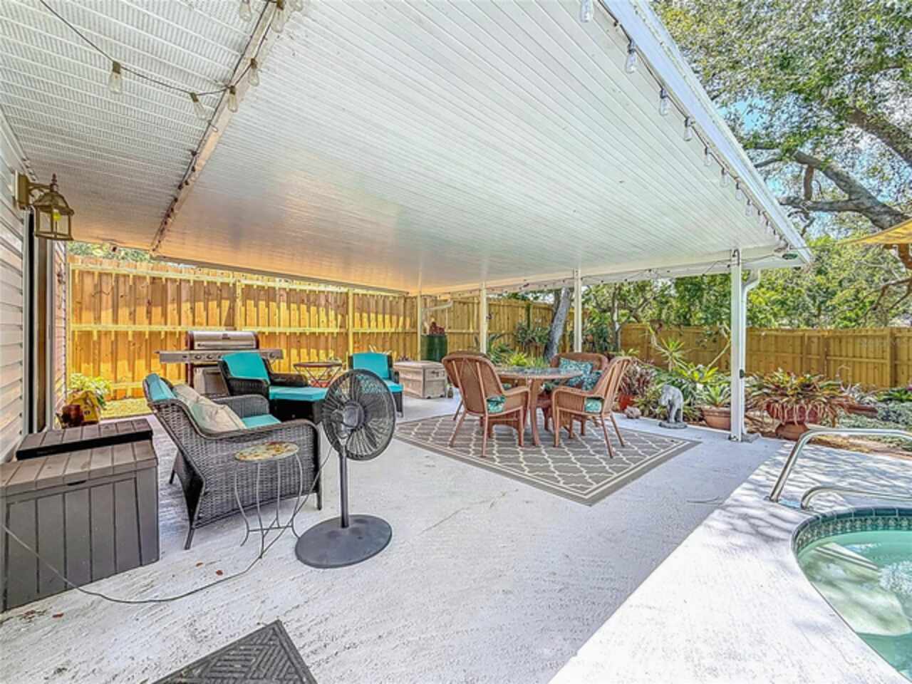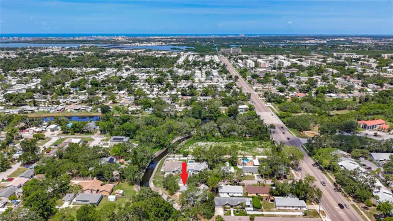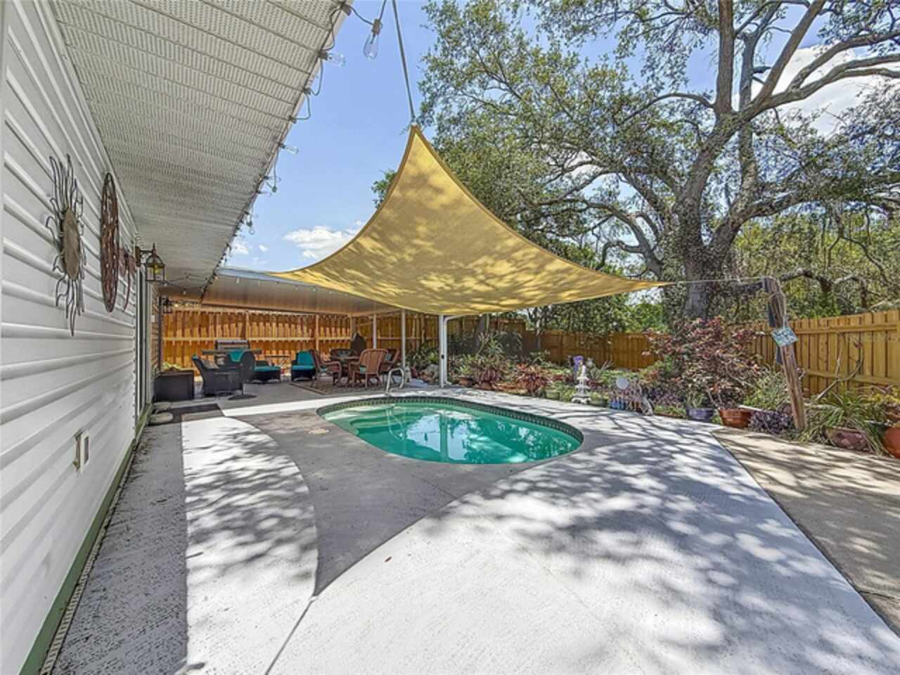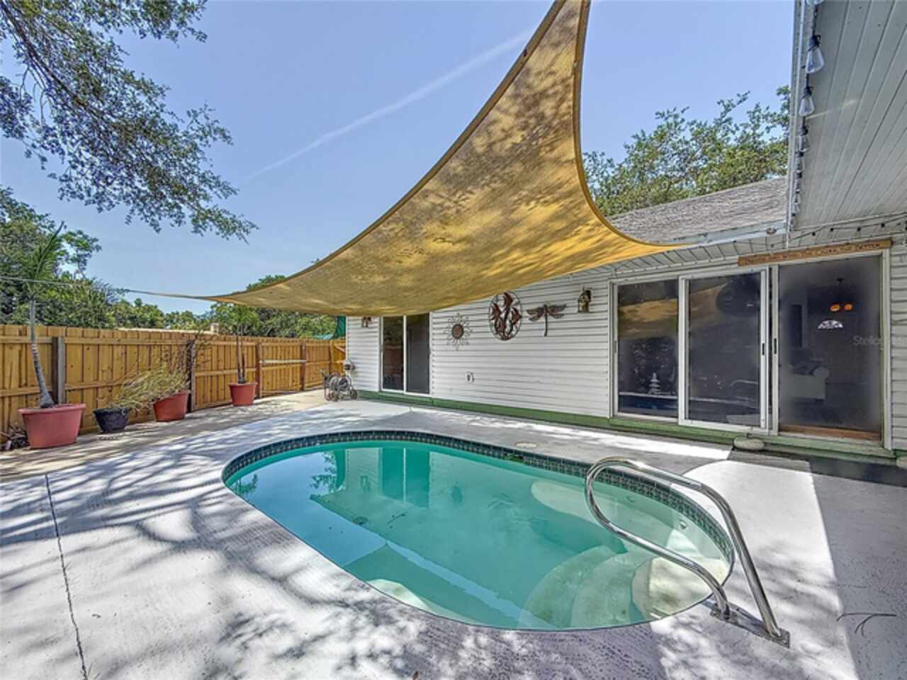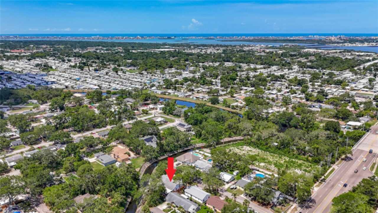 Welcome to this well loved 3-bedroom, 2-bathroom home, ideally situated at the end of a peaceful dead-end street adjacent to Joe’s Creek. Centrally located in unincorporated Pinellas County—where short-term rentals are legally permitted—this home offers incredible flexibility. Whether you're searching for a full-time residence, a winter retreat, or an AirBnB opportunity, this property is ready to meet your needs. Owned by the same family since it was custom-built in 1992, the home blends privacy, comfort, & thoughtful upgrades. Upon entry, you're welcomed by a spacious foyer with Saltillo tile flooring. To the right is the formal dining room, featuring a vaulted ceiling & a skylight. Eco-friendly bamboo flooring continues into the adjacent living room, creating a seamless flow. Bedrooms 2 & 3 are located on the north side of the home, both with carpeting, ceiling fans, and generously sized closets featuring double shelving and hanging racks. Bedroom 2 also includes a charming window seat with built-in storage. These 2 bedrooms share a Jack-and-Jill bathroom, designed with a large soaking tub, glass block wall, and skylight—perfect for relaxing in a naturally lit space with plenty of room to unwind. The primary suite, located on the opposite side of the home, offers privacy and comfort with neutral-tone luxury vinyl flooring, a ceiling fan, and both a walk-in closet and wall closet. A sliding glass door provides private access to the backyard oasis. The UPDATED EN SUITE BATH features a modern double vanity, a walk-in shower, and a linen closet. The kitchen, thoughtfully RENOVATED in 2009, is a highlight of the home. With rich wood cabinetry, SILESTONE U-shaped countertops, stainless steel appliances (including a propane gas range), and four Lazy Susan cabinets, it offers exceptional functionality. Additional touches include a spice cabinet, pull-out shelving, under- and over-cabinet lighting, bay window, a skylight, and space for a dinette—plus a breakfast bar/pass-through to the living room. Step outside to your private backyard retreat, complete with a covered lanai, shade from mature trees, and a 3600-gallon in-ground saltwater fiberglass pool with integrated jacuzzi—perfect for year-round relaxation. A wood fence (2024) and low-maintenance landscaping add privacy and ease. The oversized 2-car garage provides additional storage with built-in shelving and cabinetry. Other key features include: Circular driveway, RING doorbell & spotlight cameras, 2020 HVAC system with UV light, 2008 roof, 2024 pool pump, Tinted windows for energy efficiency, Hurricane protection for all doors and windows, Tankless electric water heater (2019), Water softener (recent), Leased propane tank, Electric hookup for a 35’ RV, Convenient sewer clean-out access, Solar lighting on fencing. Located in a quiet, no-through-traffic neighborhood, this home is just minutes from shopping, beaches, airports & local amenities—yet feels like a private enclave all your own. Whether you're an investor, snowbird, or year-round resident, this home is ready to welcome its next chapter. Please view the 360° virtual tour & schedule your private showing today. Claims made in this listing are provided by the seller and are believed to be accurate; however, buyers are responsible to verify, as some information could change from time of listing. ( PLEASE NOTE: RING DOORBELL & CAMERAS are RECORDING AUDIO & VISUAL) NEVER FLOODED. Only the southeast corner of the garage is in flood zone AE.