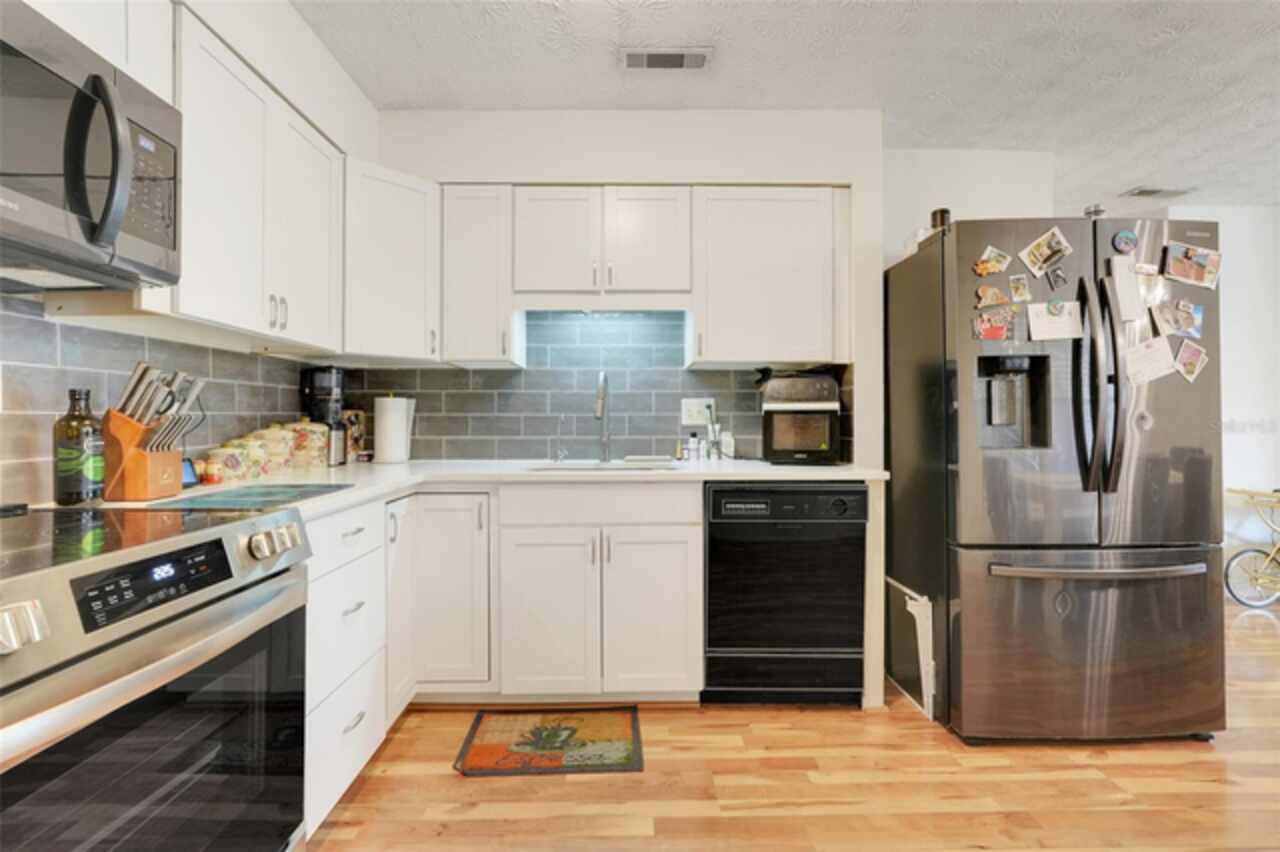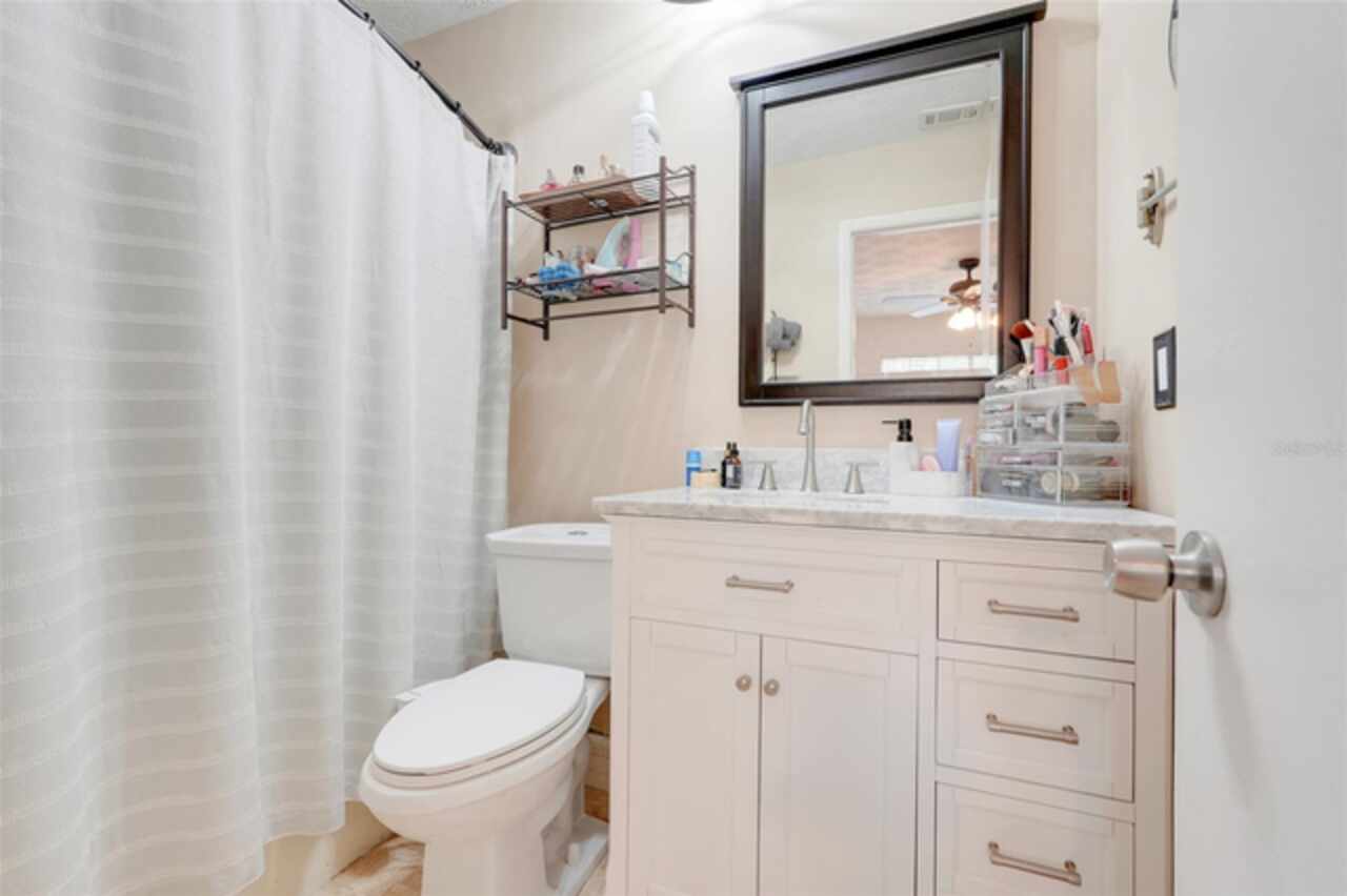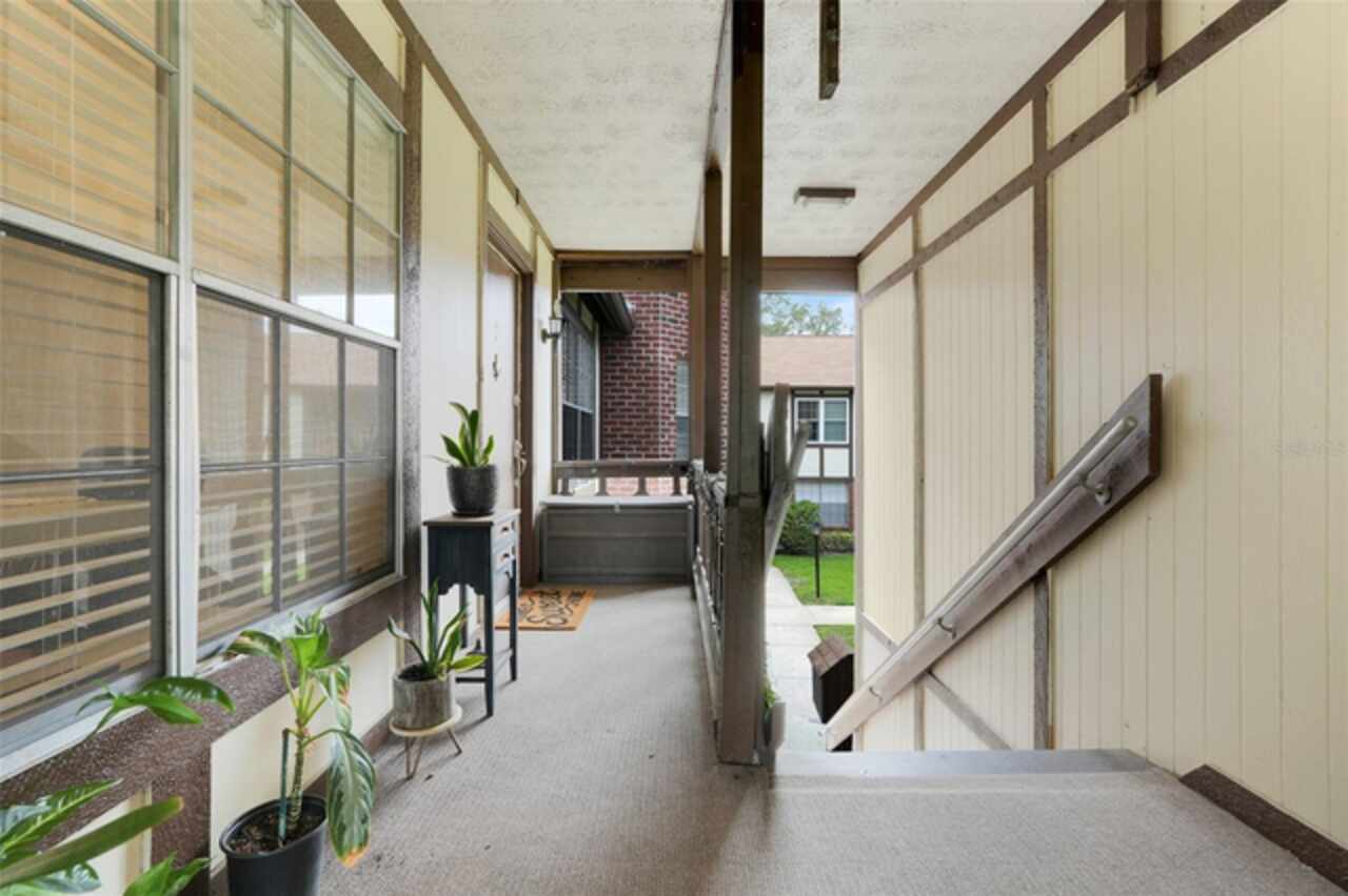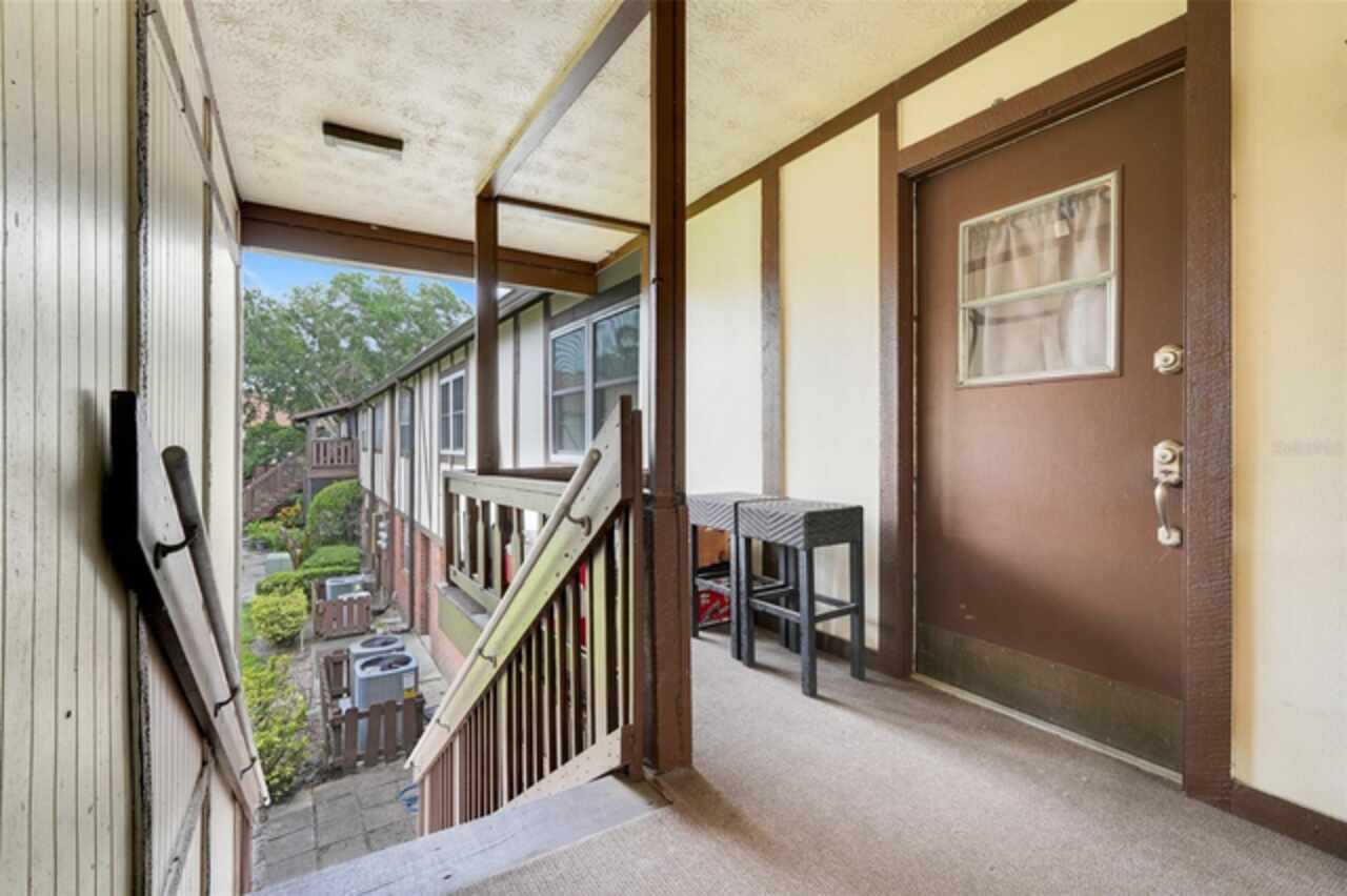 Beautifully upgraded and move in ready Camelot condo with TWO dedicated parking spaces including a covered carport spot! Gorgeous new white shaker cabinets with pristine Quartz countertops complete with contrasting gray tile backsplash adorn the fully appointed eat-in kitchen. Wood laminate floor adds to the warmth and durability of the open and airy floorplan. The corner unit allows fresh Florida sunlight to shine in, or close the faux wood louvered blinds on every window to set the mood a little darker. The three spacious rooms all come with quality travertine tile meaning no carpet in the home! The upgraded bathrooms feature upgraded custom vanities with matching fixtures for a luxurious feel, and the included indoor full size washer and dryer offer convenience and functionality. This second floor unit even comes with a private front balcony and sitting space which can be screened in for outdoor living space if desired. Camelot by the Lake community is one of the most desired condo communities in all of Orlando due to it's proximity to all Central Florida has to offer and is one of the only complexes which offers unparalleled amenities like lake access, a BEACH, boat storage, fitness center, pool, tennis court, and clubhouse for the residents! Enjoy everything you could ask for with the Florida lifestyle in this oasis community in the heart of Central Florida! Just bring your furniture, sunblock, and beach ball to start relaxing in your new home in the Sunshine State!