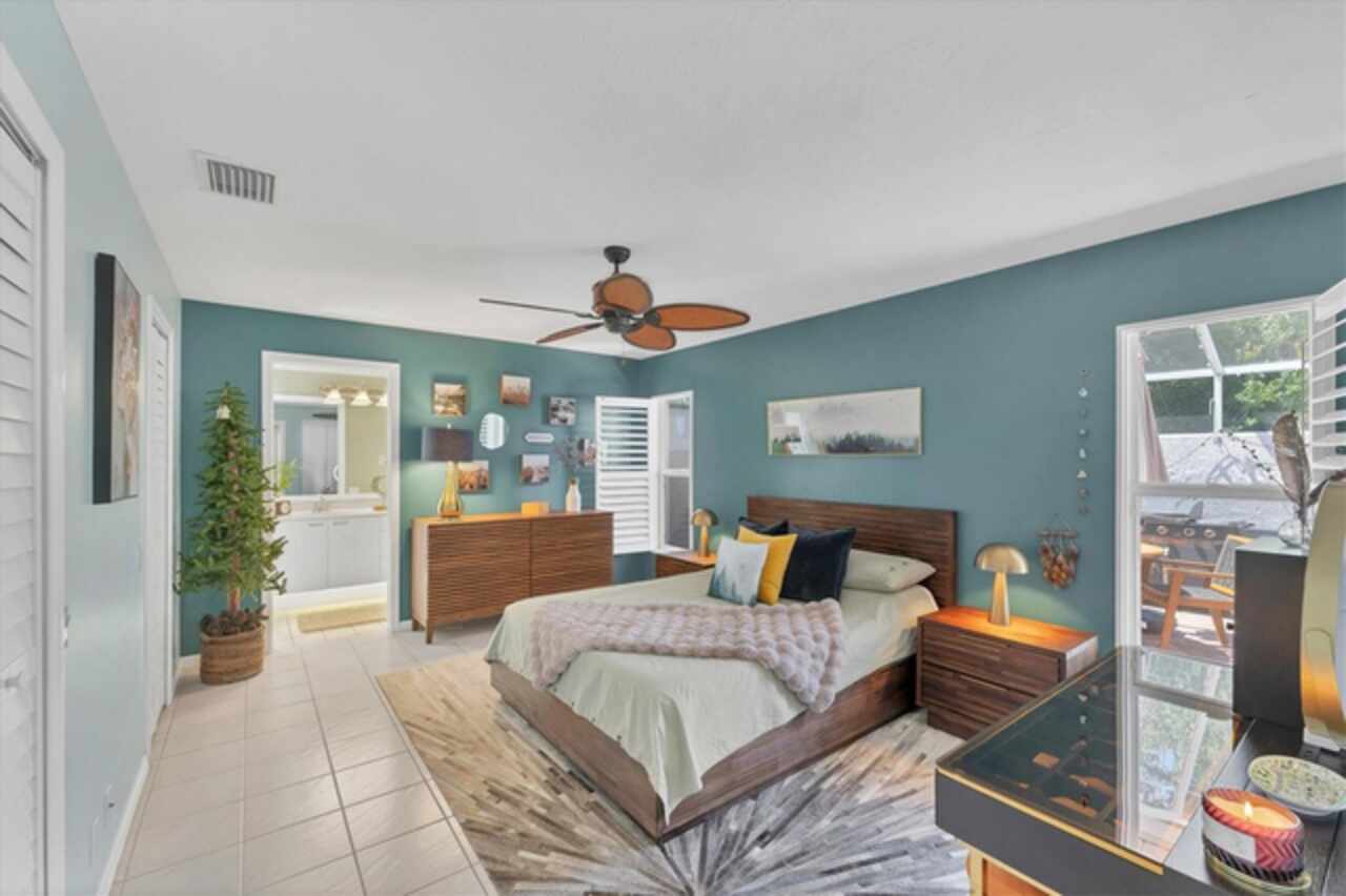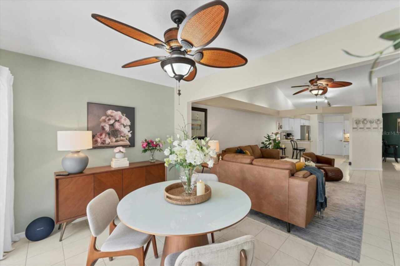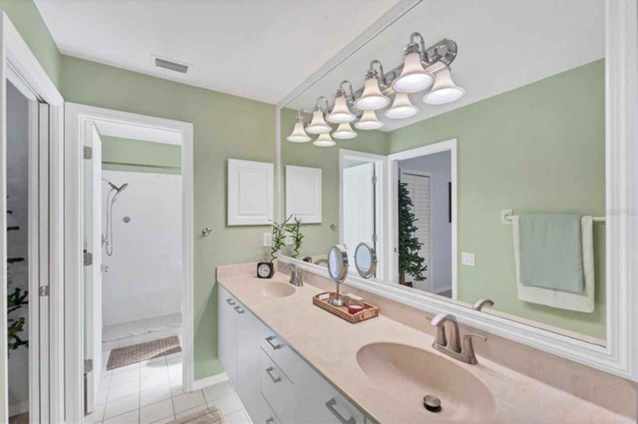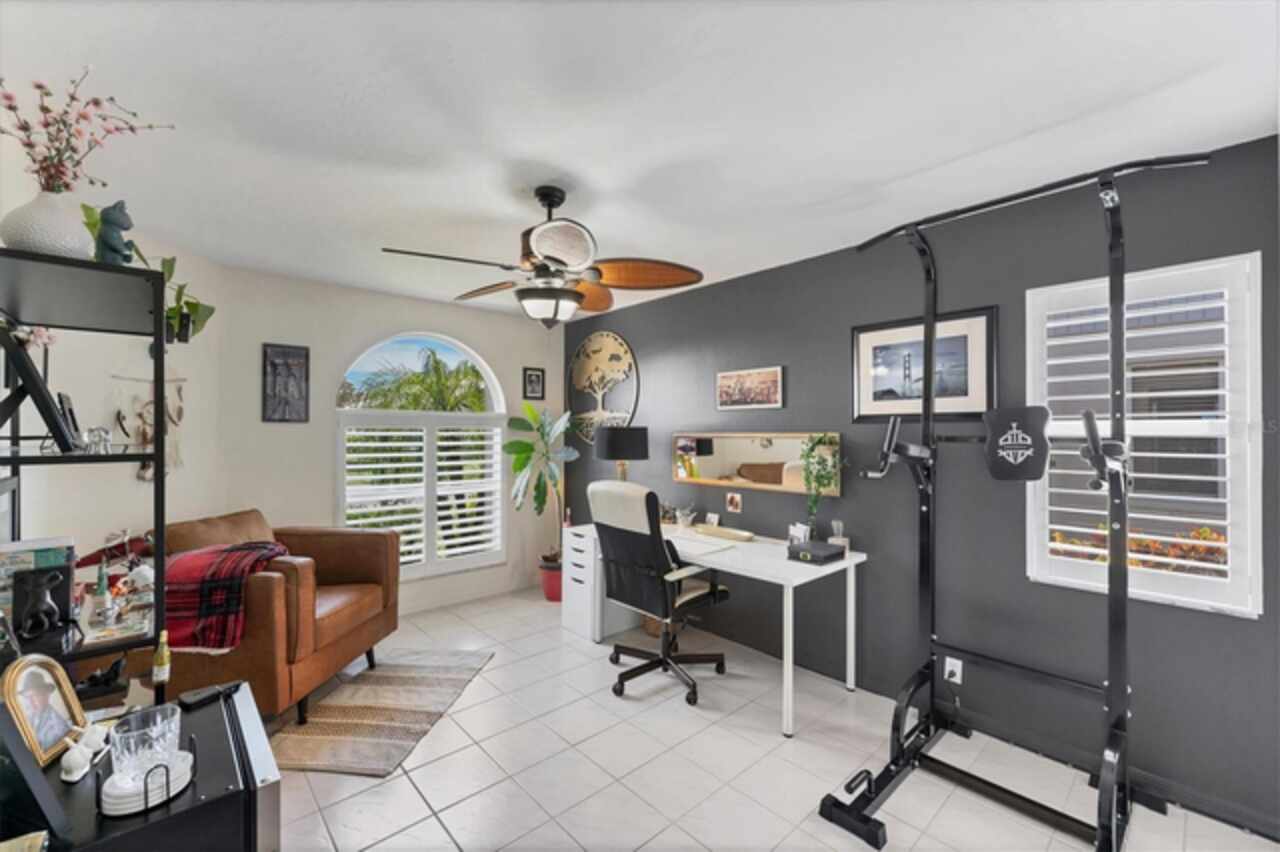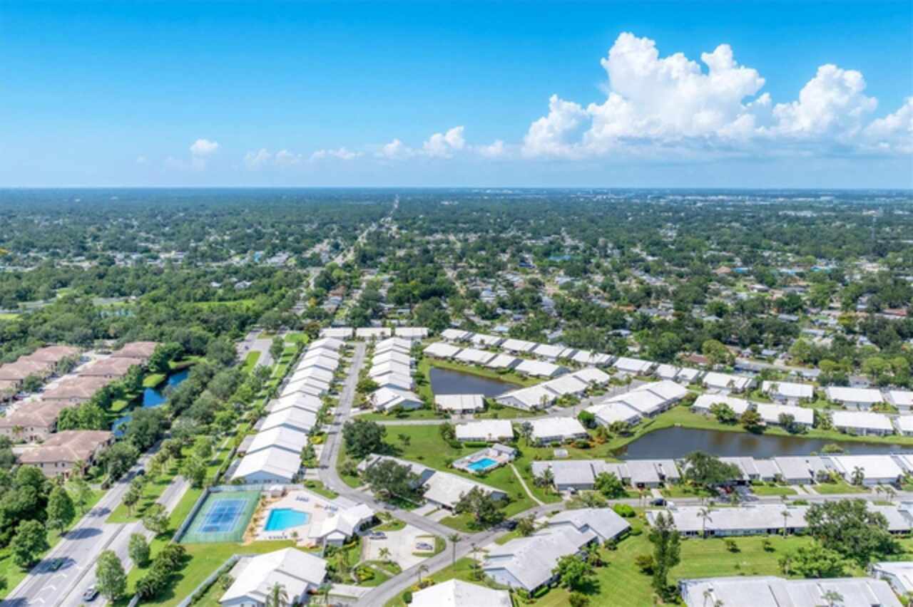 Step inside this beautifully maintained and thoughtfully updated 3-bedroom, 2-bath residence, offering 1, 938 square feet of spacious, light-filled living. From the moment you cross the threshold, the world fades away, and you're welcomed into a haven of calm—where comfort and elegance meet in perfect harmony. Color-drenched walls and rich, upgraded light fixtures complement an elegant, timeless color palette, while soaring cathedral ceilings and plantation shutters enhance the home’s sense of scale and refinement. The flexible floor plan includes a formal living room, family room, and dining area, giving you endless options to tailor the space to your lifestyle. One of the bedrooms is currently being used as a stylish home office, ideal for remote work or quiet reflection. The kitchen is a true culinary delight, offering abundant cabinetry and counter space, stainless steel appliances, and a bar-height counter perfect for casual dining or entertaining. Just off the kitchen, the garage boasts a utility sink, gleaming epoxy floors, and an additional refrigerator that conveys with the home. Your serene primary suite offers two generous walk-in closets and an ensuite bath with a luxurious soaking tub—the perfect place to unwind at the end of the day. Thoughtfully positioned, the two secondary bedrooms ensure privacy for the primary suite, making this home feel even more spacious and well-planned. Step outside to a screened-in patio that serves as a delightful escape—an outdoor living area finished with classic pavers, framed by a private stucco wall, and brimming with charm. Whether dining alfresco, enjoying a quiet morning coffee, or soaking in the included hot tub, this serene retreat offers shade, privacy, and ample headroom for umbrellas—making it your go-to sanctuary year-round. Located in a vibrant, amenity-rich community, residents enjoy access to a recently renovated geothermal heated pool (2024), NEW ROOFS ON THE VILLA and an active clubhouse with year-round events and games like Mahjongg, Bridge, and Poker, as well as tennis and pickleball courts. Ideally positioned near shopping, dining, A-rated schools, hospitals, and I-75—plus just a short drive to Siesta Key, America’s #1 Beach—this home offers the perfect balance of peaceful living and everyday convenience.