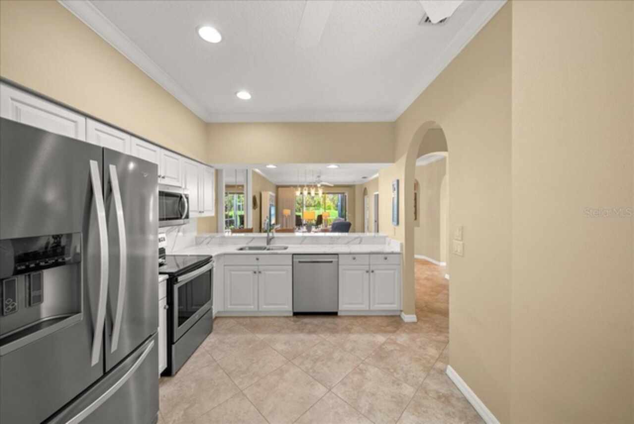 Motivated Seller! Embrace the ultimate Florida lifestyle in this furnished, beautiful end-unit Club Home located in the renowned Heritage Oaks Golf & Country Club. This desirable Arlington model perfectly balances comfort and recreation, featuring two bedrooms, two baths, a flexible study/den, and 1, 585 sq. ft. of meticulously maintained living space. The heart of the home is its open, airy layout, where the spacious kitchen shines with stunning quartz countertops and flows seamlessly into the living area—ideal for entertaining friends and family. Step out onto your private screened lanai overlooking the 17th green, where you can also take in views of the 1st green, aqua range, and the 18th tee. It’s a peaceful sanctuary to relax, dine, and soak in the tranquil golf course scenery. The primary suite is a true retreat with private lanai access, while the second bedroom and separate study/den offer flexible space for a home office, guest suite, or reading nook. The den also features its own screened lanai, perfect for quiet morning coffee or unwinding in the evening. As a resident of this Audubon-certified, gated community, you’ll enjoy access to a newly renovated golf course, tennis courts, a state-of-the-art fitness center, fine dining, and resort-style pools. This home isn’t just a place to live, it’s an invitation to a vibrant, active, and carefree lifestyle. Schedule your private showing today and experience it for yourself!