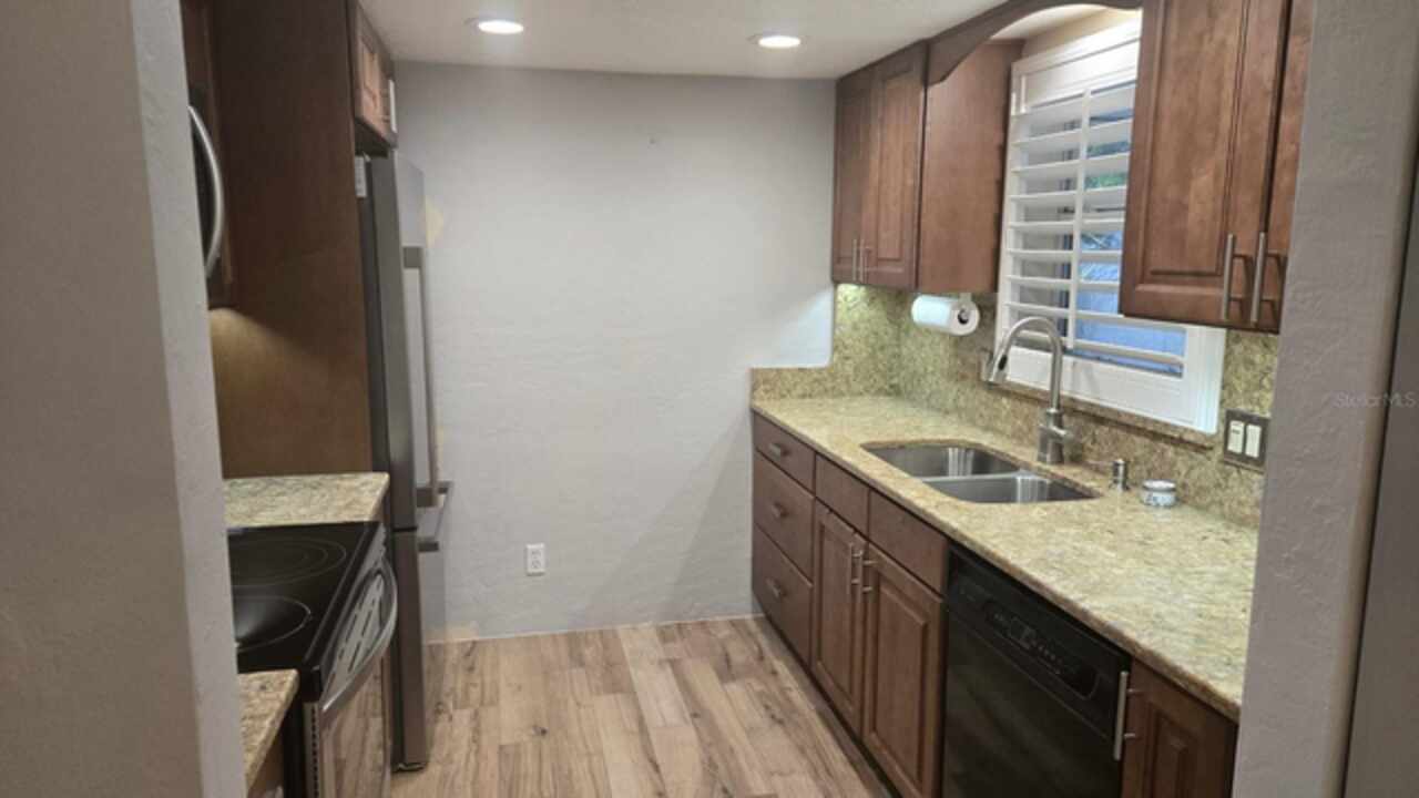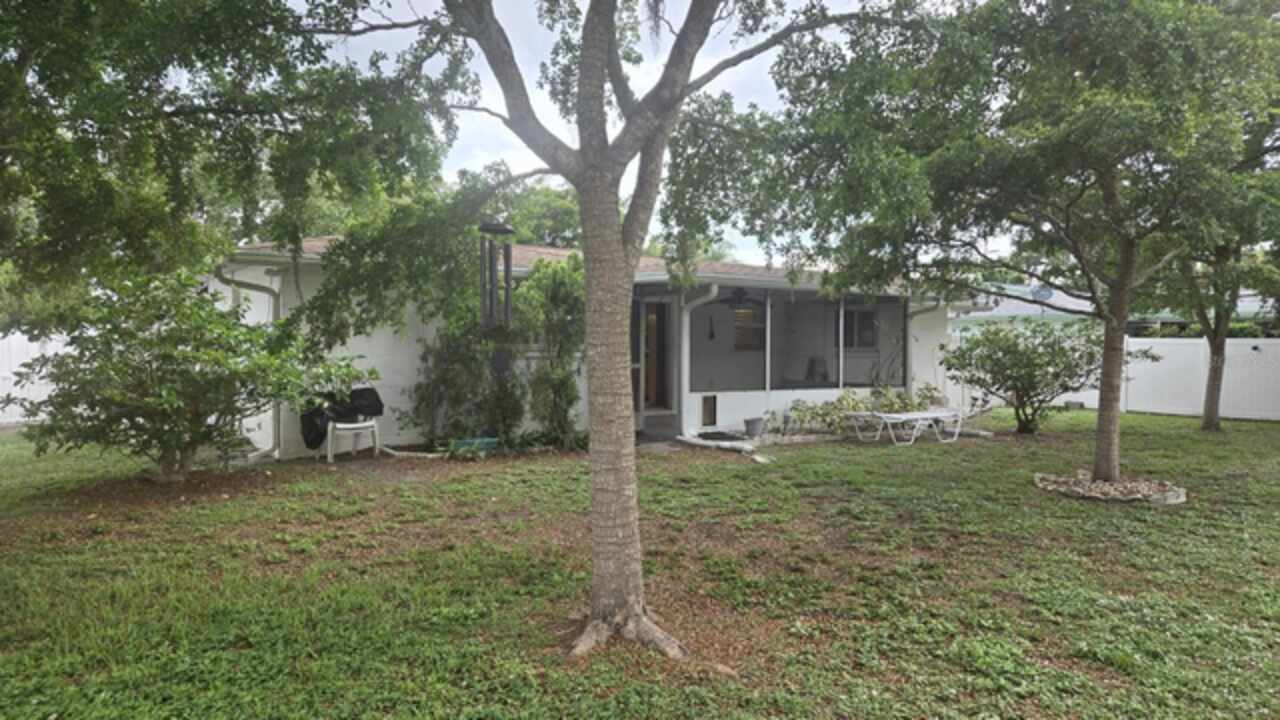 Cute updated home is a great neighborhood, ideally located close to shopping and dining options, and a quick drive to beaches and the freeway. 3 bedrooms all with walk in closets, 2 updated bathrooms, kitchen with granite counters and stainless appliances, plantation shutters on all windows, one car garage with laundry hookups, a nice size screened lanai, and a large fenced yard with 2 sheds for storage. Interior has been freshly painted. Newer impact windows, almost new AC, new fridge and dishwasher. Excellent rental history at $2500 a month. Not in a flood zone! On public sewer and water. Roof is 17 years old.