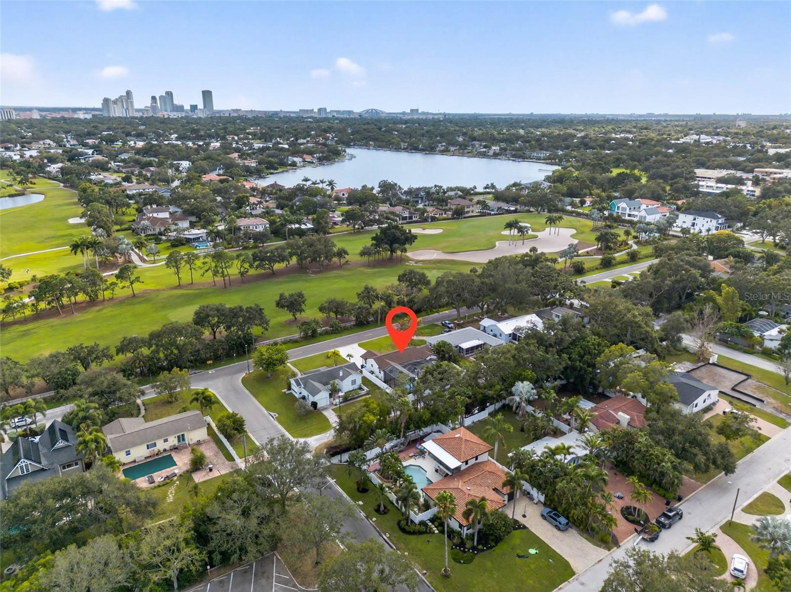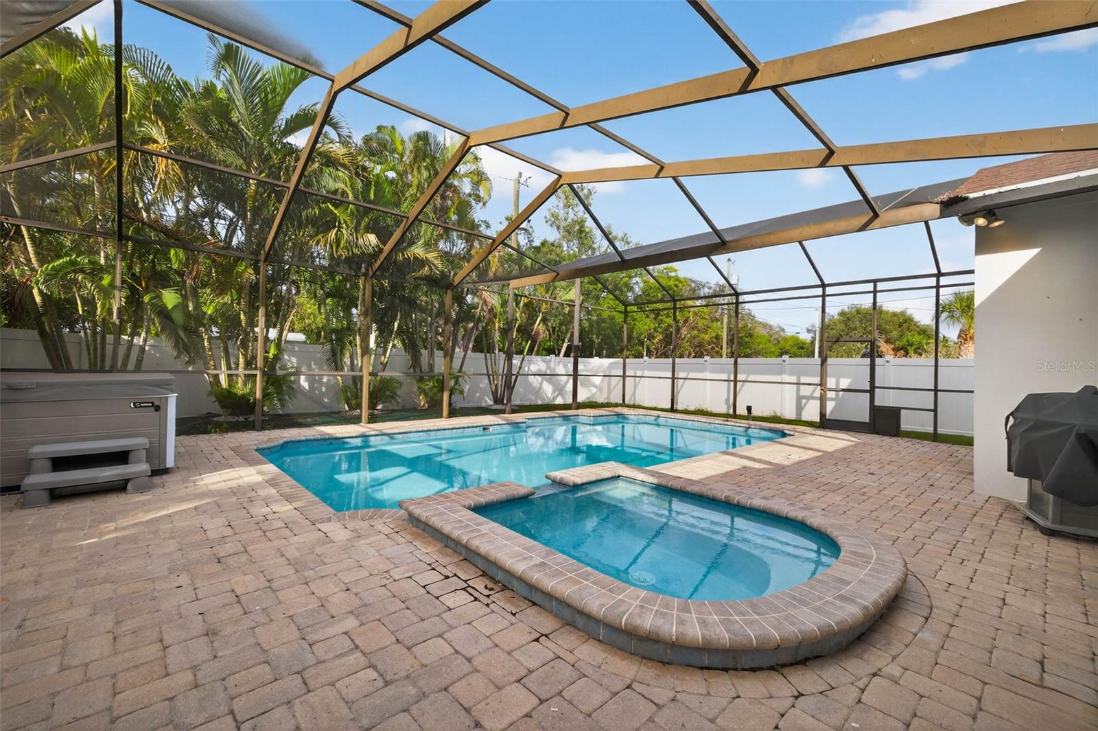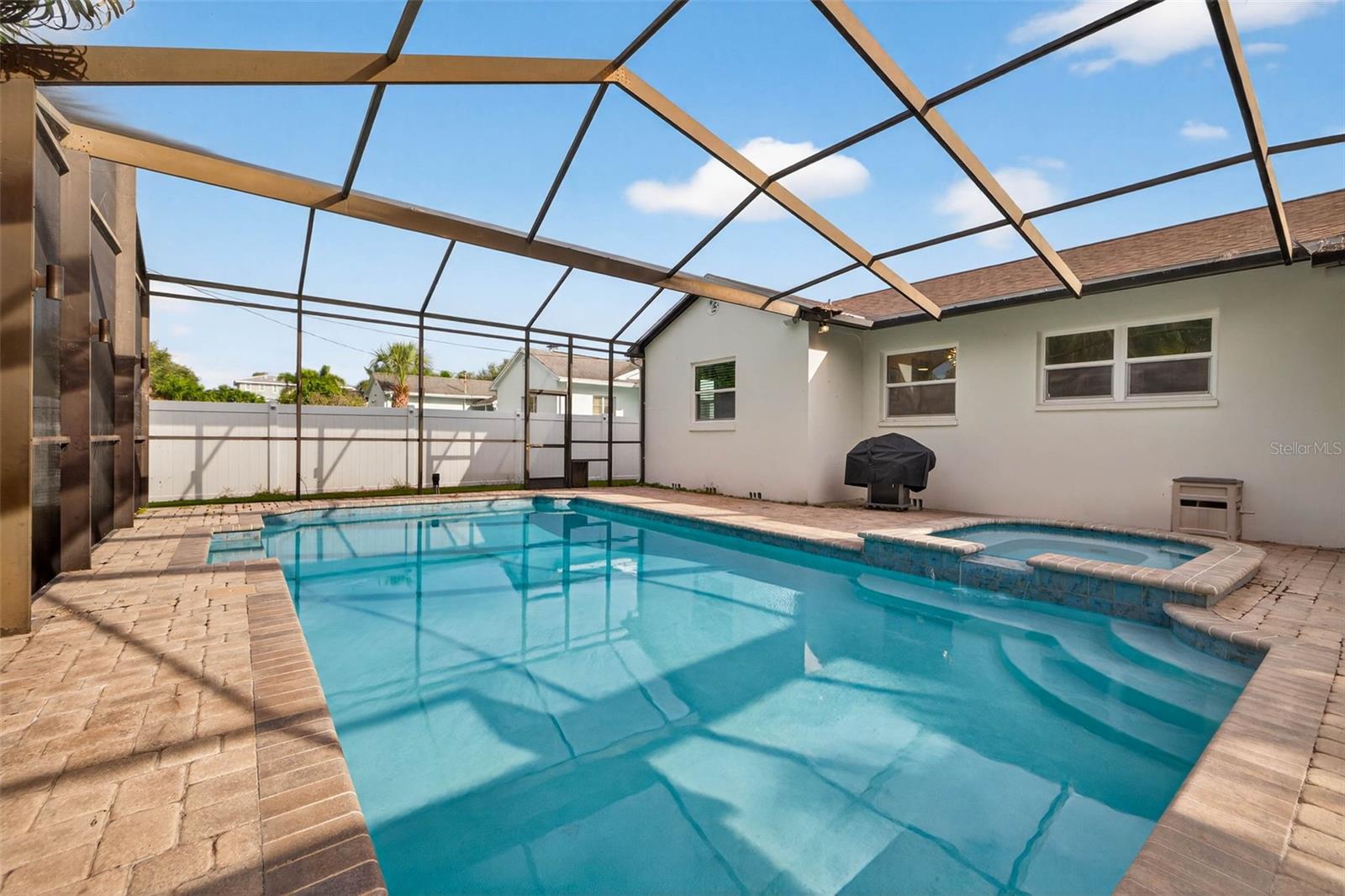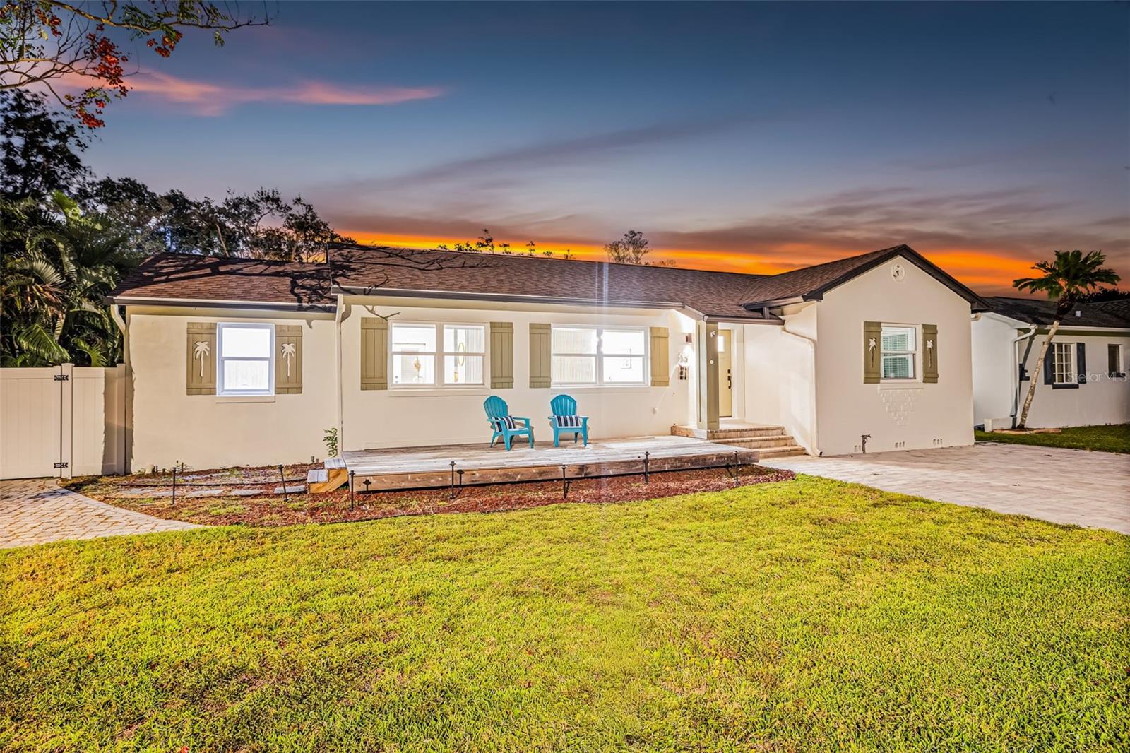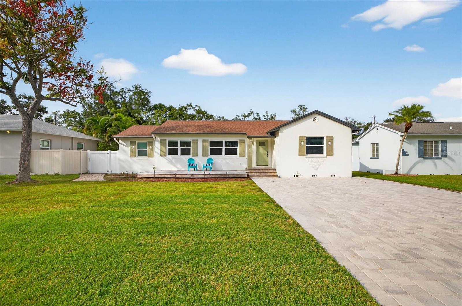 Welcome to this beautifully renovated, move-in ready pool home perfectly situated across the street from the renowned Vinoy Golf Course and just steps from Crisp Park—offering public boat ramps, a playground, and picnic areas. This prime location allows you to take the sidewalk to the waterfront and walk or bike to vibrant downtown St. Petersburg, or drop your boat, kayak, or paddleboard in at the Poplar Street ramp and be out on Tampa Bay in minutes. Inspired by Revive Designs’ signature “rebellious but modern” aesthetic, the home features high-end finishes and a stylish, functional floor plan. The galley-style kitchen showcases custom 42-inch cabinetry extending to the ceiling, quartz countertops, and top-of-the-line appliances. A cozy breakfast nook overlooks the expansive screened pool—ideal for relaxing or entertaining. The light-filled living room offers picturesque golf course views through large windows, while the formal dining room provides a perfect setting for gatherings. The primary suite impresses with vaulted ceilings and a luxurious en suite bath featuring a glass-enclosed shower, designer flooring, and upgraded lighting. Outside, enjoy a fully fenced backyard with vinyl fencing, double paver driveway, and an incredible outdoor lighting package that highlights the home’s beauty at night. Additional highlights include a detached air-conditioned one-car garage with alley access, new HVAC (2024), roof (2018), hurricane-rated front and back doors, encapsulated crawlspace, and a new pool pump and salt cell. Convenience abounds—minutes from Whole Foods, two Publix stores, Fresh Market, and Trader Joe’s—all easily reached by bike, golf cart, or car. This home blends modern luxury, thoughtful updates, and an unbeatable location in one of St. Petersburg’s most desirable neighborhoods.