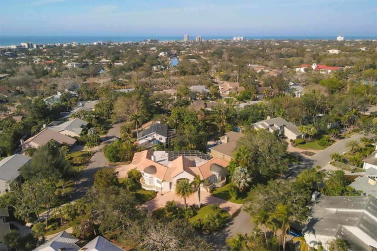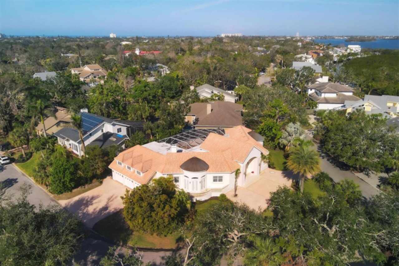 Immerse yourself in the tranquility of 5331 Siesta Cove Drive, a stunning jewel situated on a corner lot in the premier Siesta Key neighborhood. With a Mediterranean architectural aesthetic that radiates finesse, this residence features a stunningly crafted exterior adorned with European copper domes perfectly poised on an impressive 11’ elevation. Upon entry, one is greeted by an expansive, open concept living space that magnificently fuses the indoors with the surrounding natural beauty. High sweeping ceilings create an enviable sense of space and light, while polished ceramic tile flooring adds a touch of allure. Thoughtful consideration has been given to the common areas, such as the lavish living room, with an undeniable emphasis on comfort and sophistication. The episodic, broad windows let the glow of sunshine in, accentuating the elegant interior nuances. The kitchen is a veritable chef’s delight, replete with spacious cabinetry, and granitic countertops that inspire culinary creativity. The generous breakfast nook provides an intimate and cozy venue for smaller gatherings and casual meals. Outdoors, discover a secluded oasis where the skies, the greens, and the water merge to deliver a serene atmosphere. The sprawling deck, overlooking a large, elevated swimming pool, provides ample room for sun loungers, and al fresco dining setup, with outdoor kitchen. The residence’s strategic location in Siesta Key, FL, rewards its residents with convenient access to local amenities and landmarks. Enjoy being a stone’s throw away from stunning beaches, upscale shopping destinations, refined dining venues, and outdoor recourses. 5331 Siesta Cove Drive offers an extraordinary amalgamation of luxury living and the calm of a beachside residence. Its matchless design, location, and surrounding serenity make it an idyllic haven for those seeking an unparalleled lifestyle in Siesta Key.