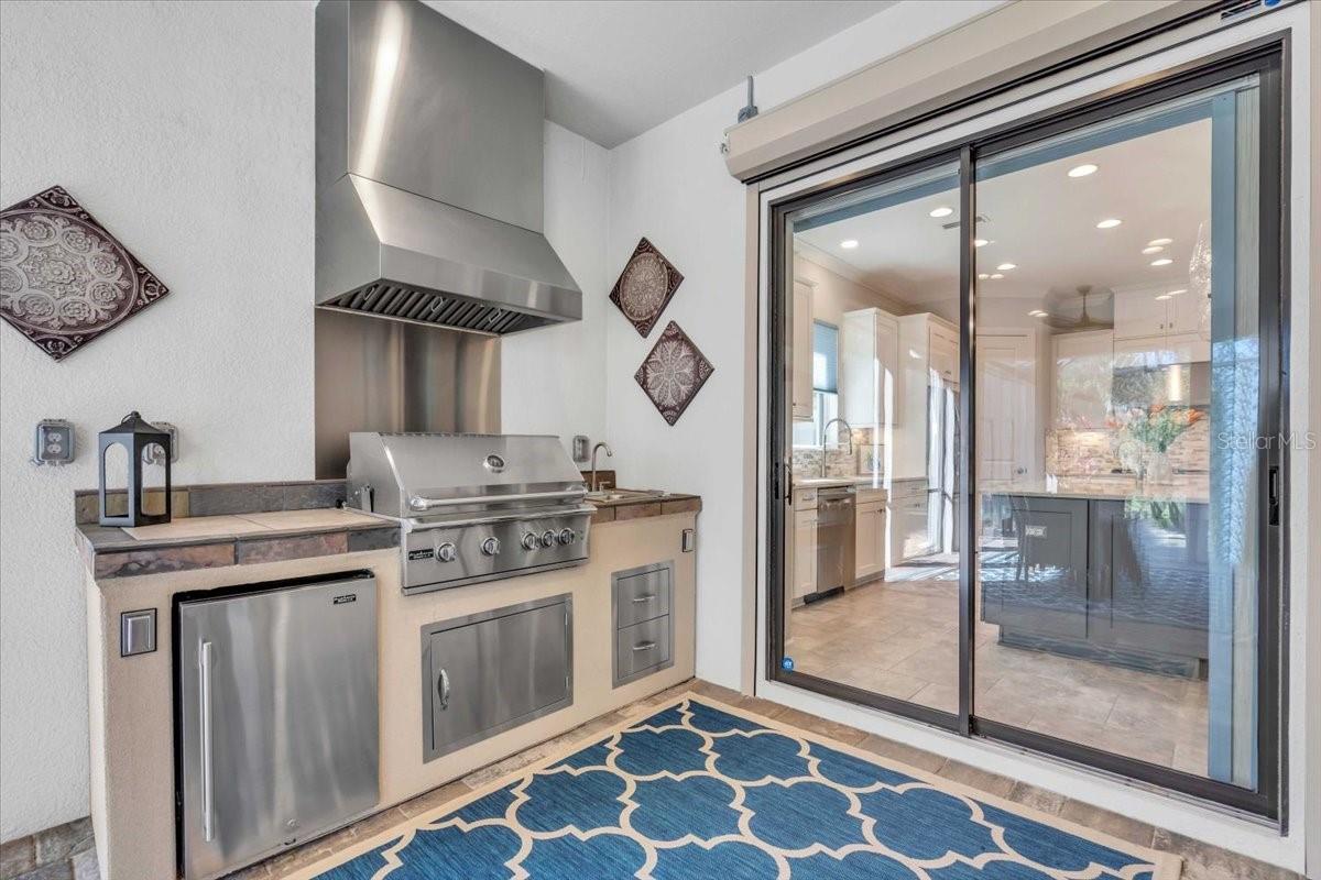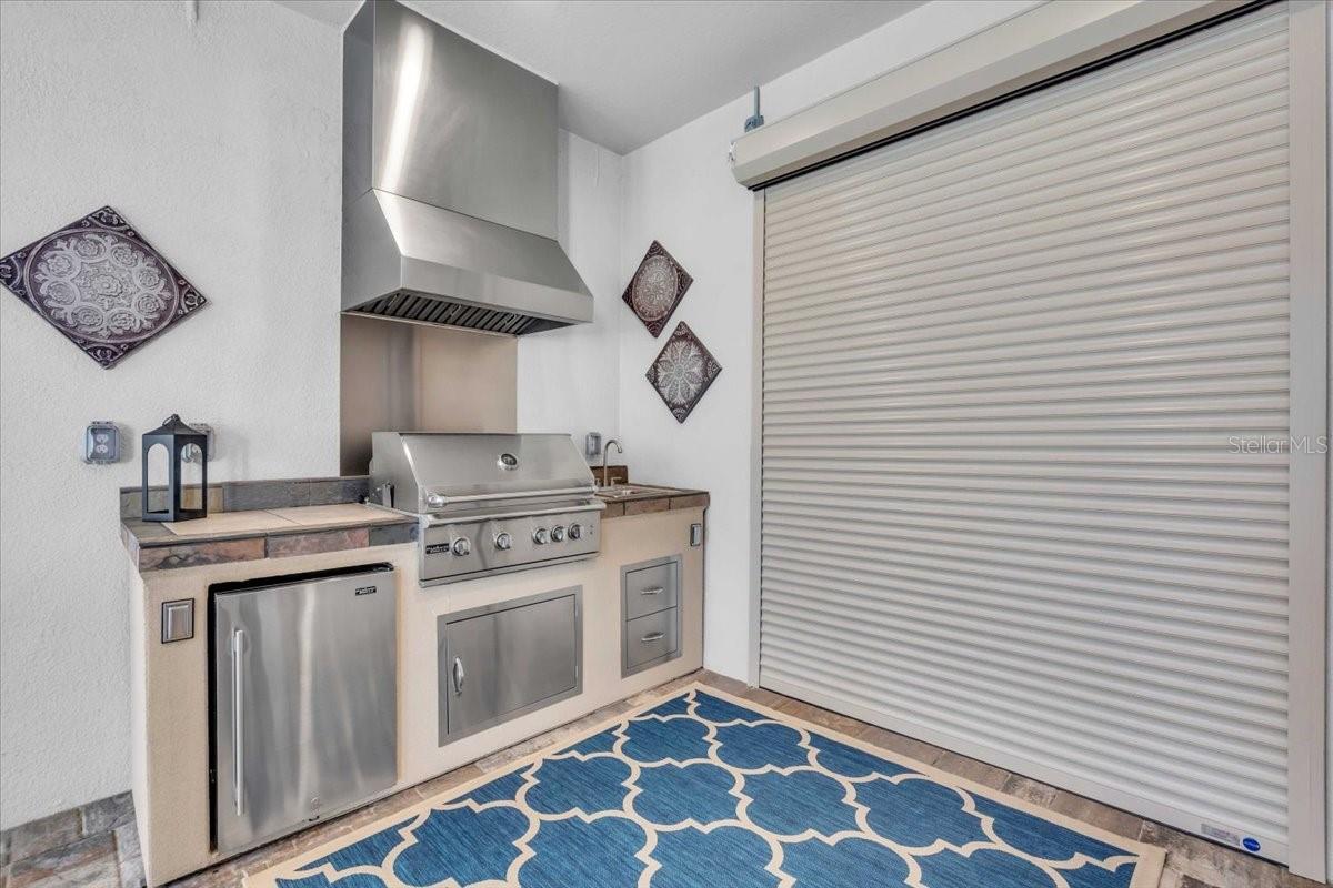 Awning(s), Hurricane Shutters, Lighting, Outdoor Grill, Outdoor Kitchen, Rain Gutters, Sidewalk, Sliding Doors