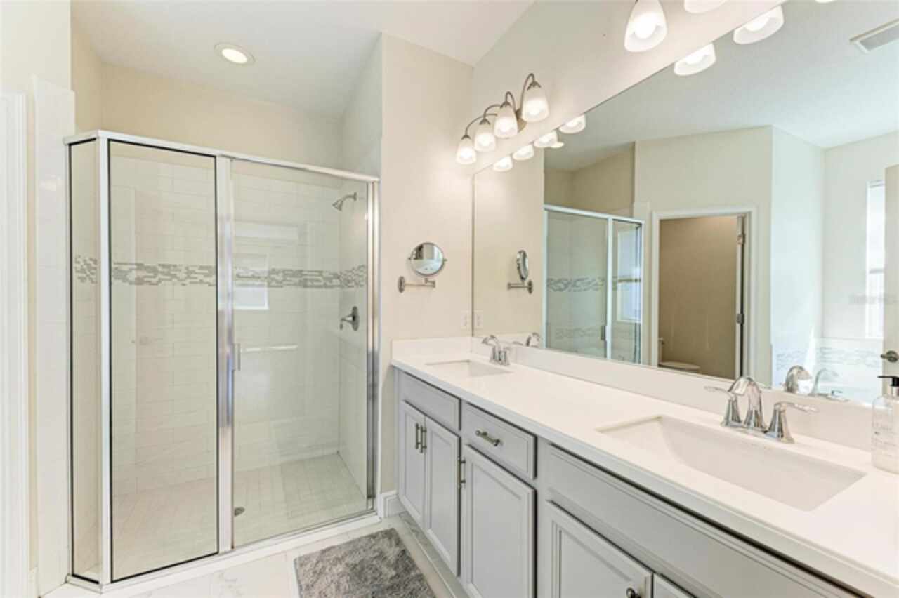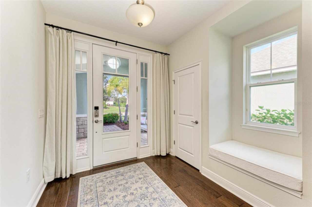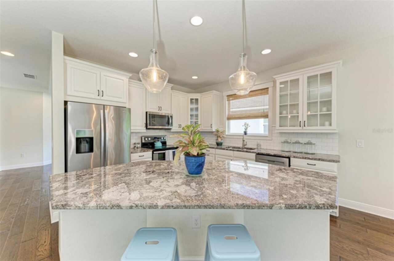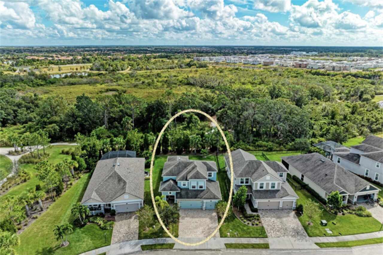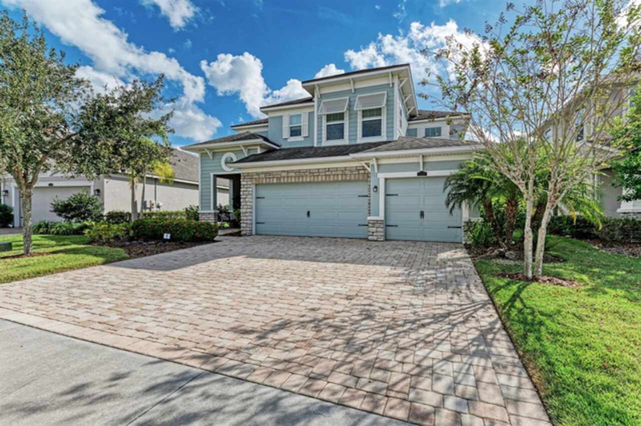 Under contract-accepting backup offers. This must-see home is sure to check all of your boxes with 3 bedrooms, 2.5 bathrooms, an office, a 3 car garage, and is conveniently located just steps away from the amenity center! It has plenty of curb appeal with a modern exterior color palette and stone accents. Step inside to a formal seating or dining space. Rich, wood flooring leads you to the bright, open great room, kitchen, breakfast nook area. The kitchen boasts stunning stone countertops, upgraded white cabinets and stainless appliances. The large primary suite is conveniently located on the first floor with a large tub, walk-in shower, and a walk-in closet. On the second floor you'll find 2 more bedrooms, a loft, a den with glass french doors and a bathroom with double sinks. Outside, you can relax and enjoy your covered and screened lanai and private preserve views! Harmony homeowners enjoy maintenance free living and exclusive, fun-filled community amenities including a pool with beach entry and lap lanes, a clubhouse with fitness center, a playground and walking path. It is located just 1.5 miles to a new shopping center, and Lakewood Ranch’s Town Centers are just beyond that. Beautiful world-class beaches are just a short drive away. Make sure to view the virtual walk-through!