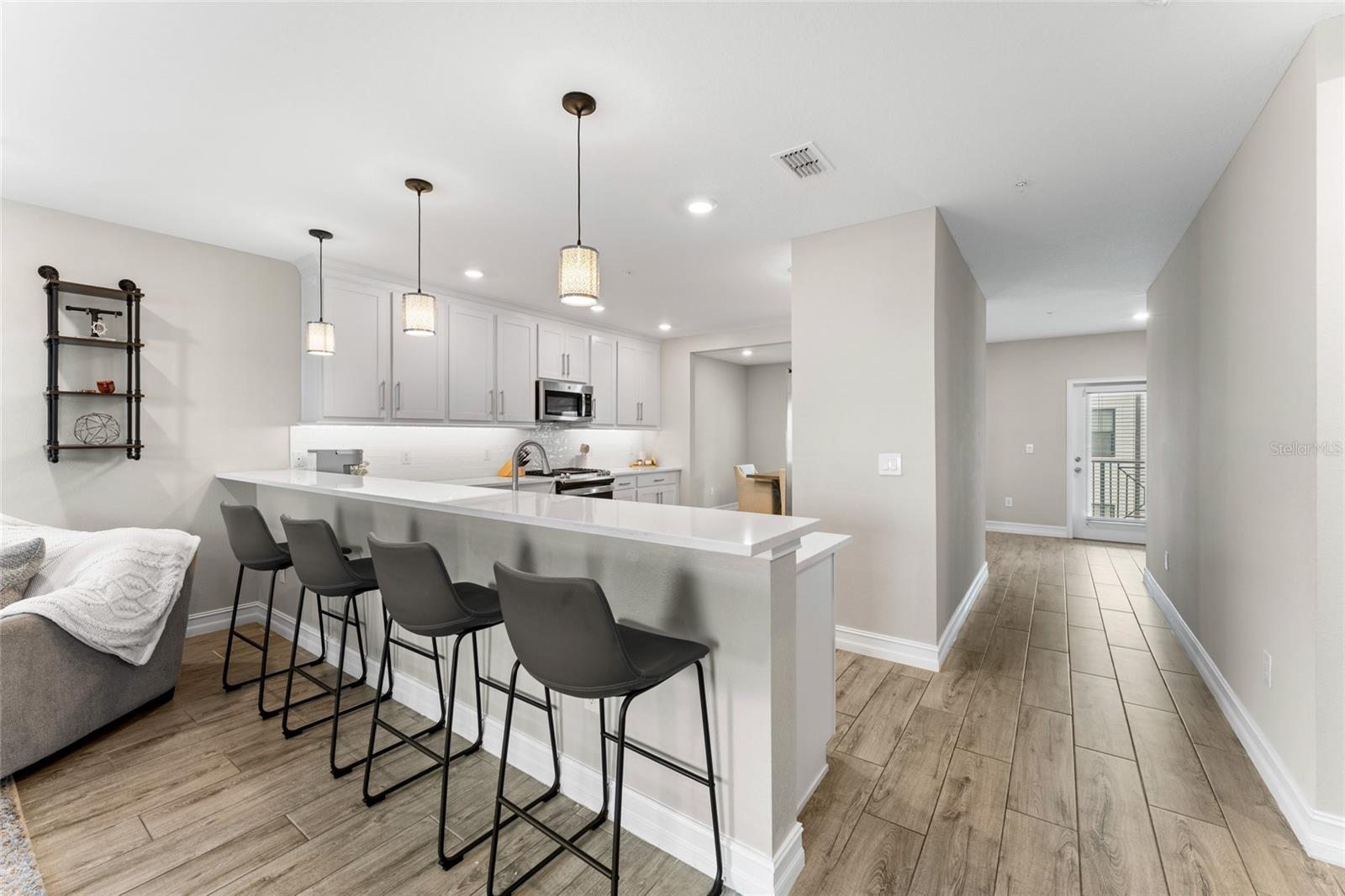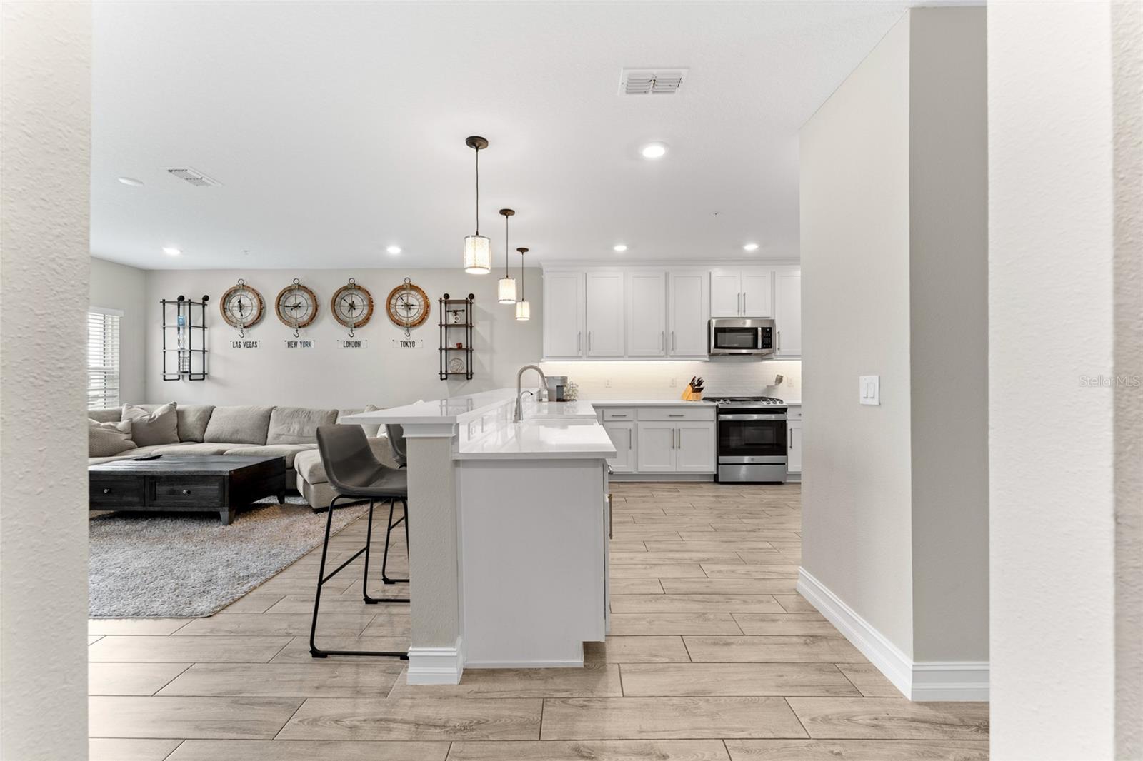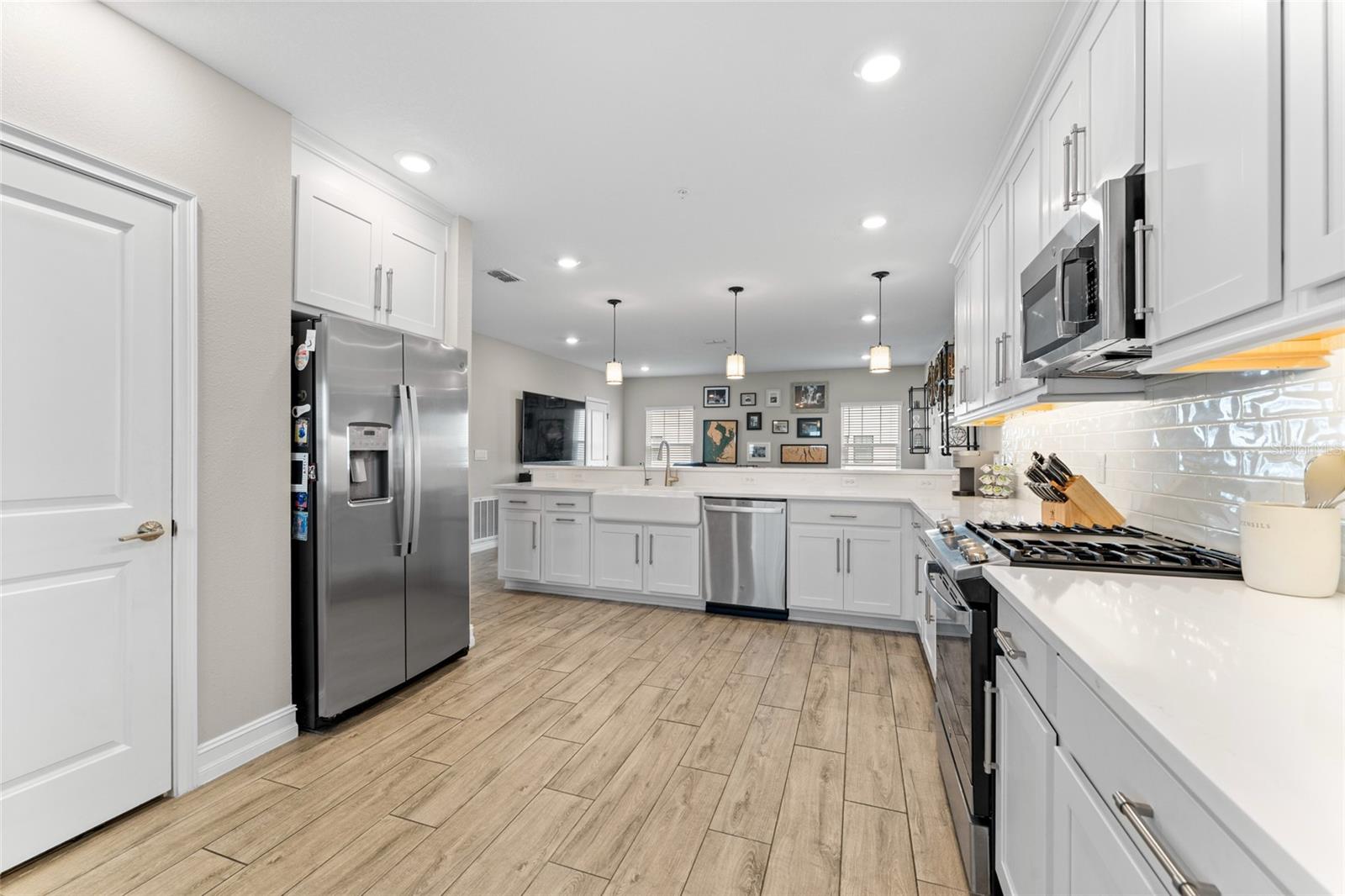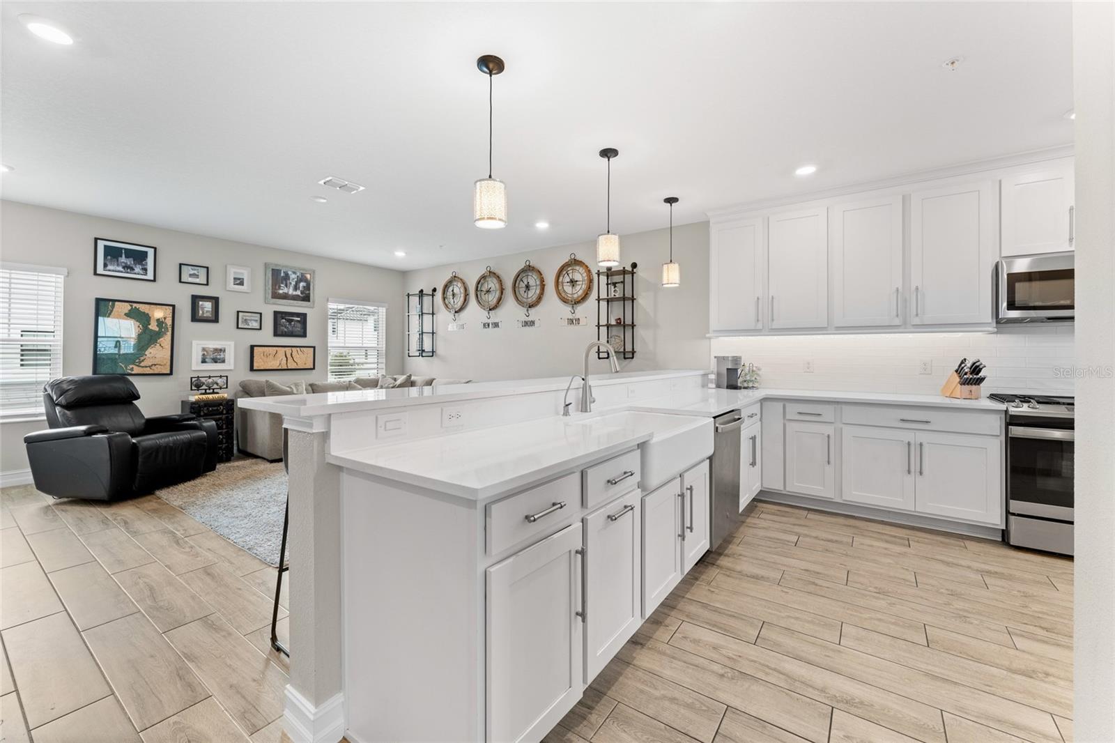 Eat-in Kitchen, Kitchen/Family Room Combo, Open Floorplan, PrimaryBedroom Upstairs, Solid Surface Counters, Solid Wood Cabinets, Stone Counters, Walk-In Closet(s)