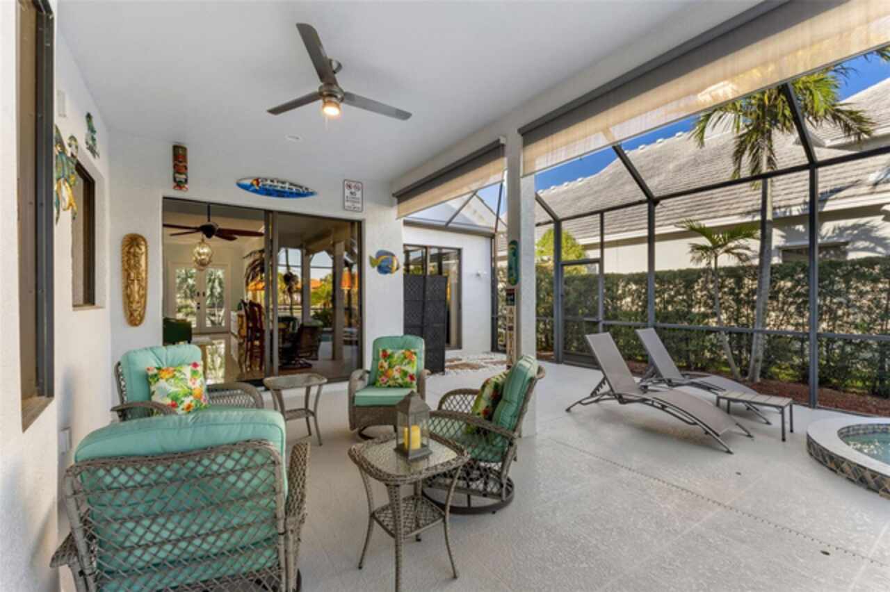 Stunning coastal inspired 5 bedroom, 4 bathroom waterfront home with boat dock, pool, spa, 3 car garage and 2 x Lanai's for Sunrise and Sunset. Freshly painted interior. Located in the highly sought after Inlets on the Manatee River, which features tennis courts, kayak launches and a playground, this tastefully updated home has everything you need to live the perfect Florida lifestyle. 4 Bedrooms on the first floor, and an in law suite on the second floor with its own living room, bedroom, full bathroom and a balcony overlooking the water. The boat dock is on a freshwater canal connected through a lift to the salt water. The freshwater dock allows for less maintenance on your boat. This beautifully maintained home has a gas cooktop, double oven and zero corner doors leading from the breakfast dining area to the first screened patio area. A pool, spa and a large TV complete the first lanai with water views and has no other homes overlooking this oasis. The 2nd lanai is perfect for evening sunsets and grilling with private water views. The living room opens on both sides to the 2nd lanai providing a true indoor/outdoor experience. In addition to the 3280 sq ft of living space, There is over 800 sq ft of covered outdoor area with a retractable awning on the west Lanai. The oversized yard is fully fenced in and ideal for pets and children. A full home Generac generator was installed in 2023. There is a new footpath connecting both lanai's on the outside of the home. The Inlets is a friendly riverfront community that is meticulously landscaped throughout with mature palm trees. To top this all off, the community has a LOW HOA and NO CDD This is a true gem. Some photos are virtually staged.