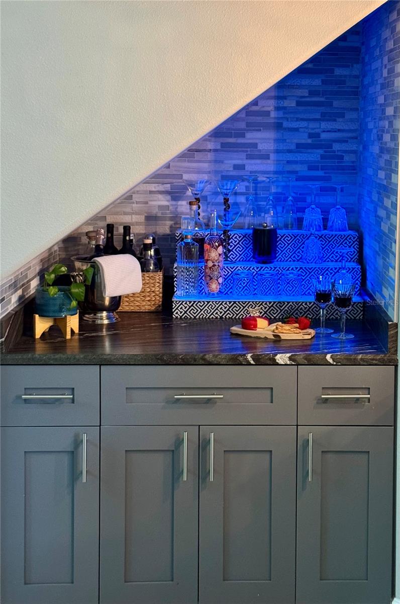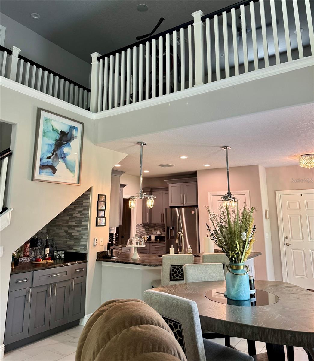 Ceiling Fans(s), Crown Molding, High Ceilings, Living Room/Dining Room Combo, Open Floorplan, Primary Bedroom Main Floor, Solid Wood Cabinets, Stone Counters, Thermostat, Tray Ceiling(s), Walk-In Closet(s), Wet Bar, Window Treatments