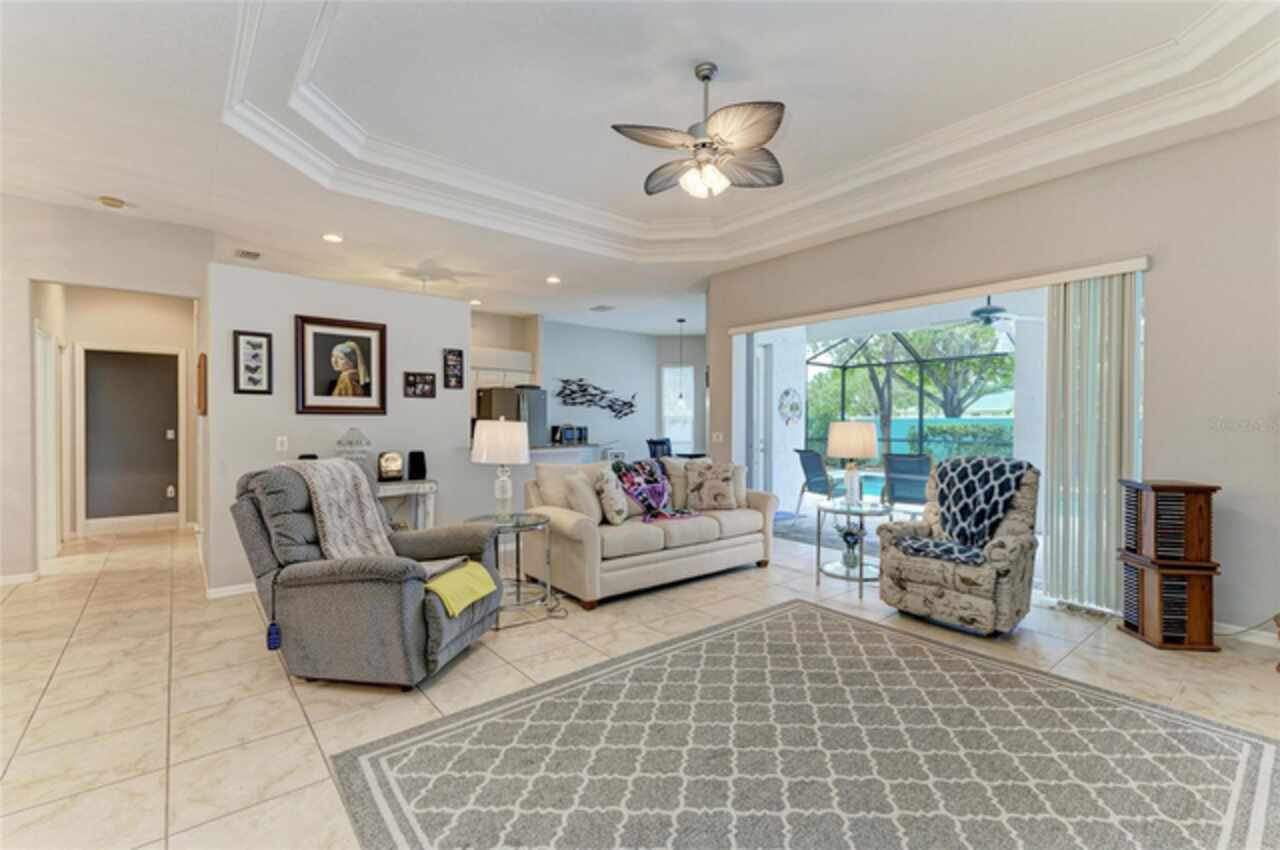 Under contract-accepting backup offers. One or more photo(s) has been virtually staged. Luxury Florida Living in Carlyle at Village of Palm-Aire – Heated Saltwater Pool | New Roof (2024) | No CDD Welcome to your beautiful 4-bedroom, 2-bathroom home, (the 4th bedroom is currently utilized as an office), nestled in the highly sought-after Carlyle at The Village of Palm-Aire. This immaculately maintained residence offers 2, 108 sq. ft. of stylish, comfortable living, perfectly blending sophistication and ease in one of Sarasota’s premier communities. Step inside to discover an open, light-filled split floor plan with soaring tray ceilings, crown molding, and clerestory windows that invite the Florida sunshine into every corner. The versatile den, enclosed with elegant French doors, provides the perfect work-from-home space or guest room. The kitchen offers stainless steel appliances with granite countertops and a sunlit breakfast nook. The expansive living and family rooms flow seamlessly to the outdoors, where multiple sliding glass doors disappear into the walls, opening to your private oasis—a screened, extended lanai with a heated saltwater pool where a serene setting for relaxing or entertaining await. Retreat to the primary suite featuring dual walk-in closets and a spacious en-suite bath with double vanities and a walk-in shower. Two additional bedrooms give comfort and privacy for family or guests. A new roof has recently been added -2024. Enjoy resort-style amenities within the community, including pickleball, tennis courts, a sparkling community pool and playground. Golfers and socialites will love the optional memberships at the nearby Palm-Aire Country Club, offering premium golf and clubhouse amenities. Ideally located near the University Parkway/UTC corridor, you’re just minutes from Downtown Sarasota, St. Armands Circle, award-winning beaches, fine dining, shopping, and Sarasota International Airport (only 15 minutes away). With no CDD fees and low HOA dues, this home offers luxury and convenience in a vibrant, amenity-rich neighborhood. Don’t miss the opportunity to make this Florida dream home yours—schedule your private showing today!
