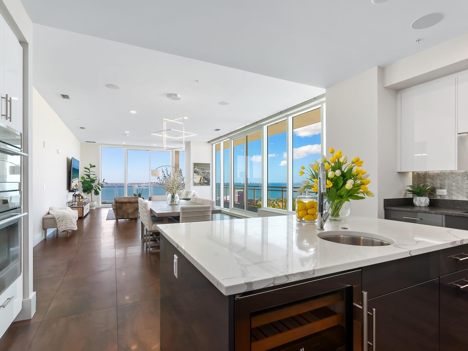 Welcome to BLVD Sarasota, a stunning downtown sanctuary in the sky where luxury living meets extraordinary views from every room. Perched in the desired corner stack of the building, this exclusive residence offers uninterrupted, floor-to-ceiling panoramas of Sarasota Bay and the vibrant city skyline — all from the comfort of each space in the home. Whether you're waking up in the primary suite, preparing a meal in the chef’s kitchen, or hosting guests in the expansive living and dining areas, you're surrounded by natural beauty at every turn. Exit your private elevator into over 5, 000 square feet of exquisitely designed indoor-outdoor living. The open floor plan is drenched in natural light from walls of PGT impact-rated glass, ensuring every room becomes a front-row seat to Sarasota’s spectacular sunsets, coastal waters and sparkling city lights. The oversized, wrap-around terrace extends your living experience outdoors, offering multiple seating, lounging and dining areas — all designed to showcase the unrivaled, wrap-around water and city views. Offered turnkey furnished, this residence includes three spacious bedrooms with en-suite baths, a private office and two additional half baths, blending the space and comfort of a single-family home with the ease of elevated condominium living. Interior features include soaring 11-foot ceilings, Lutron-controlled lighting, motorized window shades, premium finishes, and designer-selected furnishings that elevate the elegance throughout. The gourmet kitchen is a showpiece with custom gray Irpinia cabinetry, quartz countertops and top-of-the-line appliances — all positioned to ensure you never miss a moment of the view. Entertain effortlessly with two oversized pantries, dual sinks and generous storage. The primary suite is a retreat, offering breathtaking vistas right from bed, along with dual custom walk-in closets and a spa-inspired bath with a soaking tub, frameless glass shower, and refined Kohler fixtures. BLVD Sarasota is a lifestyle unlike any other, offering residents top-tier amenities such as a rooftop infinity-edge pool, outdoor kitchen, wine cellar, state-of-the-art fitness center, golf simulator and a fifth-floor pet lawn with a grooming station. Enjoy two premium parking spaces, a private elevator entrance and a humidity-controlled storage locker. Just a short distance from the 53-acre Bay Park and Sarasota’s world-class dining, arts and marina scene, this is more than a home — it’s your front-row seat to the best of the Gulf Coast. Residence 1201 is not just a place to live — it’s a window to the world, where every room frames an unforgettable view. Seller to include a $50, 000, 1000 North resident-only membership to the building’s forthcoming private social and supper club, opening in late 2025, offering exclusive culinary experiences, event access and perks solely for residents.
