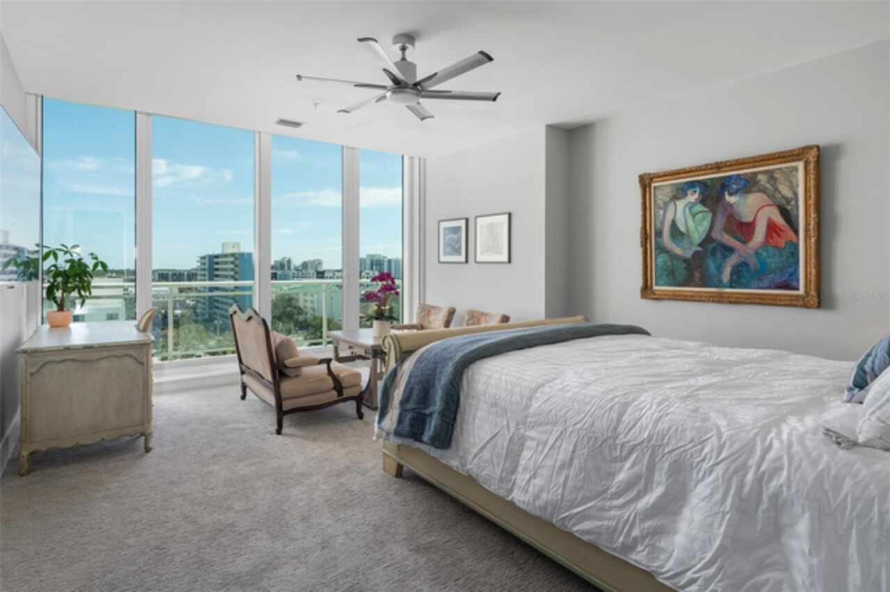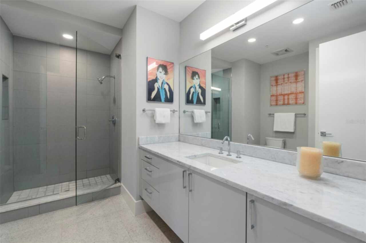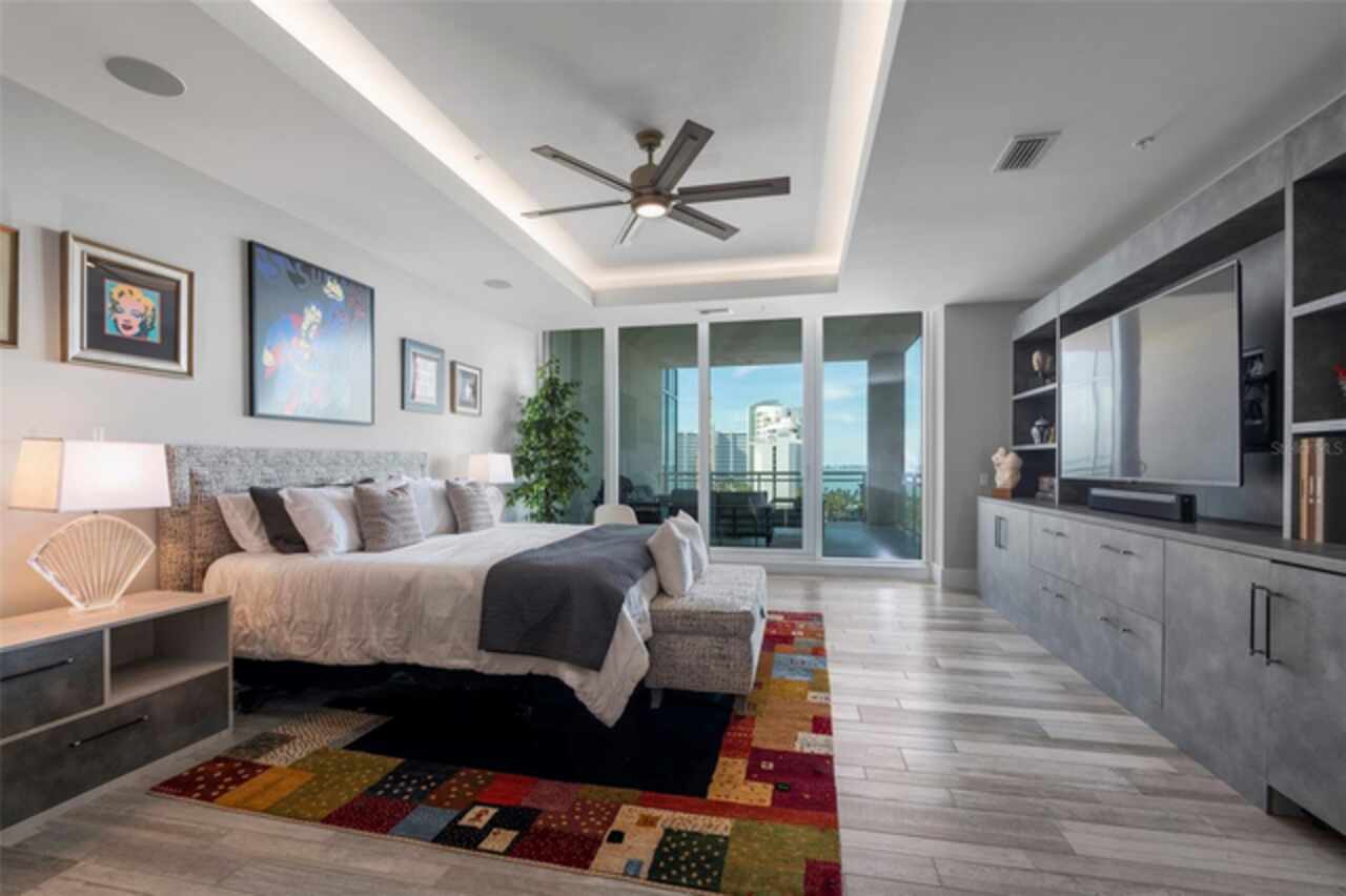 One or more photo(s) has been virtually staged. WHY WAIT FOR NEW CONSTRUCTION WHEN YOU CAN MOVE RIGHT IN TO THIS PHENOMENAL 3962 SF LUXURY CONDO, THE BEST DOWNTOWN SARASOTA VALUE, IN THE INCREDIBLY AMENITIZED BLVD, FEATURING PANORAMIC UNOBSTRUCTED WEST AND NORTH BAY VIEWS PLUS CITY SKYLINE VIEWS, AND BEAUTIFUL DESIGNER UPGRADES. Located in the desired 02 stack, this gorgeous condominium has over $350, 000 in custom upgrades and enjoys spectacular sunrises and sunsets framed by floor-to-ceiling impact windows and a pocketing 12-foot sliding glass door providing a seamless connection between the indoor and outdoor spaces. Your private access elevator opens into an expansive open-concept living area and chef’s state-of-the-art kitchen customized with Caesarstone Quartz waterfall island and countertops and cutting-edge Porcelanosa backsplash, high-quality Thermador appliances including natural gas 6-burner range with griddle, dual ovens, custom wet bar with Elkay martini glass sink, Subzero wine fridge, Scotsman icemaker, and enlarged pantry. Custom cabinetry and designer lighting add sophistication throughout. Three oversized bedroom suites each have private terrace access, lux spa-like baths and large walk-in closets. The expansive primary bedroom with soaring coffered ceiling includes dual California closets, built-in custom wall unit with beverage center, walk-in soaking tub, floating vanities, and a glass and tile dual-head shower. A lovely powder room and spacious laundry room with Electrolux appliances round out the interior. Outfitted by Wicked Smart Homes, the condo features a state-of-the art smart automation system with Lutron lighting, motorized shades, and full Sonos surround sound system. Additional highlights include three glass-railed terraces, custom lighting, 8' solid-core doors with decorative glass inlays, and premium finishes throughout. This unit includes two premium secure parking spaces and a private climate-controlled storage locker. BLVD offers unmatched amenities: spectacular rooftop with infinity-edge pool/spa, fire bowls and covered grill area, concierge and on-site manager, state-of-the-art fitness center, wine cellar with private lockers, golf simulator, lounge with catering kitchen and pool table, pet lawn and dog grooming salon, conference room, and building-wide water softener. Elevator access to the private members-only club 1000 North opening soon completes the package. Live in the heart of the Rosemary District of Downtown Sarasota, just minutes from Siesta Key, St. Armands and all that Sarasota has to offer. Don’t miss this amazing opportunity