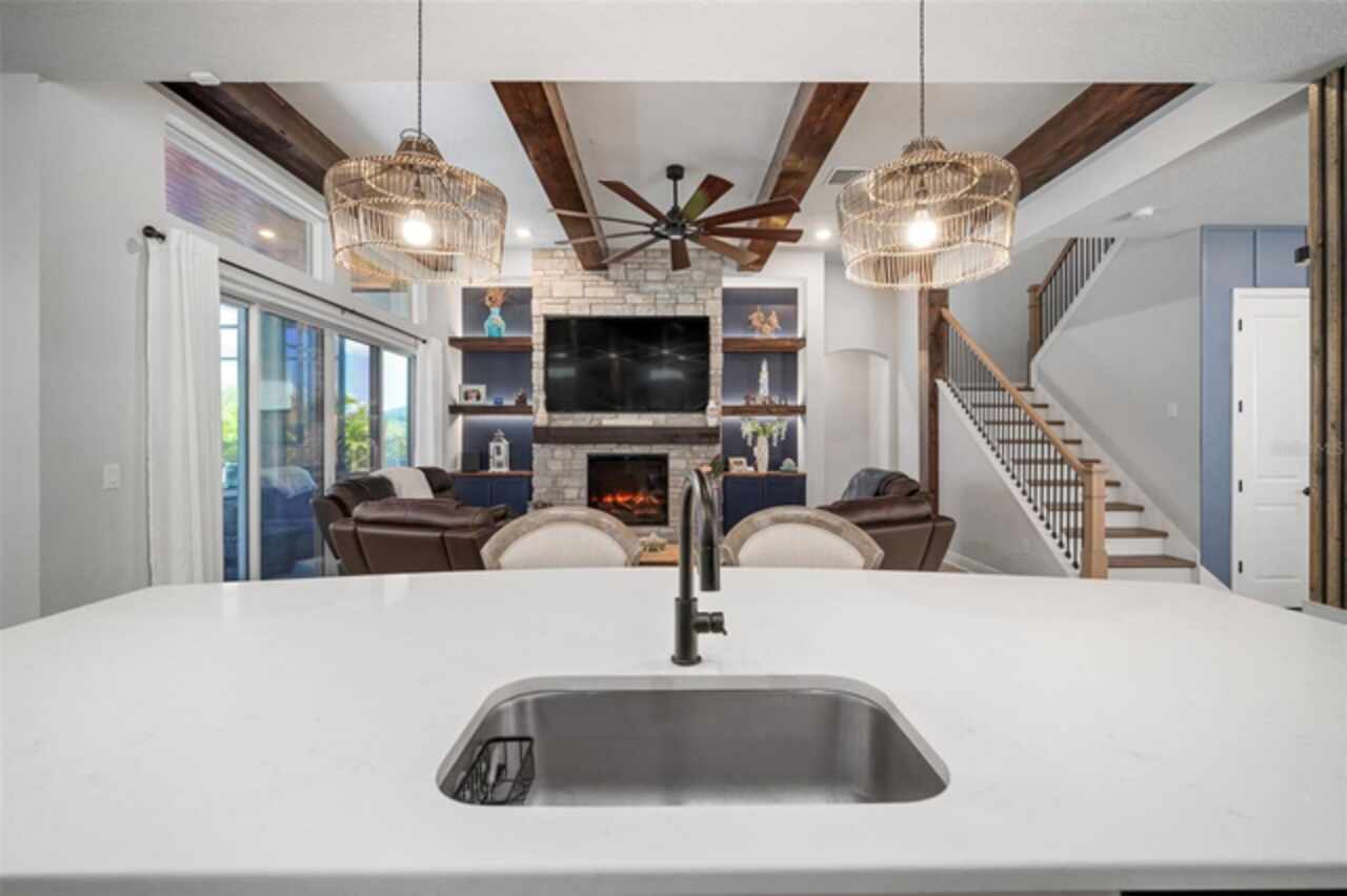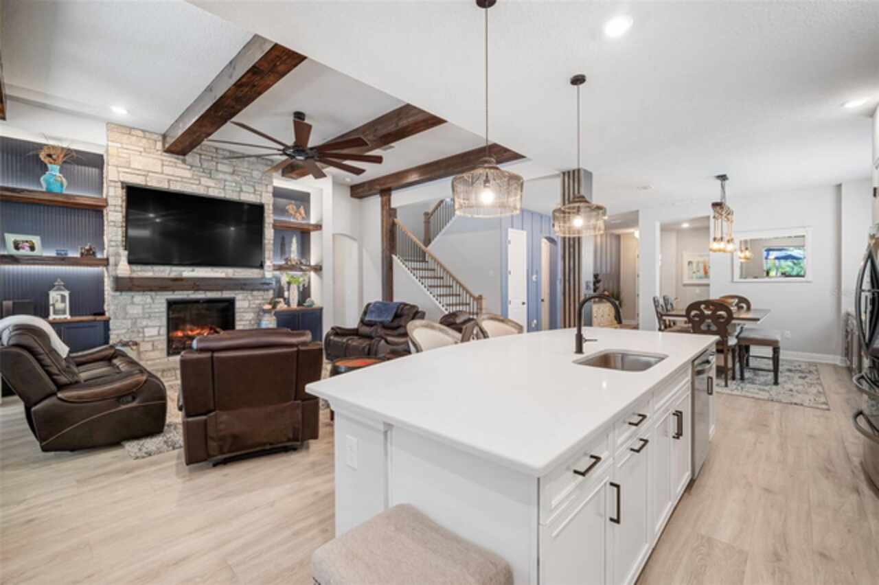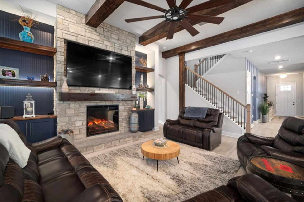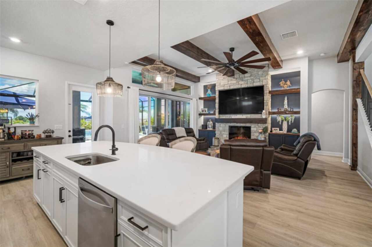 Priced to sell! Welcome to the ultimate David Weekley Norchester- 2 stories of jaw-dropping design, every upgrade imaginable, and luxury living that puts the builder’s models to shame. This home isn’t just move-in ready… it’s ready to blow you away. Step inside and be greeted by custom woodwork, stunning feature walls, and a built-in stone fireplace with surround sound and mounted TV already in place. The main floor boasts a primary suite with luxury vinyl flooring, a flex/office space, and a gourmet kitchen flowing into open living areas designed for entertaining. Upstairs, a loft with a dry bar, beverage fridge, and entertainment center makes the perfect hangout. And then there’s the fully converted 658 sq ft garage- professionally insulated with AC/heat, polyaspartic floors, and endless possibilities. Think killer man cave, theatre room, epic home gym- whatever your lifestyle demands. But the crown jewel is out back- an incredible heated saltwater pool with fire and water bowls, 2 sunshelves, and an in-pool table. The oversized travertine deck, outdoor kitchen/bar featuring Blackstone and a Green Egg, dual beverage fridges, a fire pit, outdoor TV, and speakers, all sit under a panoramic-screen lanai with no backyard neighbors. Every detail, from the pecky cypress ceilings to the premium landscaping, was chosen for beauty and function. A feature sheet with all upgrades is attached to the listing. This is more than a home—it’s a lifestyle upgrade you didn’t know you needed.