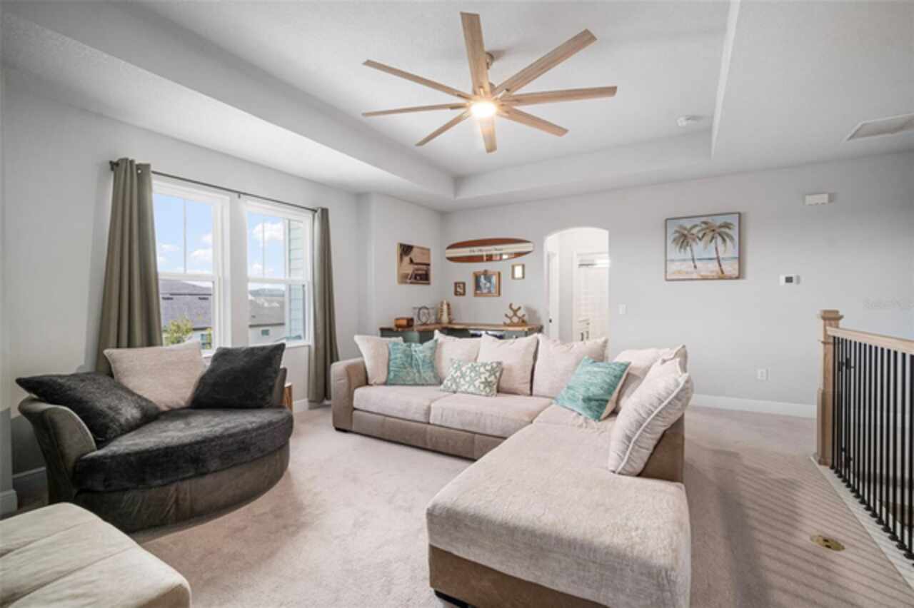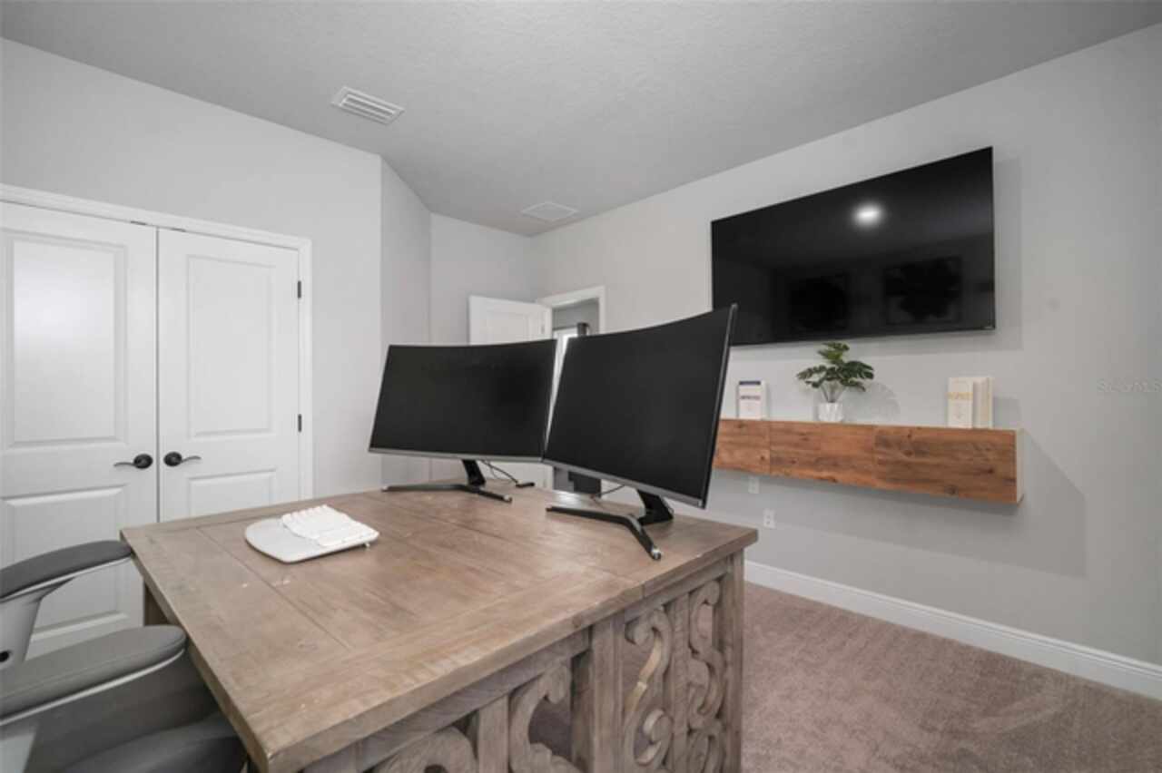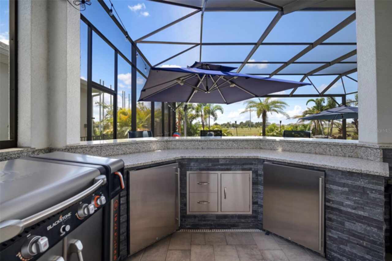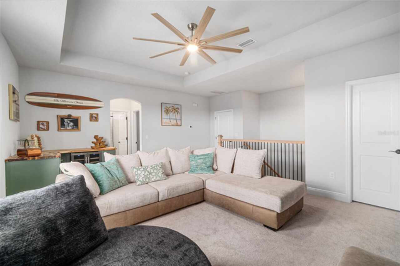 Priced to sell! Welcome to the ultimate David Weekley Norchester- 2 stories of jaw-dropping design, every upgrade imaginable, and luxury living that puts the builder’s models to shame. This home isn’t just move-in ready… it’s ready to blow you away. Step inside and be greeted by custom woodwork, stunning feature walls, and a built-in stone fireplace with surround sound and mounted TV already in place. The main floor boasts a primary suite with luxury vinyl flooring, a flex/office space, and a gourmet kitchen flowing into open living areas designed for entertaining. Upstairs, a loft with a dry bar, beverage fridge, and entertainment center makes the perfect hangout. And then there’s the fully converted 658 sq ft garage- professionally insulated with AC/heat, polyaspartic floors, and endless possibilities. Think killer man cave, theatre room, epic home gym- whatever your lifestyle demands. But the crown jewel is out back- an incredible heated saltwater pool with fire and water bowls, 2 sunshelves, and an in-pool table. The oversized travertine deck, outdoor kitchen/bar featuring Blackstone and a Green Egg, dual beverage fridges, a fire pit, outdoor TV, and speakers, all sit under a panoramic-screen lanai with no backyard neighbors. Every detail, from the pecky cypress ceilings to the premium landscaping, was chosen for beauty and function. A feature sheet with all upgrades is attached to the listing. This is more than a home—it’s a lifestyle upgrade you didn’t know you needed.