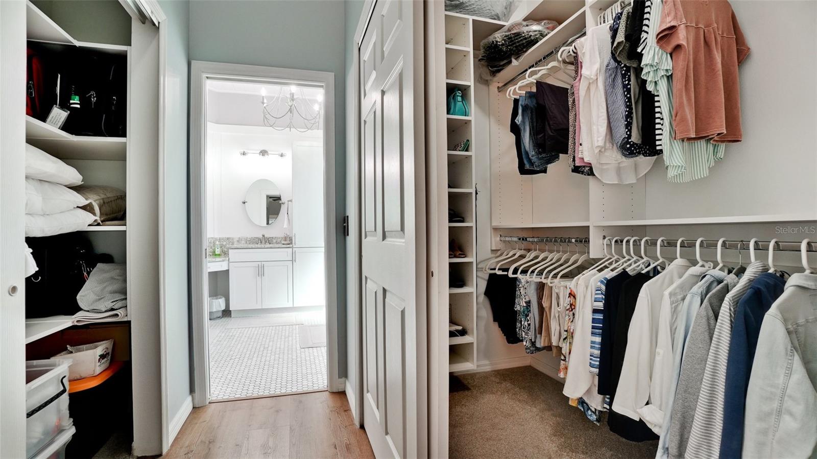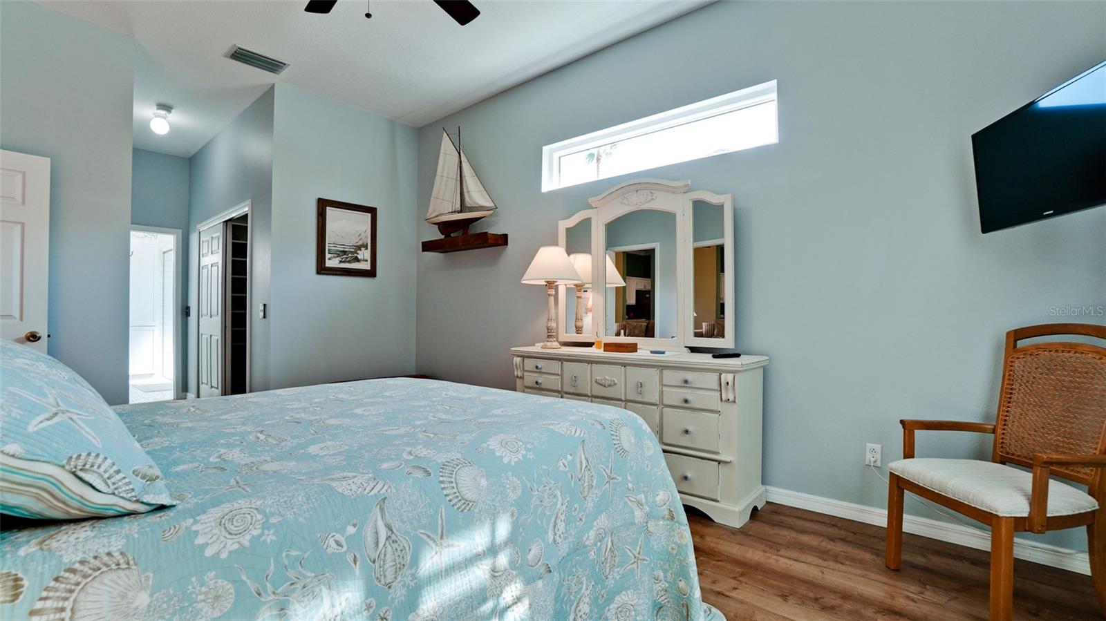 Ceiling Fans(s), Crown Molding, Eat-in Kitchen, High Ceilings, Kitchen/Family Room Combo, Open Floorplan, Primary Bedroom Main Floor, Solid Wood Cabinets, Split Bedroom, Tray Ceiling(s), Walk-In Closet(s)