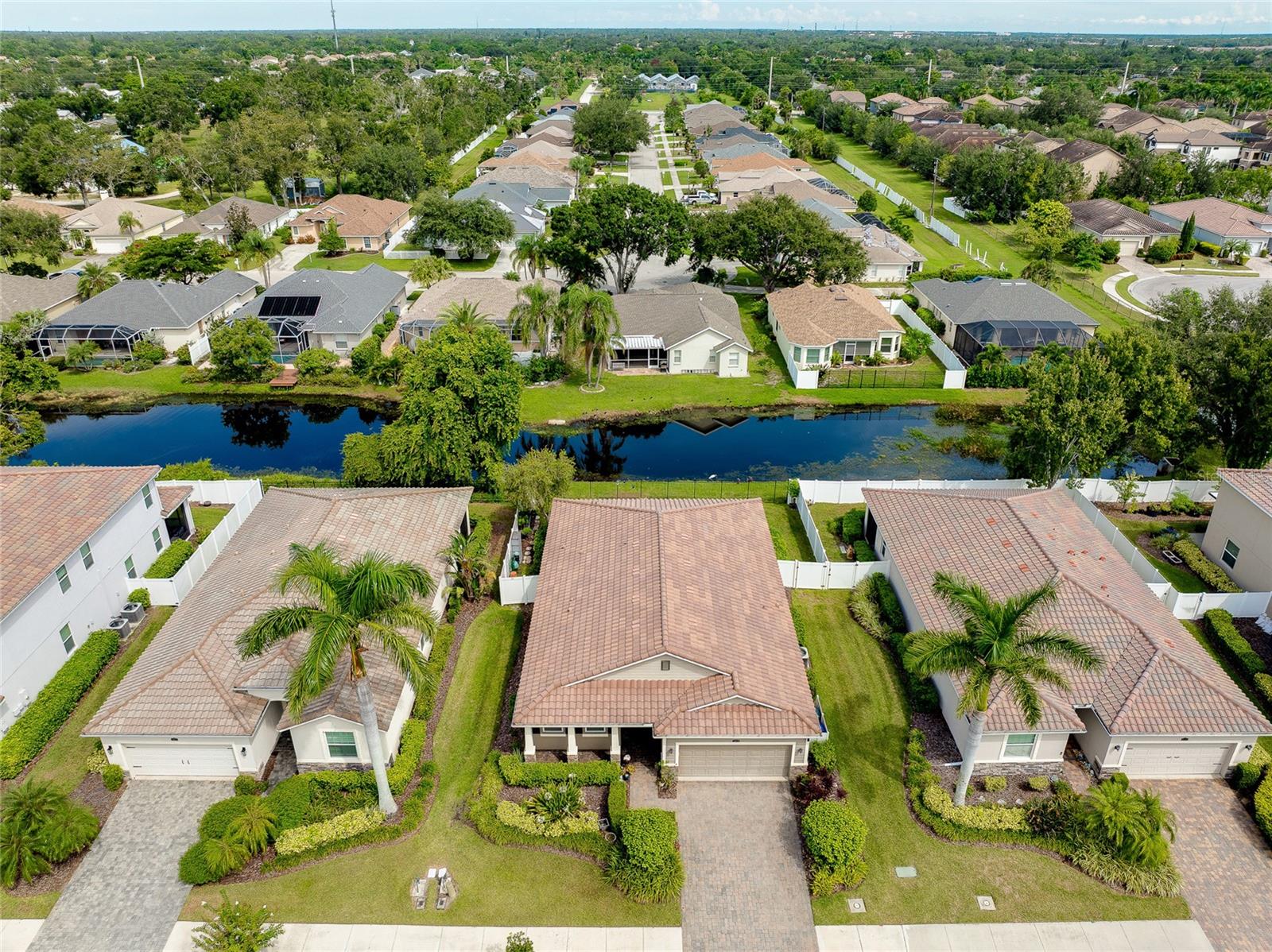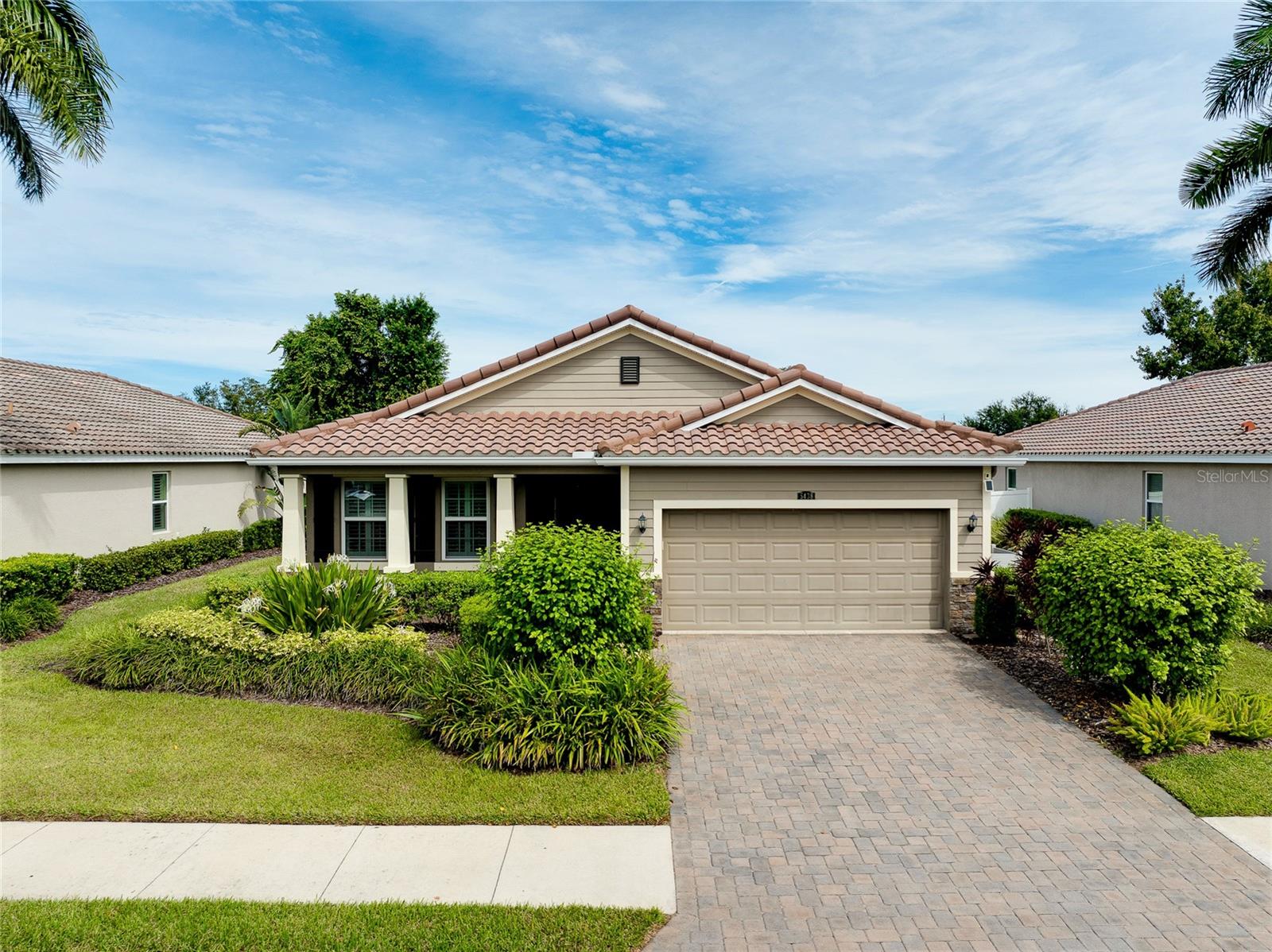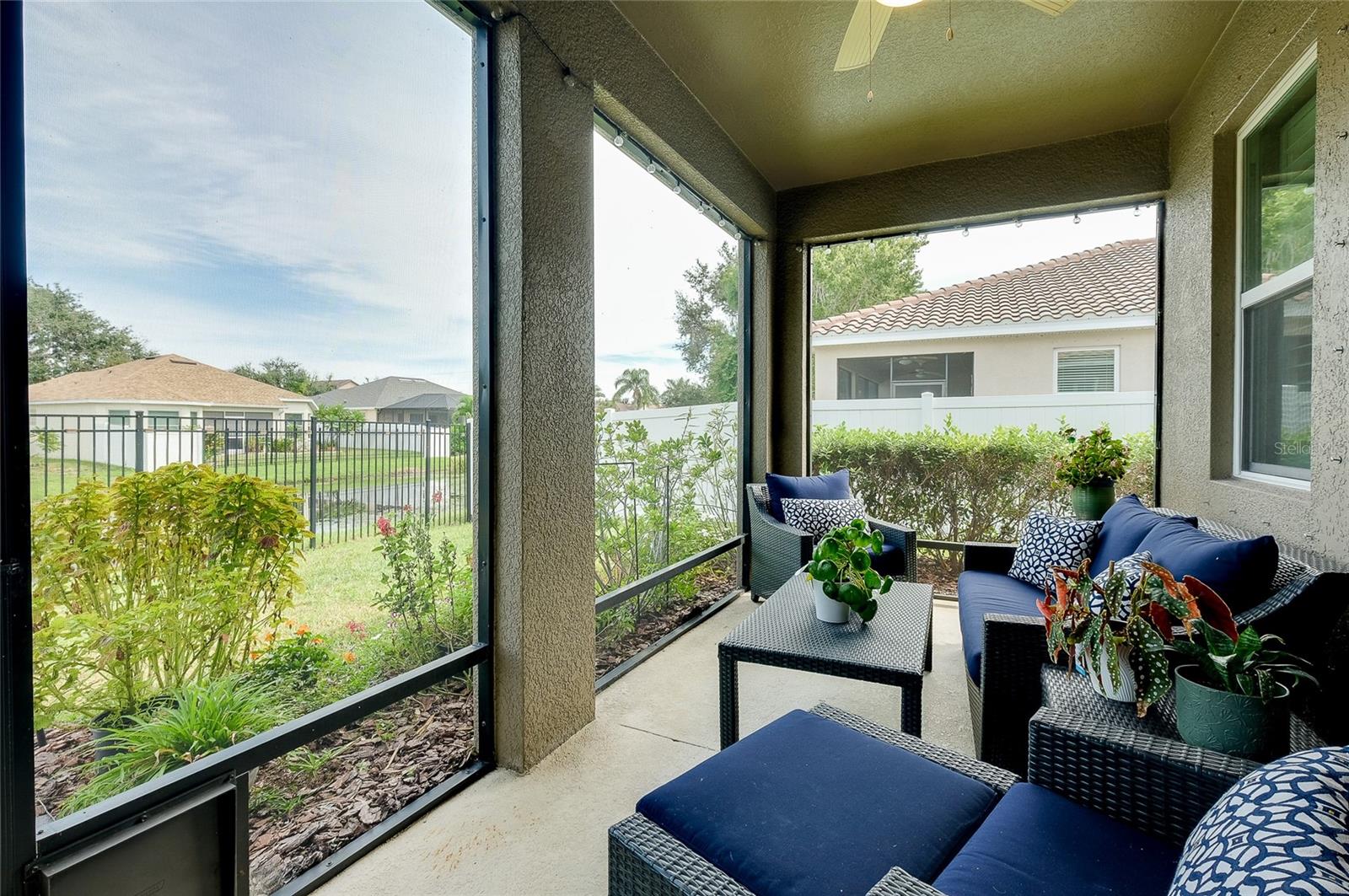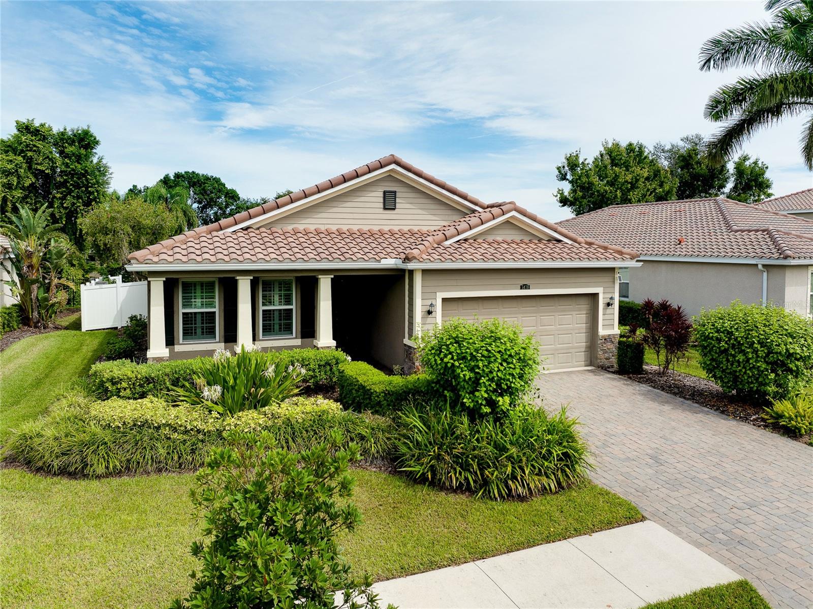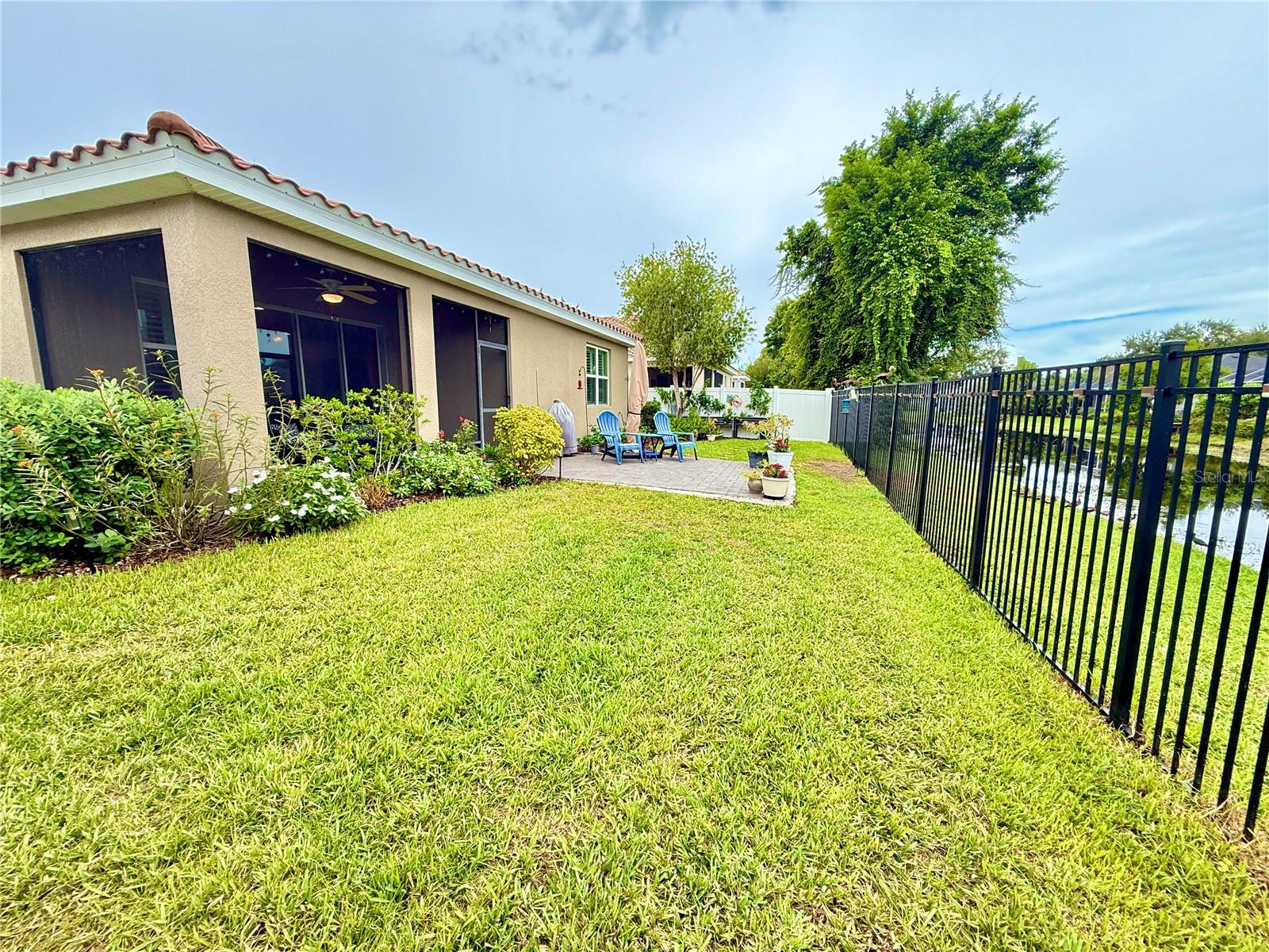 Tucked away on a quiet cul-de-sac in a newer gated community in the Palmer Ranch area, this tranquil and well-appointed home offers the perfect blend of comfort and convenience. Featuring 3 bedrooms, 2 baths, plus a den, the open split-bedroom floorplan is designed for both everyday living and entertaining. The spacious kitchen boasts upgraded 42" cabinetry, granite countertops, and a breakfast bar that seamlessly connects to the living and dining areas, while the den offers a private retreat tucked off to the side. Tile flooring flows through the main living spaces, with low-maintenance laminate in the bedrooms. Step outside to your private patio overlooking a serene pond, where you can relax and enjoy the abundance of birds and wildlife from your fully fenced backyard haven. This home is equipped with numerous upgrades, including a high-efficiency 15 SEER HVAC system, programmable thermostat, radiant roof barrier sheathing, and energy-saving double-pane low-E windows and sliding glass door and hurricane shutters for peace of mind. If it is a pool you desire, there is room for one here (sketch attached). This upscale community of 49 homes showcases timeless curb appeal, with each home featuring brick paver driveways and entry walks, elegant stone exterior accents, and durable barrel tile cement roofs. The low HOA fee includes gated entry, grounds maintenance, lawn irrigation, and access to the community playground. Ideally located near I-75, this community is just minutes from world-famous Siesta Key, vibrant downtown Sarasota, and an array of shops, dining, parks, and trails, some just a couple blocks away. Top-rated schools are also nearby, making this home an exceptional choice. Up to 1% of the loan amount for rate buy down or lender credits are being offered specifically for this home