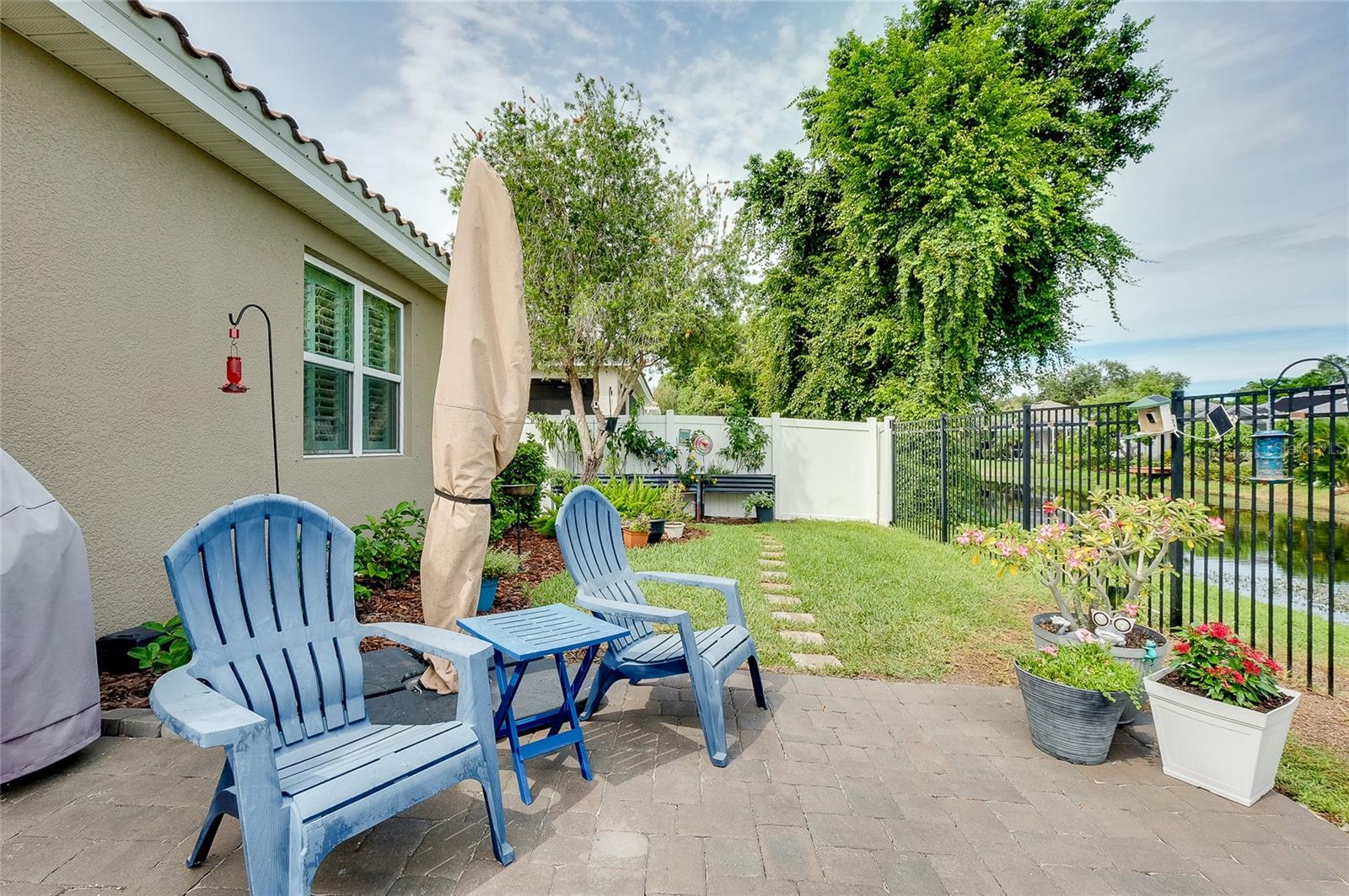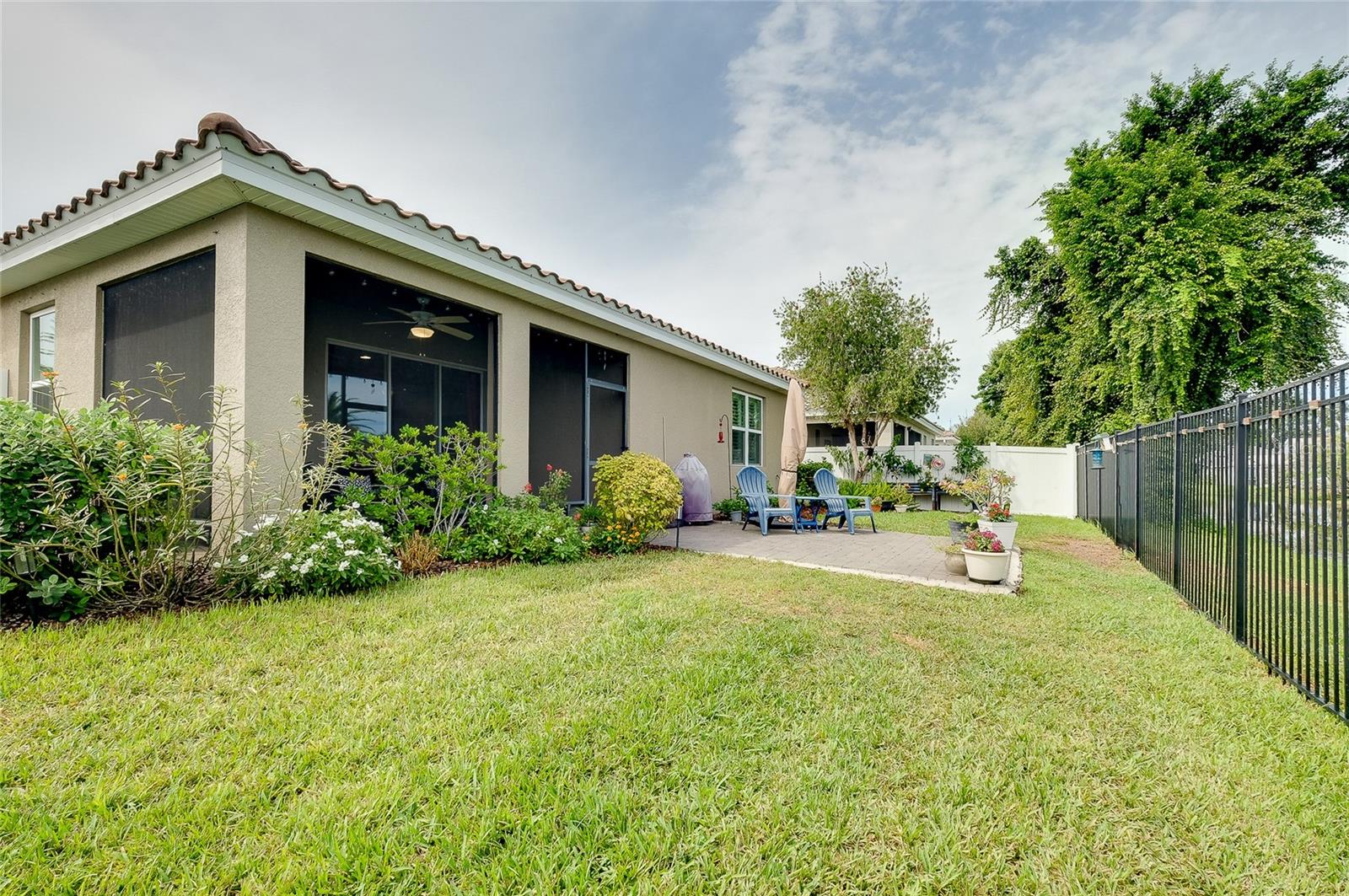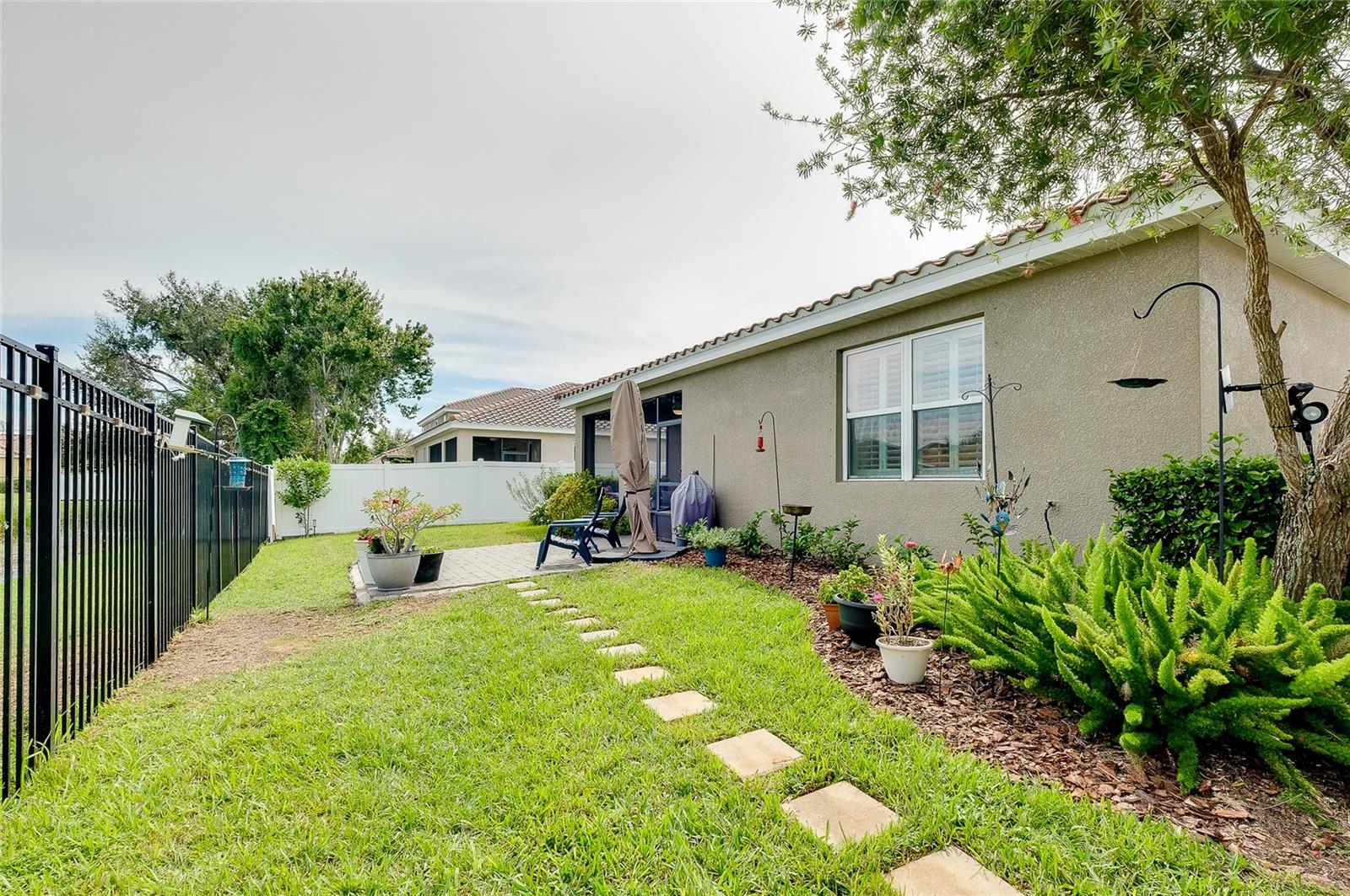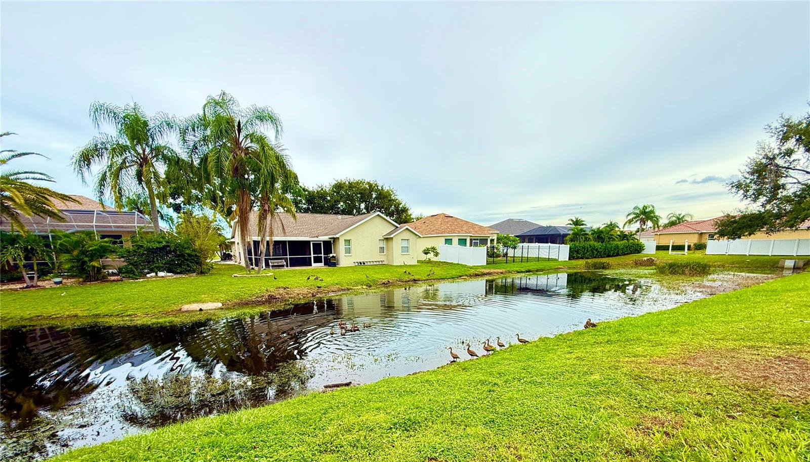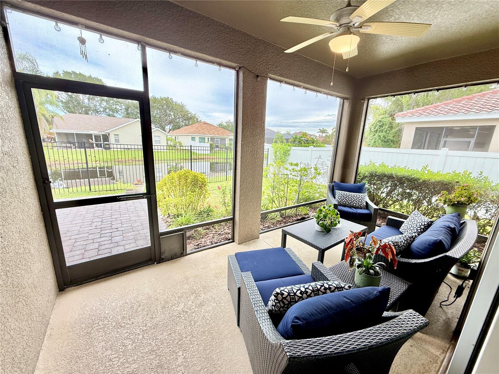 Tucked away on a quiet cul-de-sac in a newer gated community in the Palmer Ranch area, this tranquil and well-appointed home offers the perfect blend of comfort and convenience. Featuring 3 bedrooms, 2 baths, plus a den, the open split-bedroom floorplan is designed for both everyday living and entertaining. The spacious kitchen boasts upgraded 42" cabinetry, granite countertops, and a breakfast bar that seamlessly connects to the living and dining areas, while the den offers a private retreat tucked off to the side. Tile flooring flows through the main living spaces, with low-maintenance laminate in the bedrooms. Step outside to your private patio overlooking a serene pond, where you can relax and enjoy the abundance of birds and wildlife from your fully fenced backyard haven. This home is equipped with numerous upgrades, including a high-efficiency 15 SEER HVAC system, programmable thermostat, radiant roof barrier sheathing, and energy-saving double-pane low-E windows and sliding glass door and hurricane shutters for peace of mind. If it is a pool you desire, there is room for one here (sketch attached). This upscale community of 49 homes showcases timeless curb appeal, with each home featuring brick paver driveways and entry walks, elegant stone exterior accents, and durable barrel tile cement roofs. The low HOA fee includes gated entry, grounds maintenance, lawn irrigation, and access to the community playground. Ideally located near I-75, this community is just minutes from world-famous Siesta Key, vibrant downtown Sarasota, and an array of shops, dining, parks, and trails, some just a couple blocks away. Top-rated schools are also nearby, making this home an exceptional choice. Up to 1% of the loan amount for rate buy down or lender credits are being offered specifically for this home