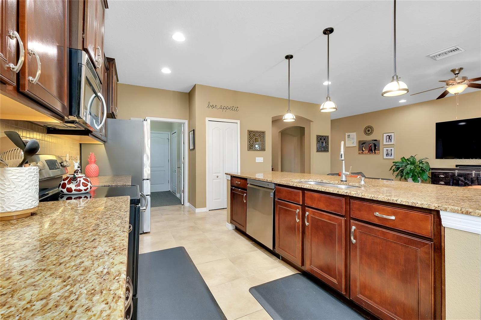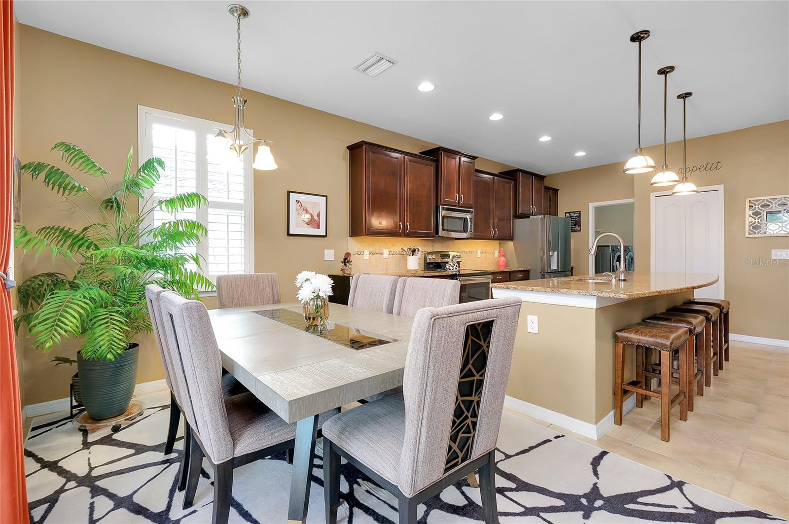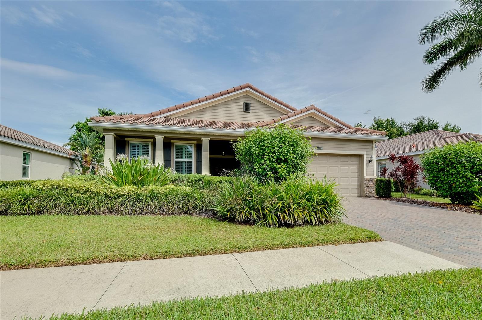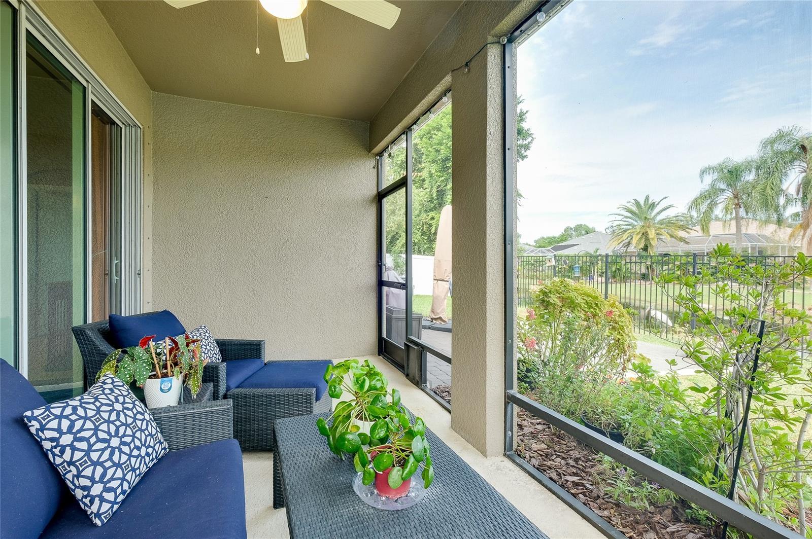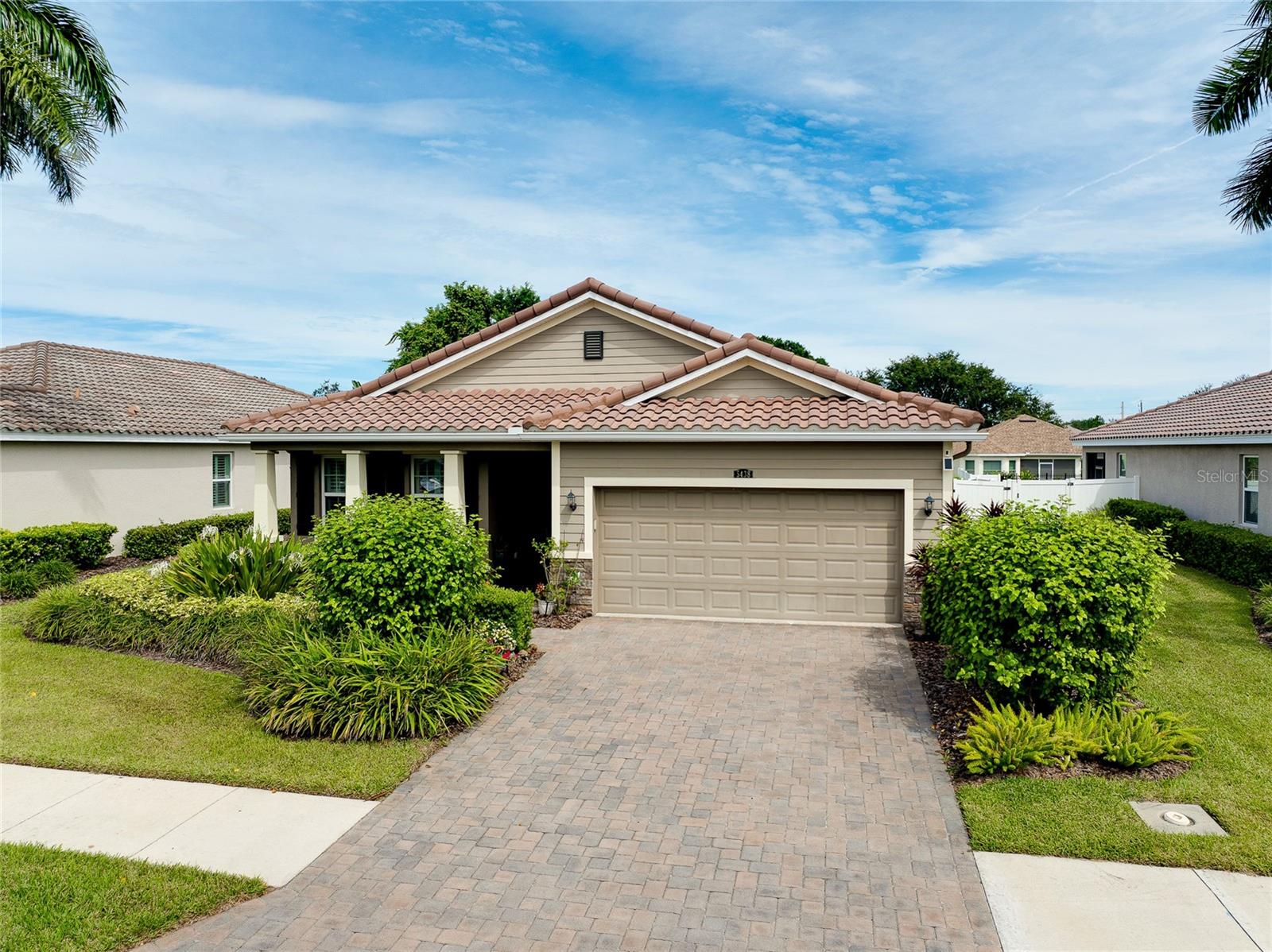 Tucked away on a quiet cul-de-sac in a newer gated community in the Palmer Ranch area, this tranquil and well-appointed home offers the perfect blend of comfort and convenience. Featuring 3 bedrooms, 2 baths, plus a den, the open split-bedroom floorplan is designed for both everyday living and entertaining. The spacious kitchen boasts upgraded 42" cabinetry, granite countertops, and a breakfast bar that seamlessly connects to the living and dining areas, while the den offers a private retreat tucked off to the side. Tile flooring flows through the main living spaces, with low-maintenance laminate in the bedrooms. Step outside to your private patio overlooking a serene pond, where you can relax and enjoy the abundance of birds and wildlife from your fully fenced backyard haven. This home is equipped with numerous upgrades, including a high-efficiency 15 SEER HVAC system, programmable thermostat, radiant roof barrier sheathing, and energy-saving double-pane low-E windows and sliding glass door and hurricane shutters for peace of mind. If it is a pool you desire, there is room for one here (sketch attached). This upscale community of 49 homes showcases timeless curb appeal, with each home featuring brick paver driveways and entry walks, elegant stone exterior accents, and durable barrel tile cement roofs. The low HOA fee includes gated entry, grounds maintenance, lawn irrigation, and access to the community playground. Ideally located near I-75, this community is just minutes from world-famous Siesta Key, vibrant downtown Sarasota, and an array of shops, dining, parks, and trails, some just a couple blocks away. Top-rated schools are also nearby, making this home an exceptional choice. Up to 1% of the loan amount for rate buy down or lender credits are being offered specifically for this home