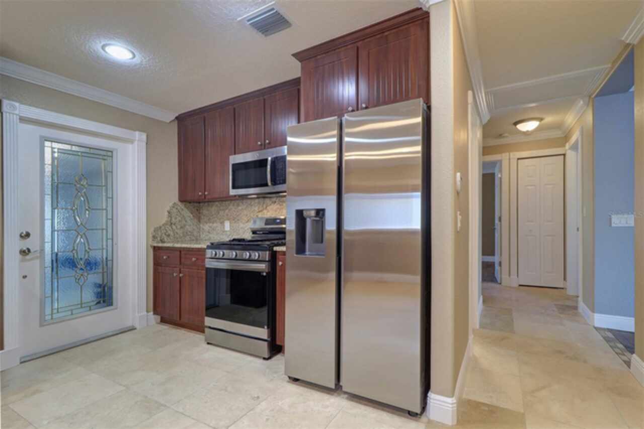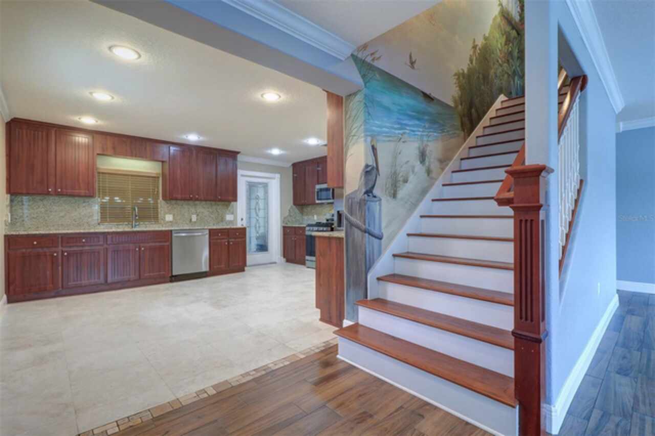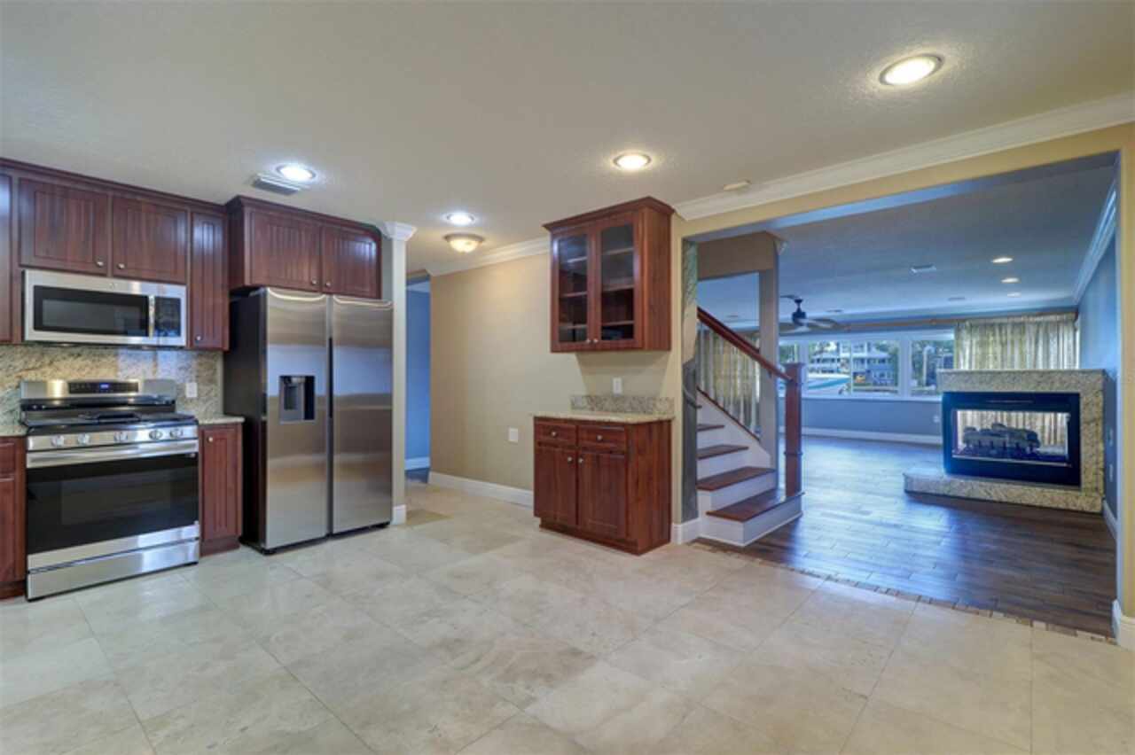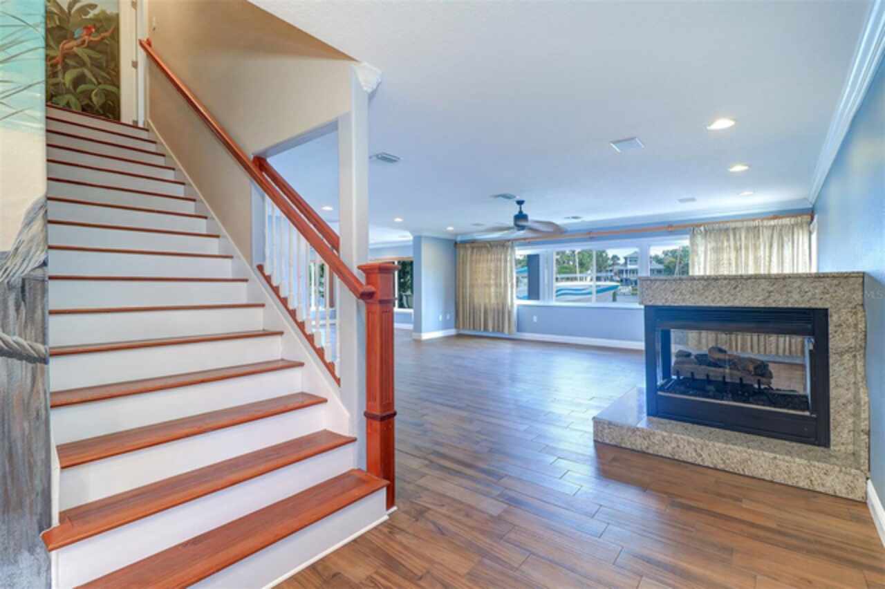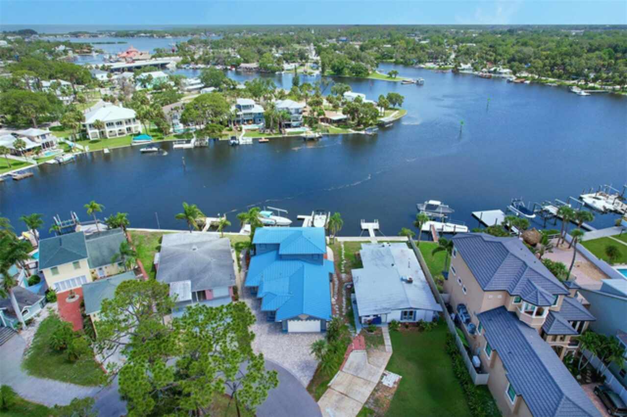 Discover this stunningly renovated Cotee Riverfront residence with 65 feet of composite board dock, a floating dock, two boat lifts, (24, 000/8, 000 PDS) and a paver lounge area, this home offers unparalleled access to the ever-active Cotee River. A spacious 20x30 oversized garage with extra Storage accommodates all your toys, complemented by an additional paved parking area and a 10x9 finished storage space with stylish c-tile flooring. The garage houses a full bath/laundry room, complete with c-tile flooring, granite counters, and a walk-in shower. Modern oversized 15x13 updated gourmet kitchen boasts 36-inch cabinets, soft-close drawers, granite countertops, and new appliances, including a coveted GAS range. C-tile and wood-grain composite flooring extend throughout, blending durability with elegance. Enjoy the breathtaking panoramic views of the Cotee River from the expansive 33x25 great room, featuring a gas fireplace. The adjoining 16x15 dining area opens onto a 16x15 covered lanai, perfect for seamless indoor-outdoor living and entertaining by the river. Two spacious bedrooms on the main level provide comfort and convenience. Upstairs, the luxurious 15x32 ensuite offers a gas fireplace, an adjacent 15x15 private sitting area, and exclusive access to an 18x12 observation platform for stunning river vistas. The ensuite bathroom showcases a wraparound walk-in shower and dual c-tile sinks. A durable metal roof ensures peace of mind. Equipped with two AC units for optimal climate control. With three bedrooms, three baths, and 2, 800 sq. ft. of refined living space, this home redefines modern riverfront living. And best of all, enjoy the golf cart friendly always active downtown New Port Richey with many upscale restaurants and unending riverfront activities for the whole family.