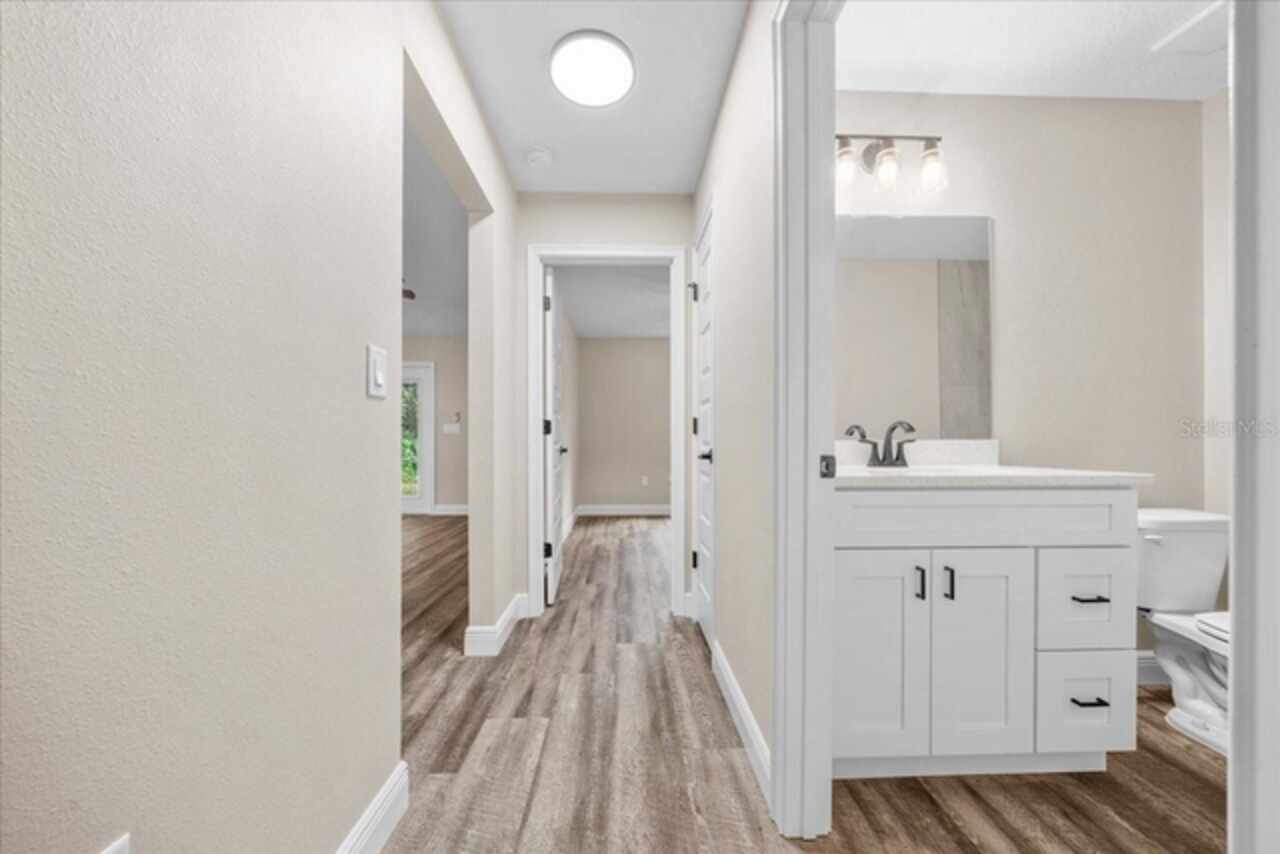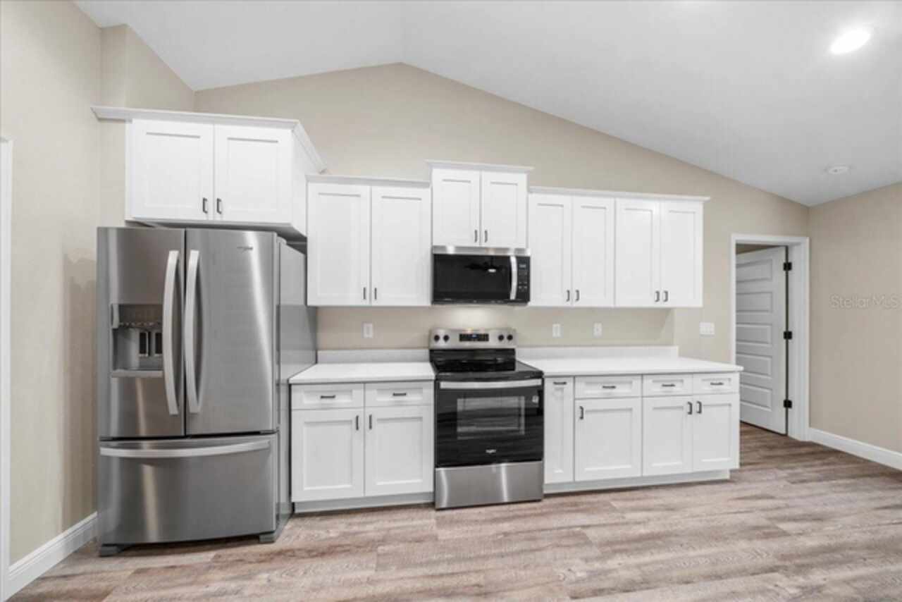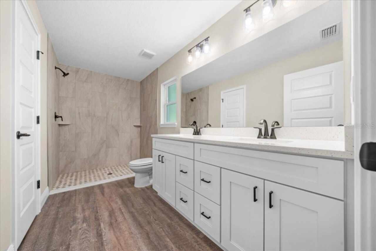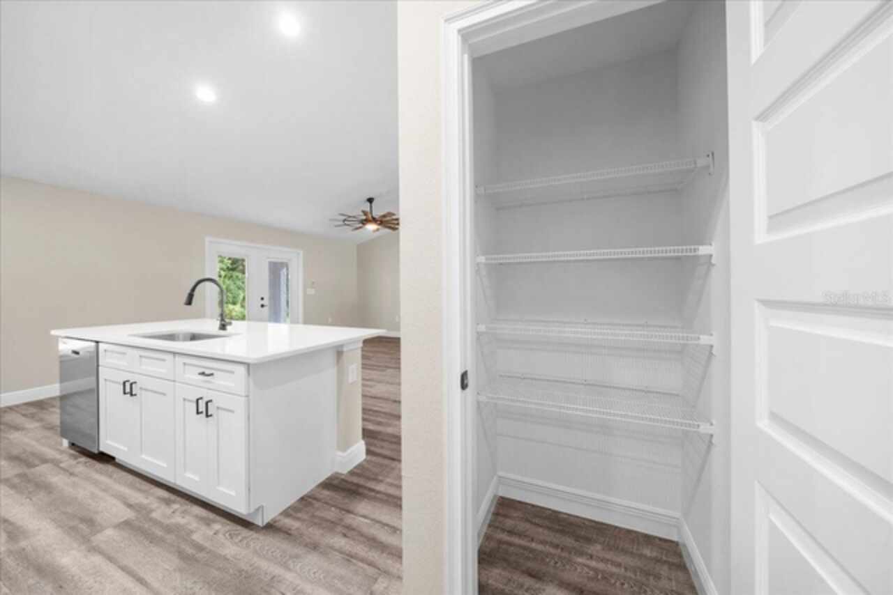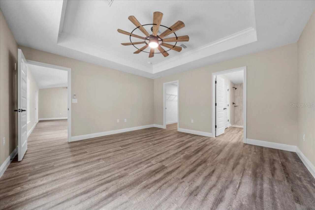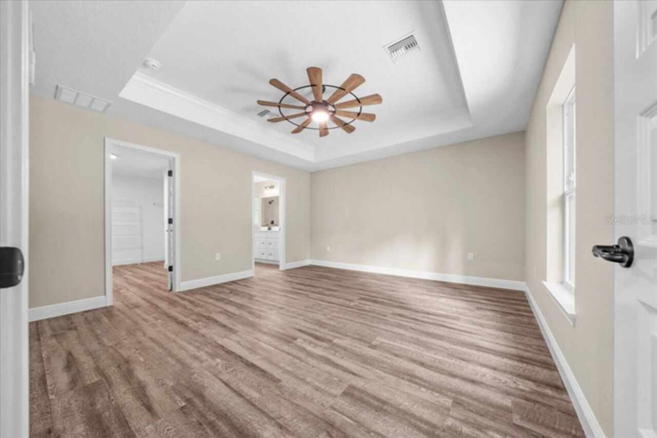 Introducing an exquisite newly constructed three-bedroom, two-bath home. This residence is designed to impress, featuring cathedral ceilings in the living room that enhance the sense of space and openness. The seamless open floor plan connects to a beautiful kitchen, complete with a large island, premium granite countertops, and stainless steel appliances. The home has LVP flooring throughout, ensuring both elegance and durability. Additional conveniences include an indoor laundry room and an 8x16 covered lanai, great for hosting gatherings or enjoying peaceful moments outdoors. The master suite is a sanctuary of luxury, offering a tray ceiling, a generously sized walk-in closet, and a master bath equipped with double sinks and a walk-in shower. Every element of this home has been meticulously crafted to provide unparalleled comfort, style, and functionality. Seize the opportunity to own this exceptional property. Located in Citrus Springs on a corner lot. Short drive to many local waterways and Crystal River. Your dream home awaits.