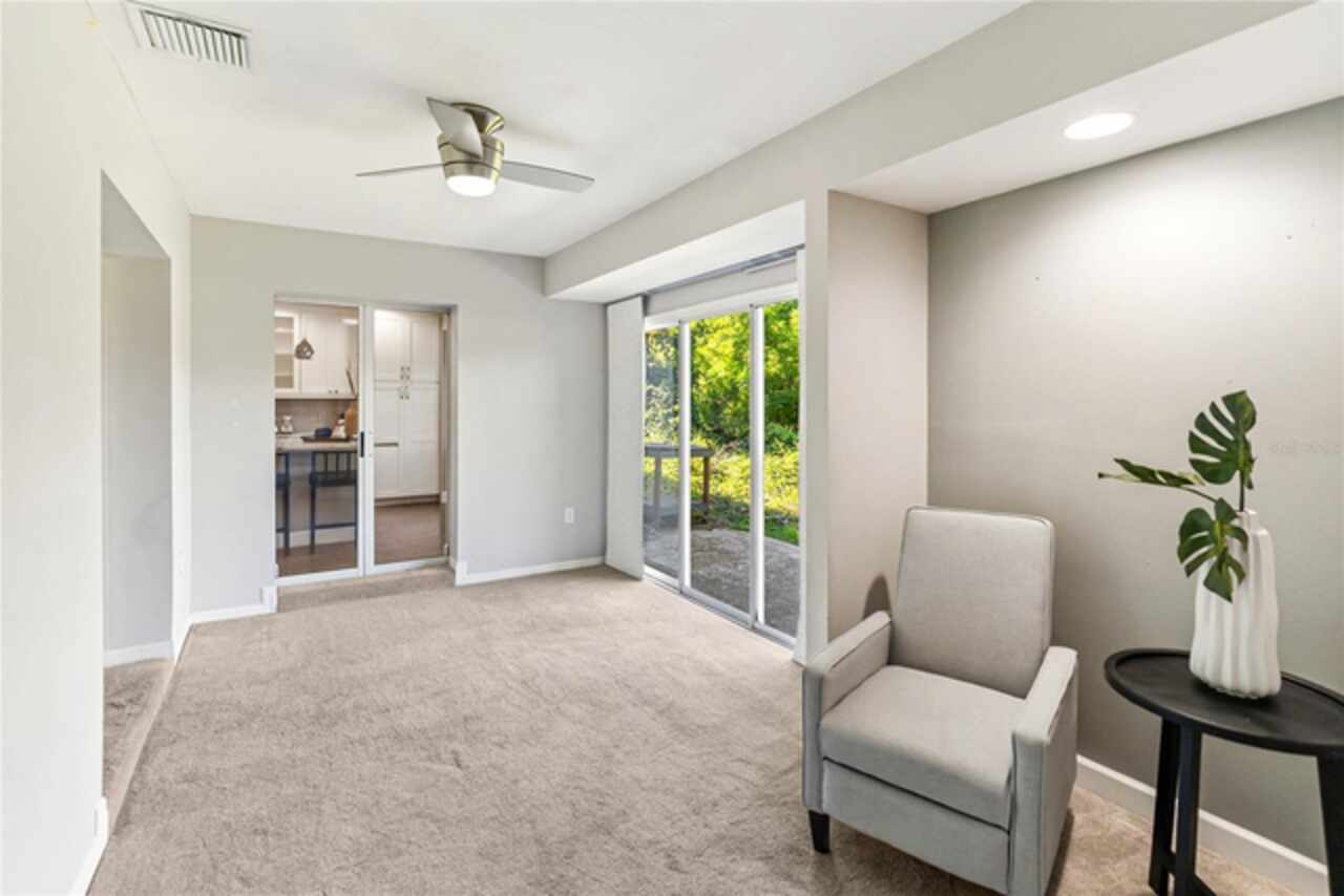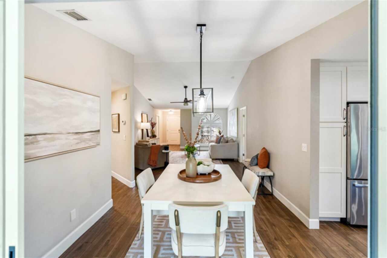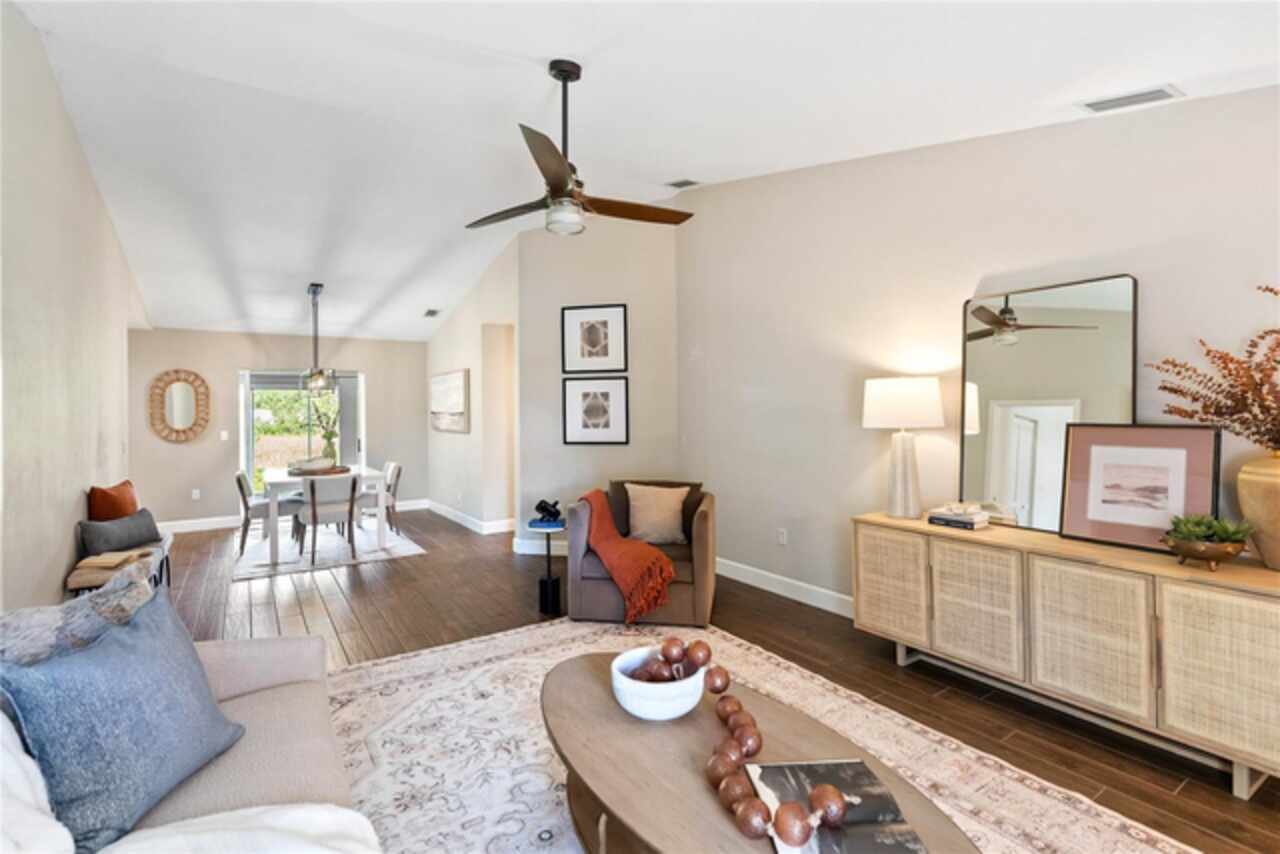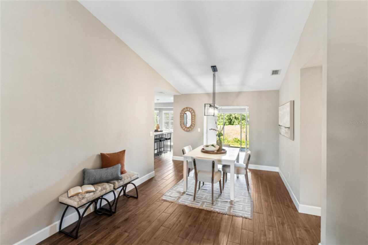 One or more photo(s) has been virtually staged. This beautifully remodeled 4-bedroom, 2-bathroom home in Sarasota’s Deer Hollow community offers the perfect balance of modern style, comfort, and convenience. From the moment you step inside, you’ll notice the light-filled open layout with soaring vaulted ceilings and a seamless flow between the living, dining, and kitchen areas. The main living spaces are finished with tile designed to look like natural hardwood, offering both style and long-lasting durability. While plush carpet in the bedrooms and tile in the bathrooms provide comfort and functionality throughout. At the heart of the home, the custom kitchen is a true showpiece designed for both cooking and entertaining, with bright white shaker cabinets accented by glass fronts, granite countertops, stainless-steel appliances, and an oversized island with bar seating. The dining room just off the kitchen offers plenty of space for family dinners and opens to the backyard for effortless indoor-outdoor living. The primary suite provides a private retreat, while the updated bathrooms showcase modern tile, vanities, and fixtures with a spa-like feel. Three additional bedrooms offer flexibility for family, guests, or a home office. Practical updates include a roof replaced in 2019, an A/C system installed in 2013, and a hot water heater from 2016, giving buyers peace of mind. Located in the desirable Deer Hollow community, residents enjoy tree-lined streets, walking trails, and a playground with low HOA fees and no CDD costs, all just minutes to the UTC Mall, Benderson Park, and a variety of shopping, dining, and entertainment. When it’s time for a beach day, Sarasota’s world-famous Gulf beaches are only a short drive away, making this thoughtfully updated, move-in ready home a rare find for those seeking the very best of Sarasota living.
