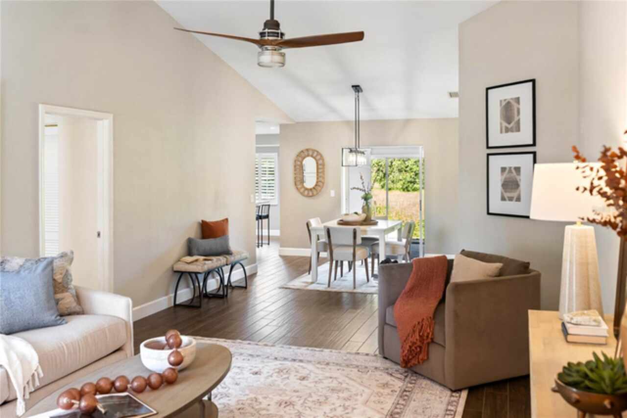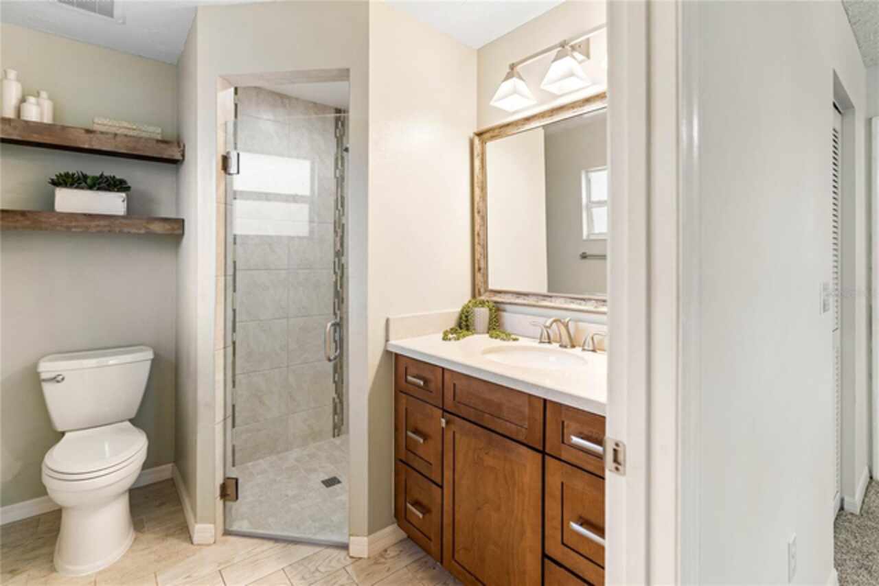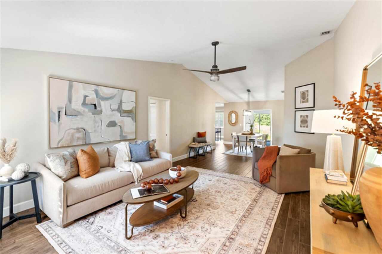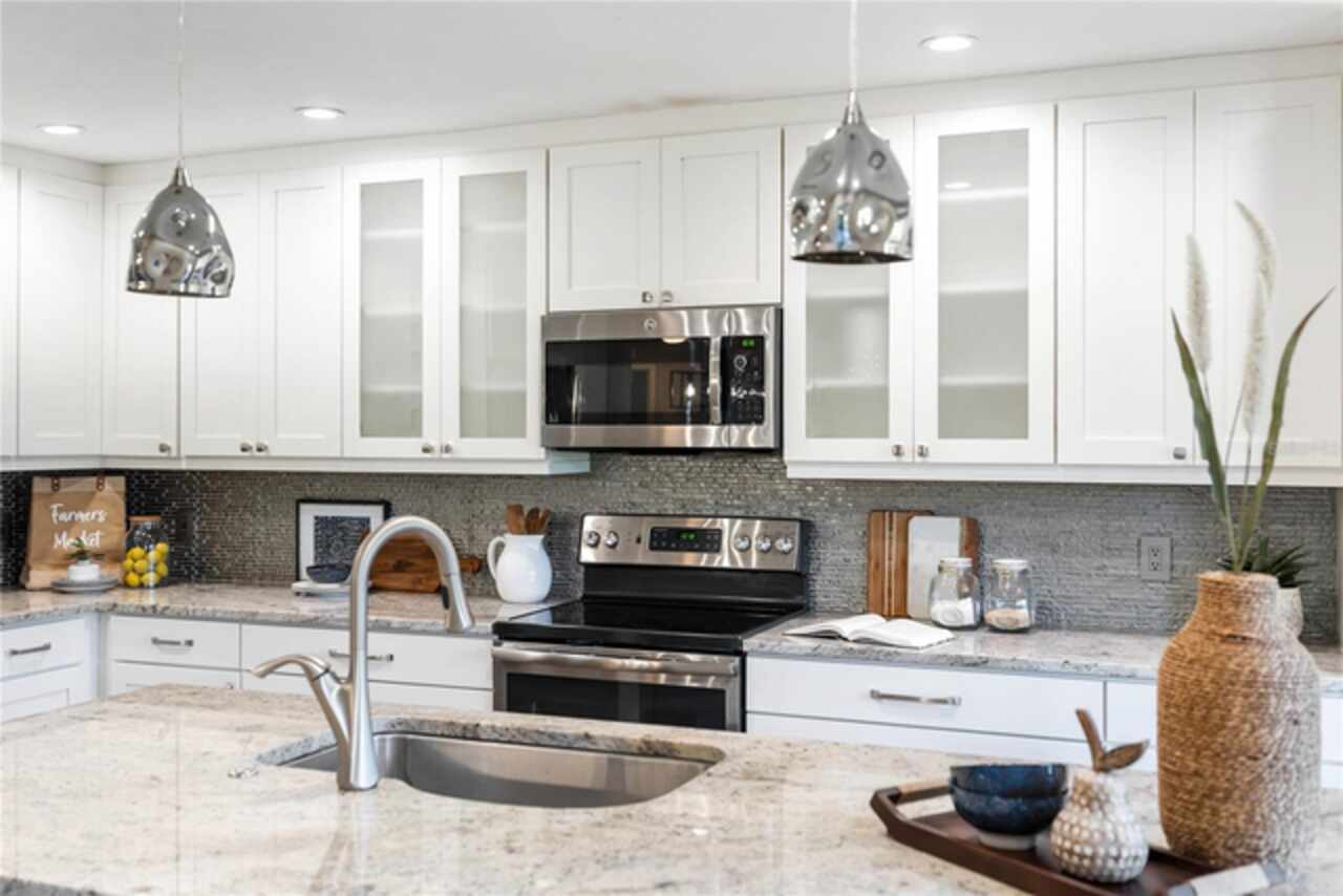 One or more photo(s) has been virtually staged. This beautifully remodeled 4-bedroom, 2-bathroom home in Sarasota’s Deer Hollow community offers the perfect balance of modern style, comfort, and convenience. From the moment you step inside, you’ll notice the light-filled open layout with soaring vaulted ceilings and a seamless flow between the living, dining, and kitchen areas. The main living spaces are finished with tile designed to look like natural hardwood, offering both style and long-lasting durability. While plush carpet in the bedrooms and tile in the bathrooms provide comfort and functionality throughout. At the heart of the home, the custom kitchen is a true showpiece designed for both cooking and entertaining, with bright white shaker cabinets accented by glass fronts, granite countertops, stainless-steel appliances, and an oversized island with bar seating. The dining room just off the kitchen offers plenty of space for family dinners and opens to the backyard for effortless indoor-outdoor living. The primary suite provides a private retreat, while the updated bathrooms showcase modern tile, vanities, and fixtures with a spa-like feel. Three additional bedrooms offer flexibility for family, guests, or a home office. Practical updates include a roof replaced in 2019, an A/C system installed in 2013, and a hot water heater from 2016, giving buyers peace of mind. Located in the desirable Deer Hollow community, residents enjoy tree-lined streets, walking trails, and a playground with low HOA fees and no CDD costs, all just minutes to the UTC Mall, Benderson Park, and a variety of shopping, dining, and entertainment. When it’s time for a beach day, Sarasota’s world-famous Gulf beaches are only a short drive away, making this thoughtfully updated, move-in ready home a rare find for those seeking the very best of Sarasota living.