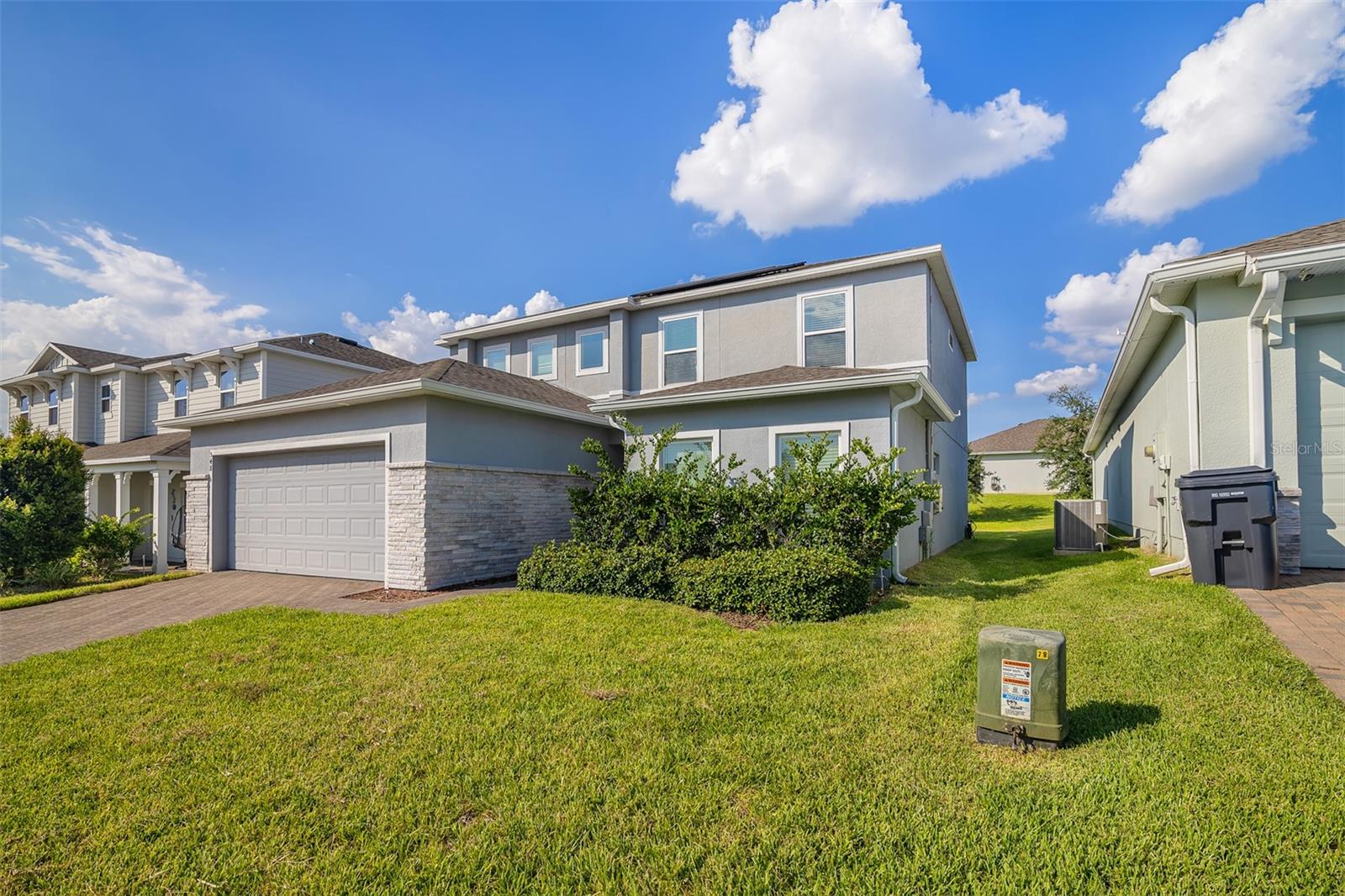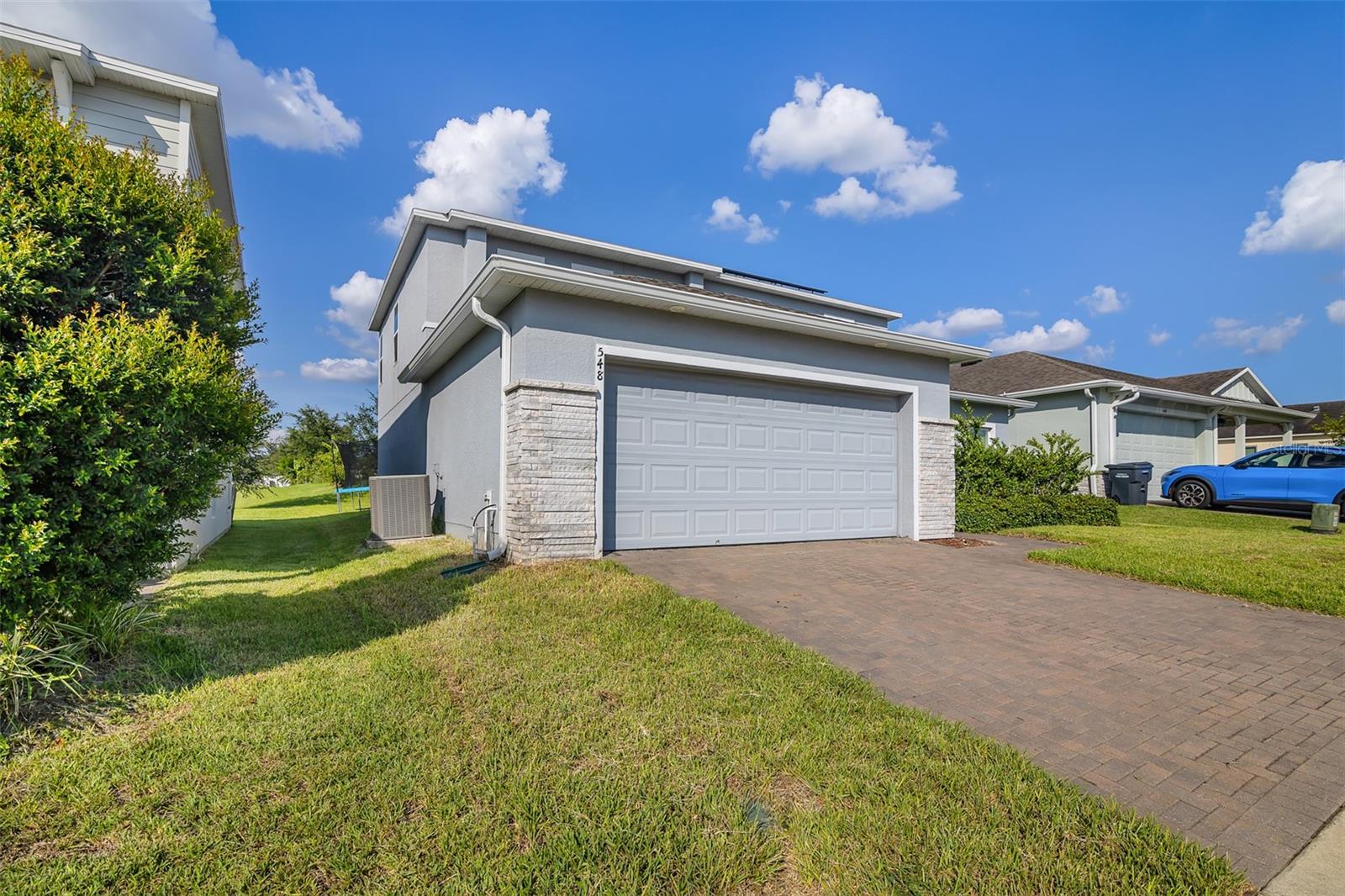 Welcome to 548 Ogelthorpe Drive in the desirable Laurel Estates community! This beautifully maintained 4-bedroom, 3-bathroom home includes a full bedroom and bathroom on the main floor, perfect for guests or multi-generational living. There's also a versatile flex room with a standard door, ideal as a 5th bedroom, office, playroom, or media space — endless possibilities! The home is short-term rental approved, making it a fantastic investment opportunity directly across from ChampionsGate and just minutes from Disney. Enjoy energy efficiency and long-term savings with fully paid-off solar panels at closing. Features include extended tile flooring, granite countertops, a stone-accented front exterior, and fresh interior paint. With a spacious 2-car garage, low HOA, and unbeatable location near shopping, dining, golf, and world-class attractions, this home offers the perfect blend of comfort, flexibility, and income potential.