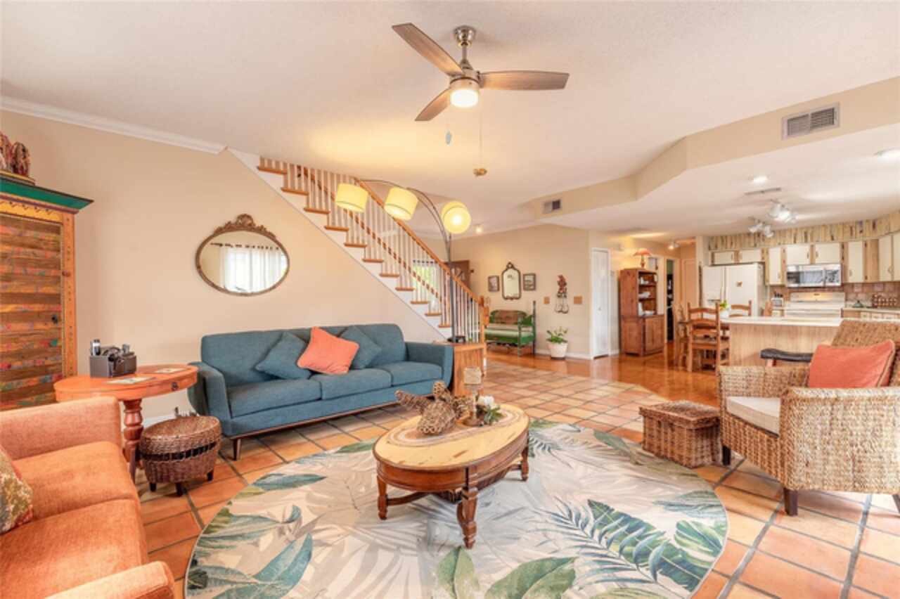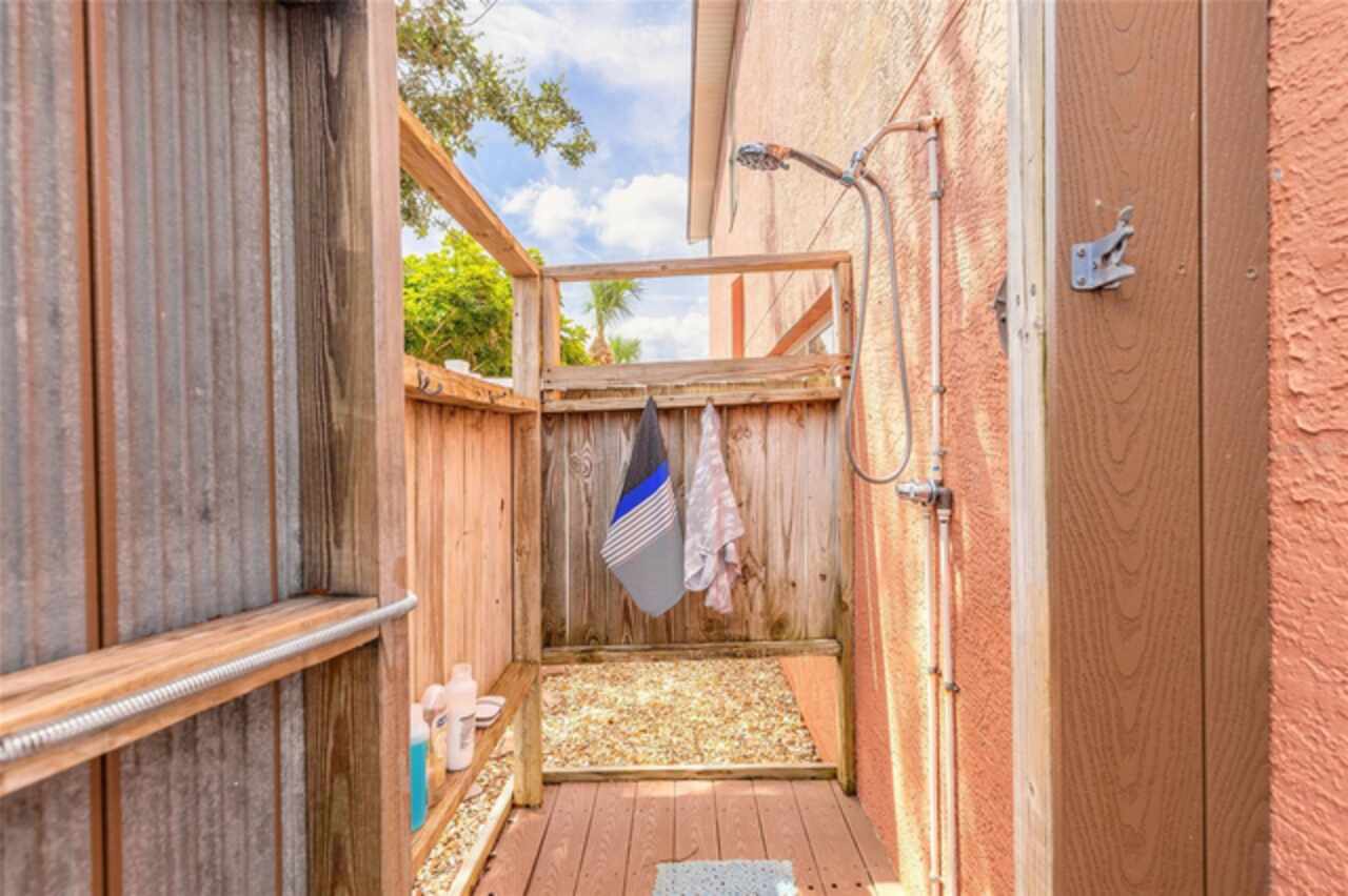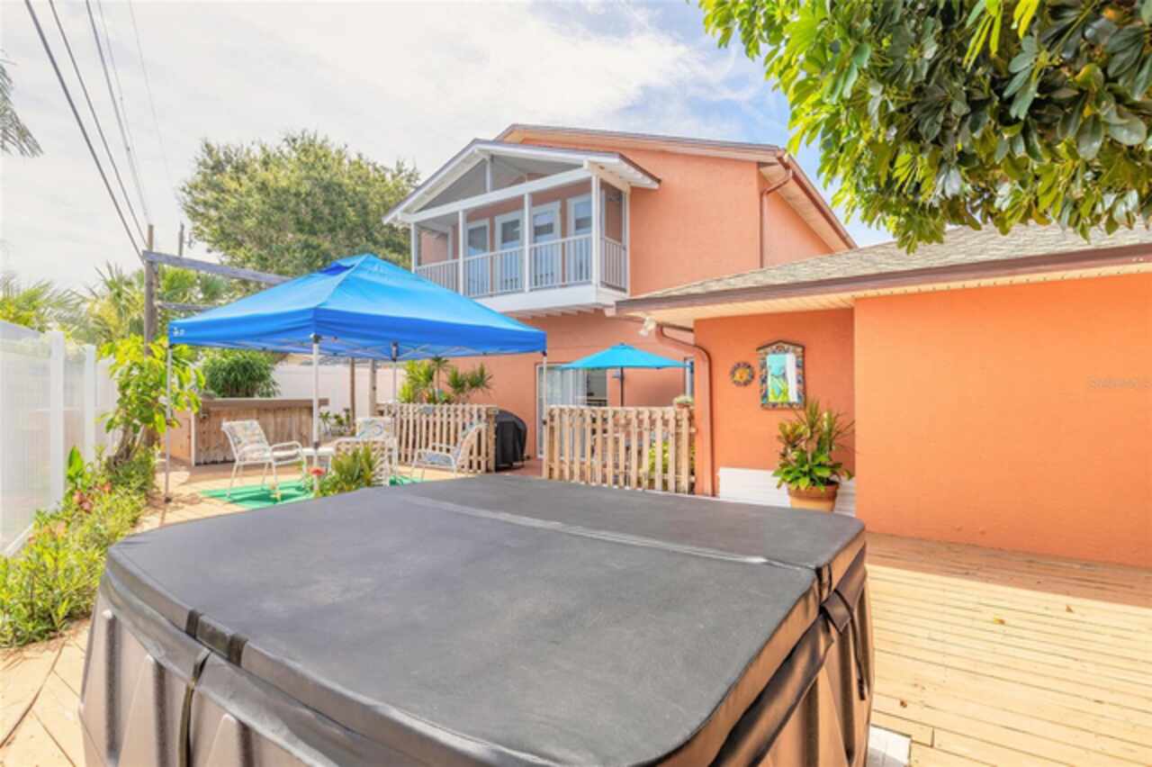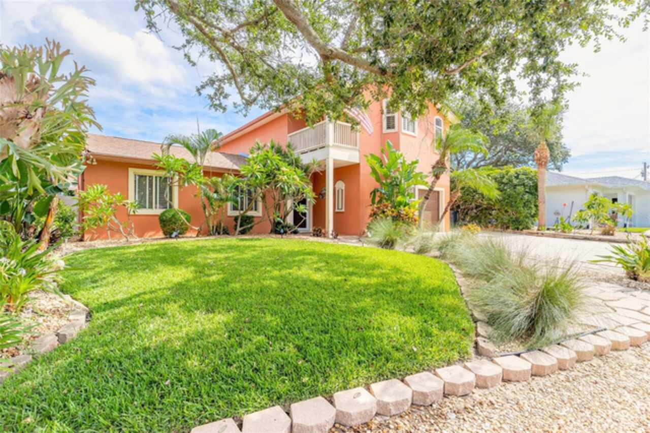 Wake up to ocean breezes in this spacious 4-bed, 3-bath home with dual primary suites—one up, one down—perfect for guests or multigenerational living. Plenty of room for all with 2, 817 sqft of living, an open floor plan, formal dining, and a spacious bright family room. The upstairs suite features high ceilings, a coffee bar, huge walk-in closet, an air conditioned storage area and 2 balconies to enjoy sunsets and cool breezes. New roof, new fence, and fresh interior paint. This is an ideal retreat with lush tropical landscaping, large back deck, and an outdoor bar area that makes entertaining easy. Rinse off in the outdoor shower after walking to the beach or river. Coastal living at its best—close to shops, dining, the ocean, and Intracoastal! Fresh eggs! Chicken coup and chickens can convey.