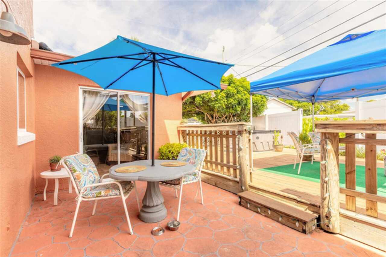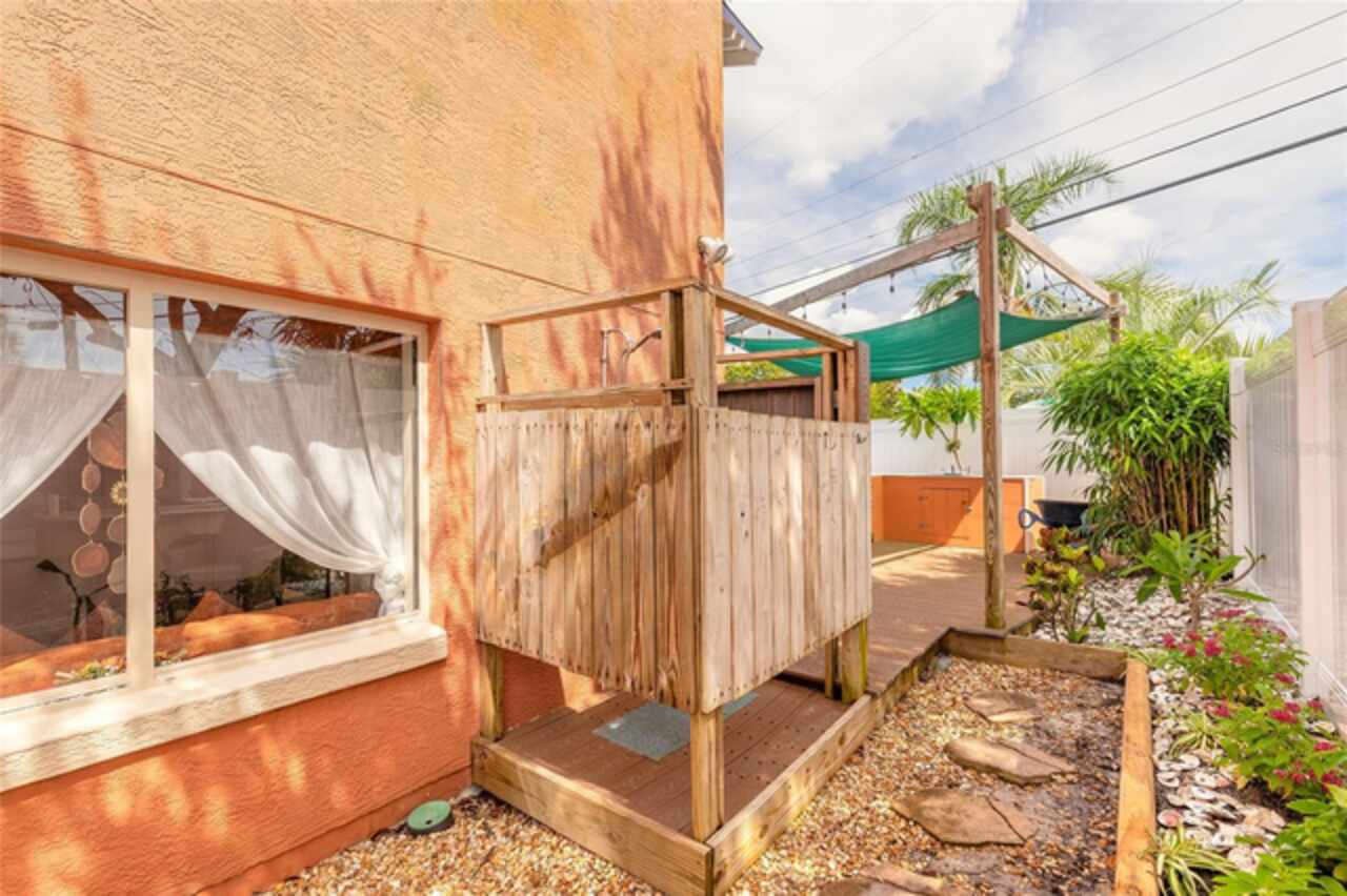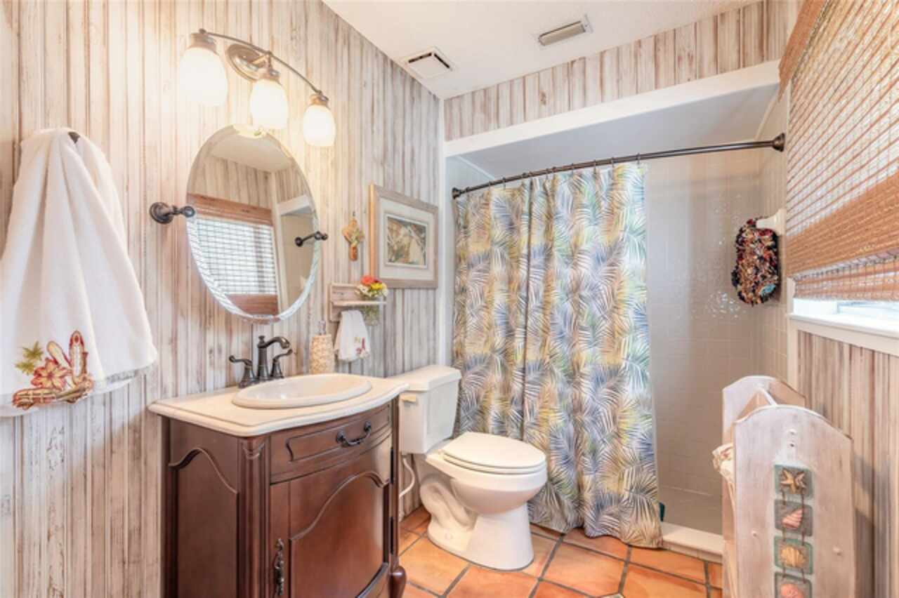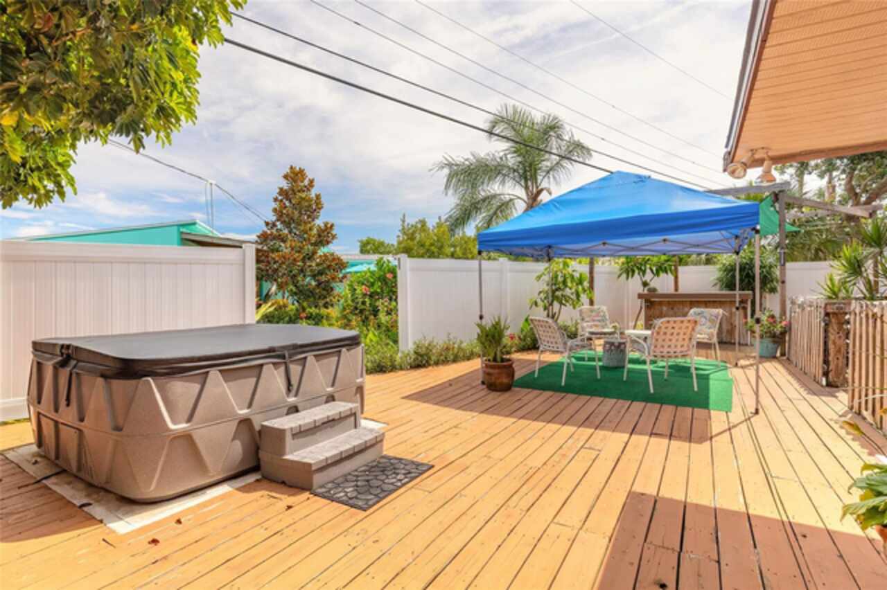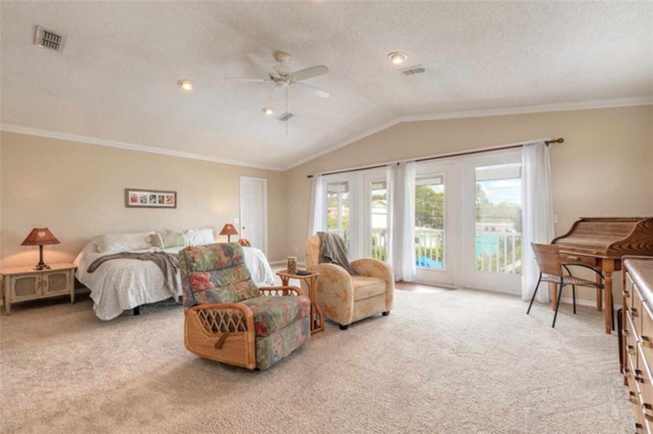 Wake up to ocean breezes in this spacious 4-bed, 3-bath home with dual primary suites—one up, one down—perfect for guests or multigenerational living. Plenty of room for all with 2, 817 sqft of living, an open floor plan, formal dining, and a spacious bright family room. The upstairs suite features high ceilings, a coffee bar, huge walk-in closet, an air conditioned storage area and 2 balconies to enjoy sunsets and cool breezes. New roof, new fence, and fresh interior paint. This is an ideal retreat with lush tropical landscaping, large back deck, and an outdoor bar area that makes entertaining easy. Rinse off in the outdoor shower after walking to the beach or river. Coastal living at its best—close to shops, dining, the ocean, and Intracoastal! Fresh eggs! Chicken coup and chickens can convey.