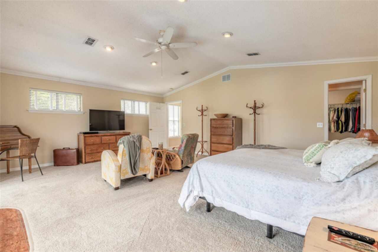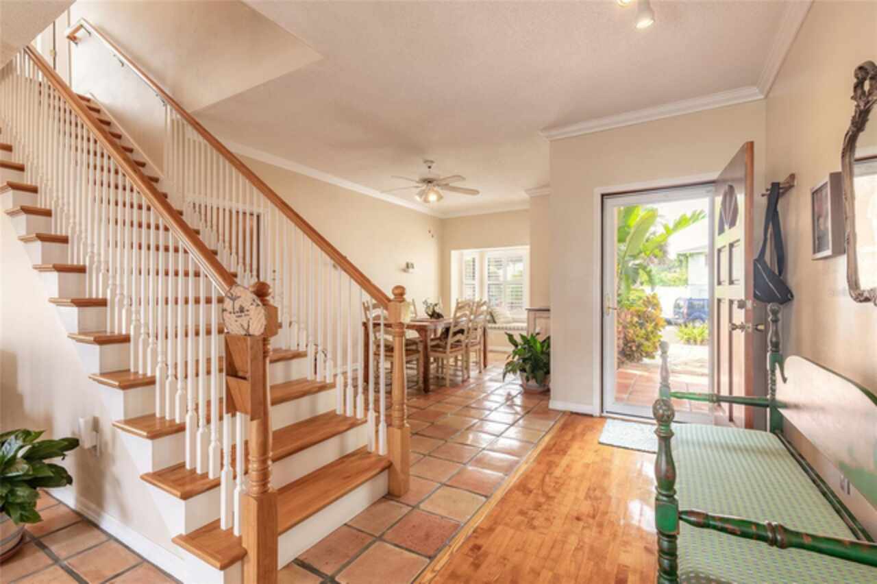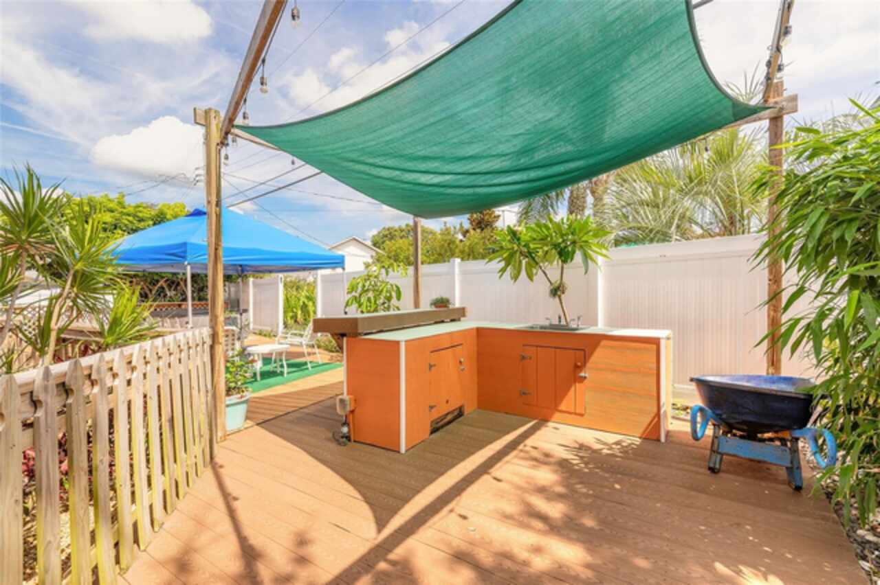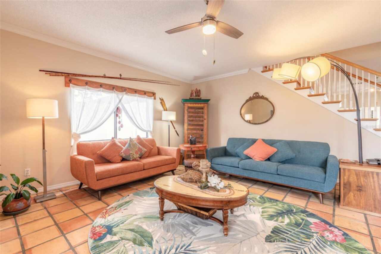Wake up to ocean breezes in this spacious 4-bed, 3-bath home with dual primary suites—one up, one down—perfect for guests or multigenerational living. Plenty of room for all with 2, 817 sqft of living, an open floor plan, formal dining, and a spacious bright family room. The upstairs suite features high ceilings, a coffee bar, huge walk-in closet, an air conditioned storage area and 2 balconies to enjoy sunsets and cool breezes. New roof, new fence, and fresh interior paint. This is an ideal retreat with lush tropical landscaping, large back deck, and an outdoor bar area that makes entertaining easy. Rinse off in the outdoor shower after walking to the beach or river. Coastal living at its best—close to shops, dining, the ocean, and Intracoastal! Fresh eggs! Chicken coup and chickens can convey.