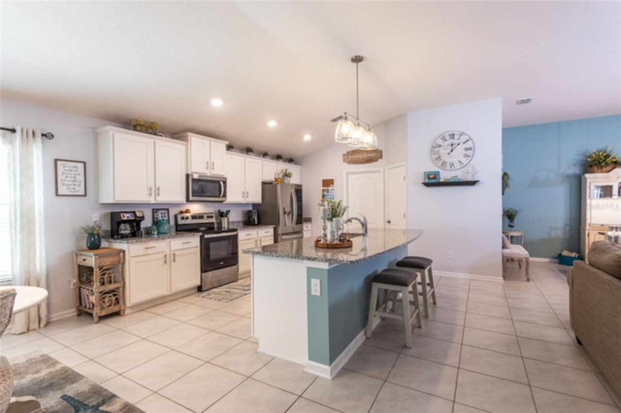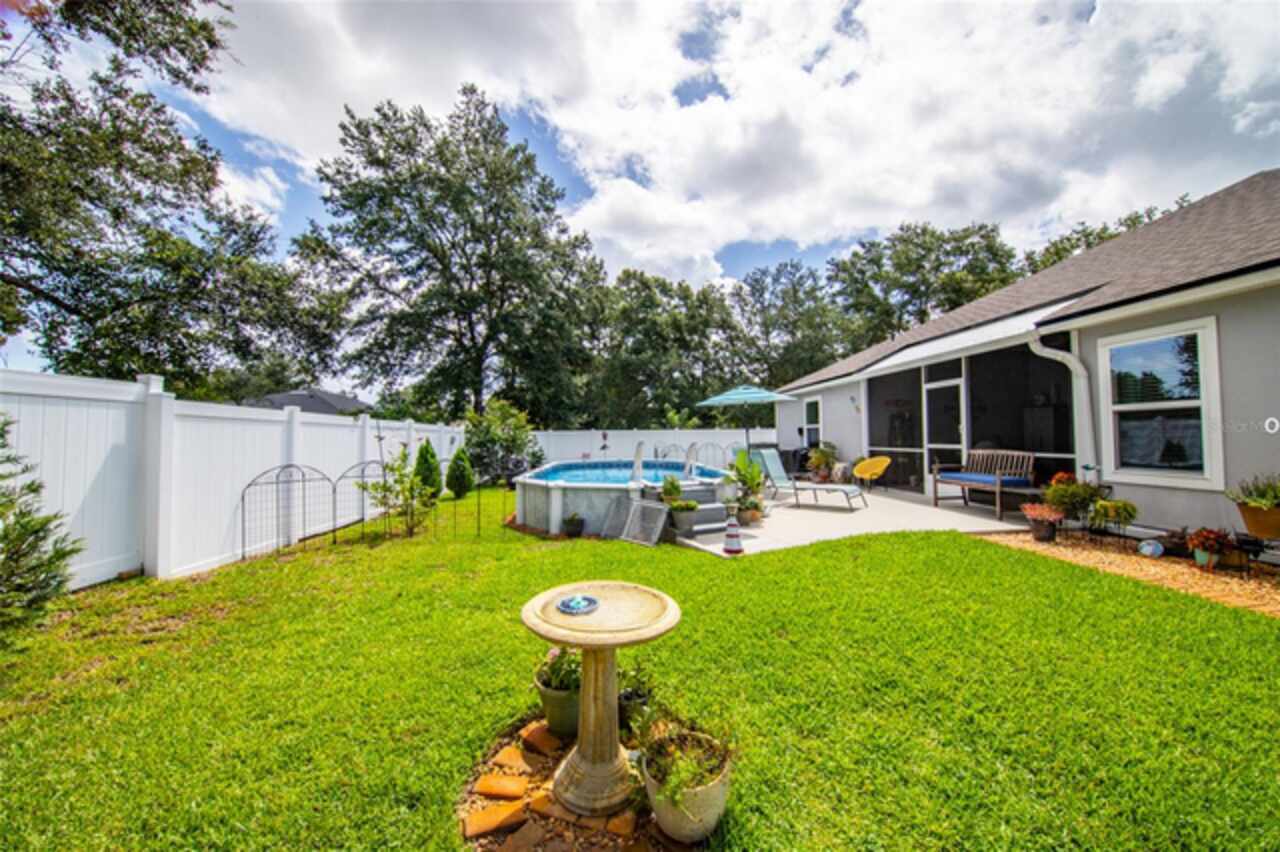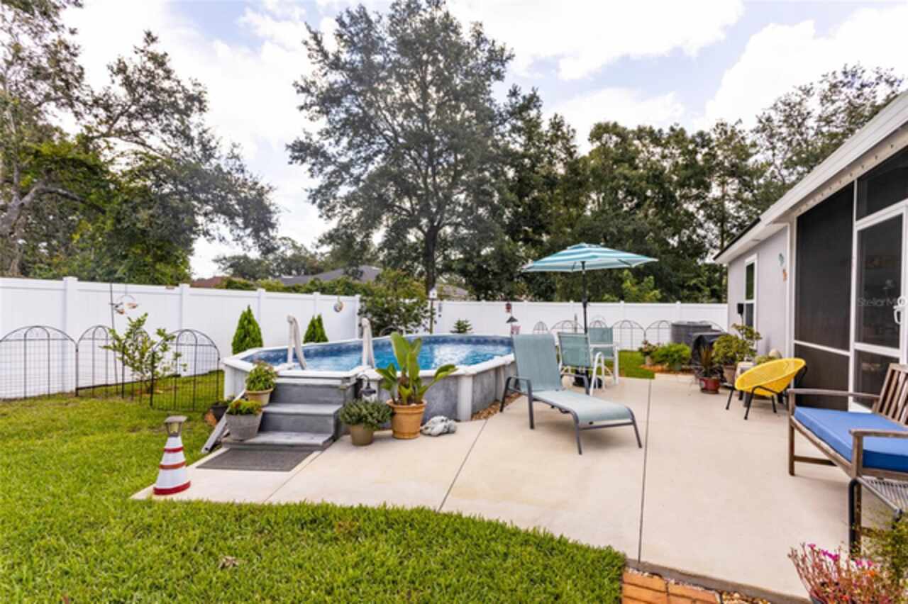 Enjoy the Florida lifestyle with this inviting home featuring a large backyard, perfect for outdoor fun and relaxation. Take a dip in the above-ground pool or unwind on the screened-in porch. Inside, you'll find a bright, open-concept living space with a modern kitchen that flows seamlessly into the family room—ideal for entertaining. This well-designed home features three spacious bedrooms, three full bathrooms, a private office, and a three-car garage to accommodate all your storage and parking needs. Don’t miss the opportunity to make this home yours—schedule your showing today!