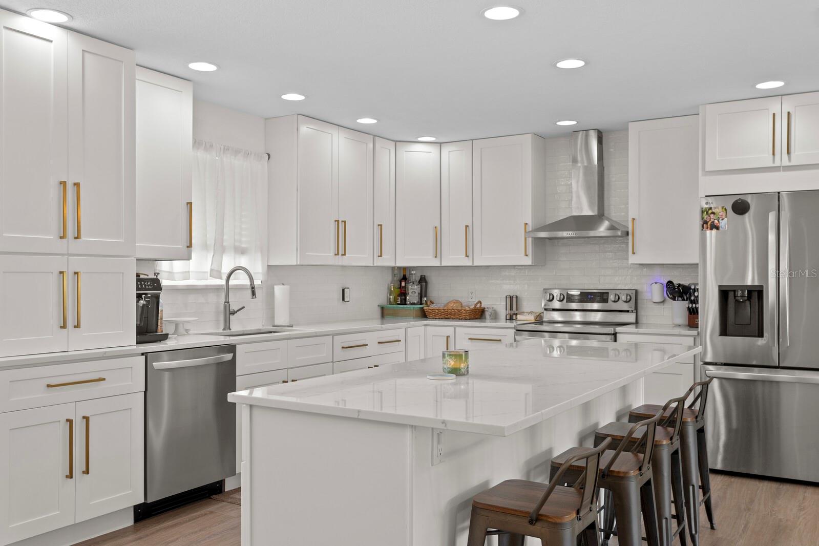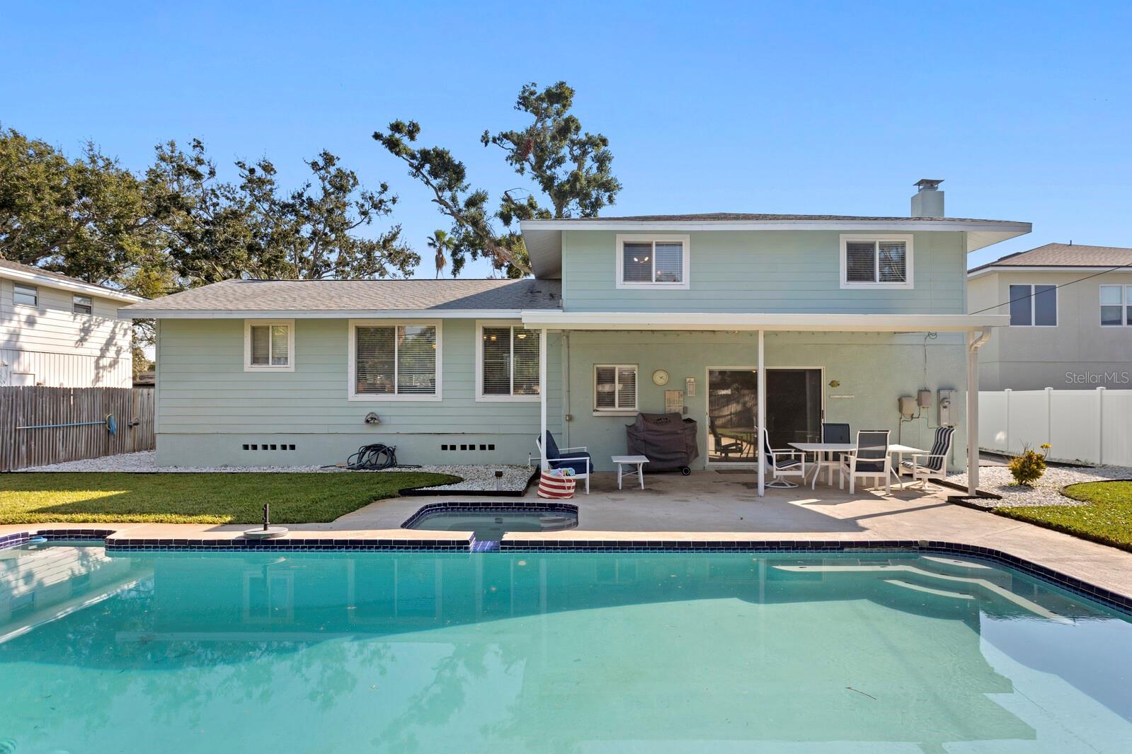 Exceptional single-family home located in NE St. Petersburg. Nestled in one of the area’s most desirable golf-cart-friendly neighborhoods, this residence blends refined comfort with thoughtful design across 2, 335 sq ft of beautifully updated space. From the moment you step inside, the expansive living room and open-concept layout set an inviting tone—ideal for effortless entertaining and everyday enjoyment. The newly renovated kitchen is a true standout, featuring a generous island with bar seating, a range with hood, and abundant storage. Flowing seamlessly from the kitchen and living room, the dining area easily accommodates a large table without ever feeling crowded. Just beyond the dining area, a sprawling Florida room that opens through sliding doors to a covered patio and an estate-sized pool, creating a luxurious indoor-outdoor retreat. The grounds are equally impressive—over 16, 000 sq ft of green space offering endless possibilities for recreation, gardens, gatherings, or quiet relaxation. Mudroom and utility room with a full bathroom just off of the Florida room. Upstairs, you’ll find 4 generous bedrooms and 2 stylish full bathrooms, including a serene primary suite with dual closets and an updated ensuite. An exceptionally large driveway and oversized two-car garage provide ample room for vehicles, golf carts, or weekend toys. From here, enjoy the ease of Shore Acres living—take a quick ride to waterfront parks, playgrounds, and beloved Denver Park with its tennis courts, ball fields, picnic areas, and dog-friendly amenities. The neighborhood’s Islander Market is just around the corner, offering gourmet deli items, groceries, and local and Italian specialties. Situated near the area's top private schools and the highly rated Shore Acres Elementary, and just minutes from vibrant Downtown St. Petersburg, this is a home that truly lives like a dream. Come experience why Shore Acres is cherished by so many.