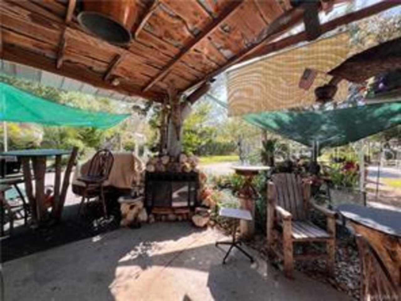 This family-friendly retreat offers three bedrooms and two bathrooms on a spacious 2.44-acre lot. Key features include a durable metal roof, two wells, a detached garage, two carports, five utility buildings, an open porch, an aluminum screened porch, three ponds, an above-ground pool, and a fenced-in yard. Enjoy tranquility on the single-story deck surrounded by trees. It is conveniently located near community amenities and the Gulf.