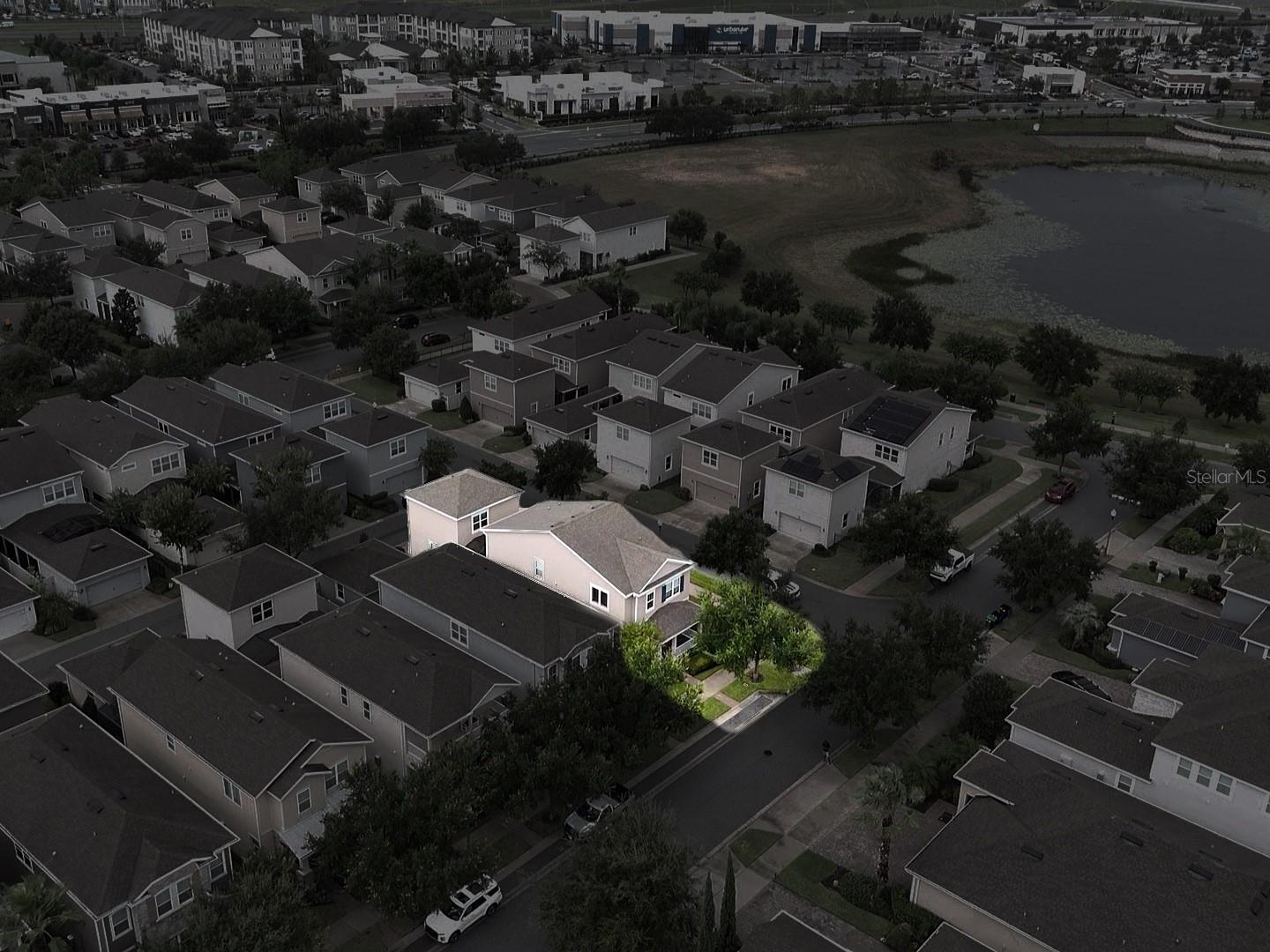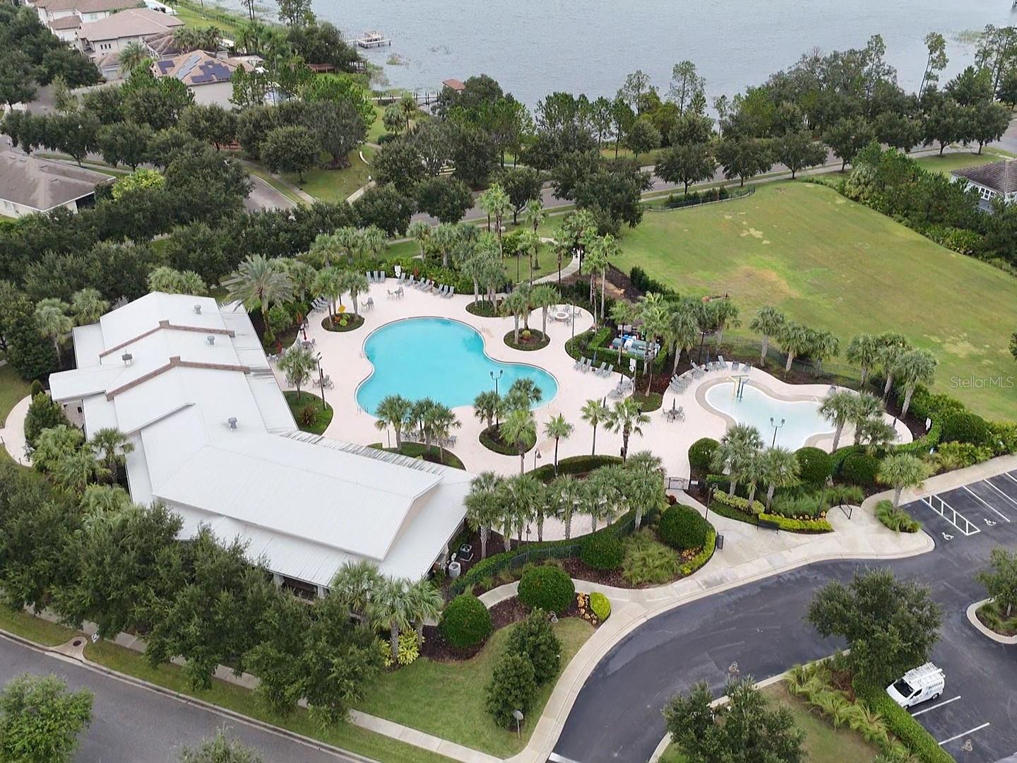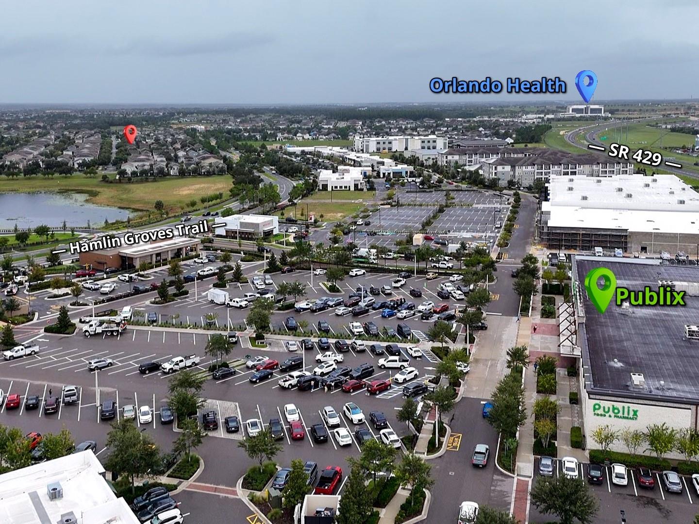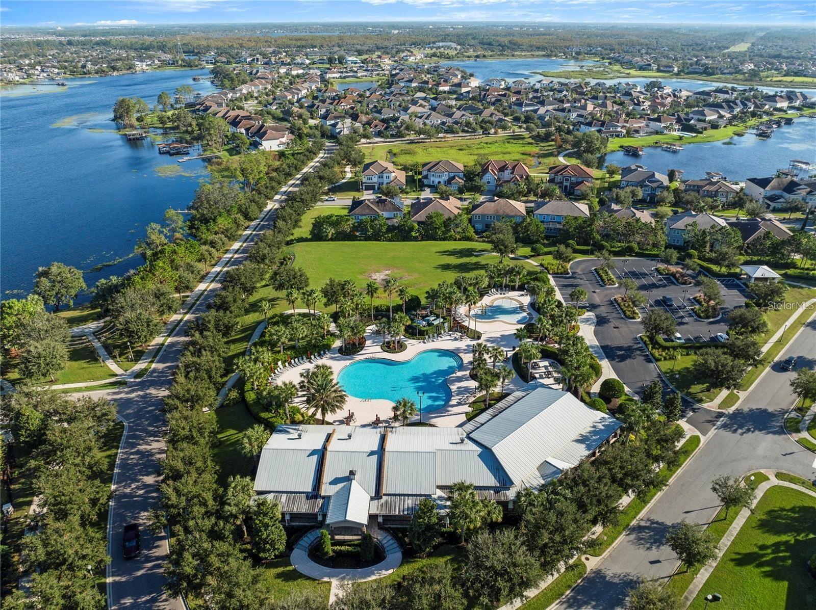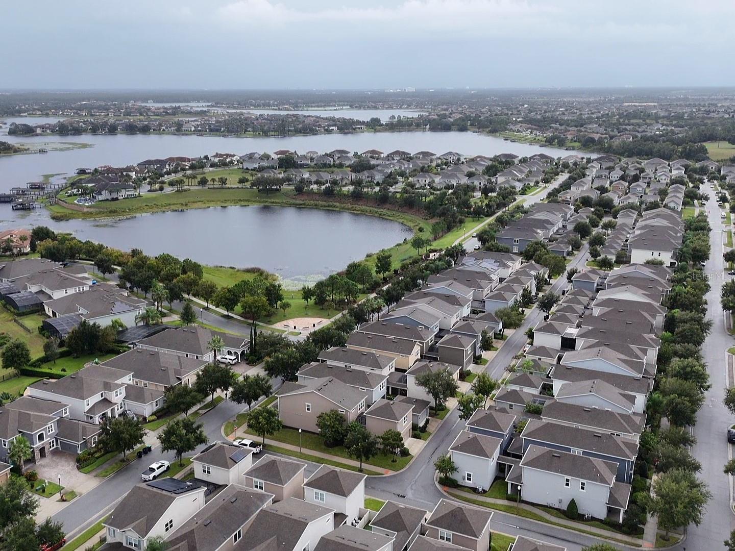 One or more photo(s) has been virtually staged. This house has one of the Popular floor plans From Taylor Morrison on large corner lot in the sought-after community of The Cove at Hamlin! This home offers 4 bedrooms and 3.5 baths in the main home building with a bonus suite above the garage with full bath, kitchenette, and walk-in closet, great for 5th bedroom, home office or game room! The home opens to a soaring two story, light filled foyer that leads to the open concept main level with upgraded tile, crown molding, multiple can lights, half bath and rear door to lanai and garage. The upgraded kitchen will delight any cook with large center island, pendant lights, granite counter tops, backsplash, under counter lighting, and stainless-steel appliances including a free-standing range, vented microwave and built-in French door refrigerator. The kitchen also includes an upgraded cabinet layout that includes 42" cabinets, drawer stack, trash/recycle bin drawer, classic crown molding.The kitchen also includes a large sunny dining area along with space at the counter and a large walk-in pantry with extra storage under the staircase. Just off of the kitchen is the large family room with plenty of windows looking out to the lanai, and an extra area perfect for a desk! A bedroom suite can be found on the main level just off the foyer with full bath and large closet. The owner's suite is found on the upper level and contains double entry doors, crown molding, owner's bath with dual sinks, linen closet, frameless shower enclosure. Just outside this bedroom is a sitting area, a large storage closet and laundry room. Also found on the upper level is two nice size bedrooms that share a hall bath. Some of the features of this home include a glass inserted front door, fans, tankless gas water heater, gutters, blinds, crown molding in all common areas and window treatments throughout the home. No need to worry about the yard because the HOA fee includes yard maintenance. This home is located in the master planned community of the Overlook at Hamlin, a waterfront community with resort style pool and splash pad, spacious clubhouse, fitness center, parks, walking trails and a boat ramp with fishing pier. This sought-after Horizon West community is part of one of the fastest growing communities in the country with shopping, restaurants, movie theater, schools, parks and a hospital all walking distance to the home