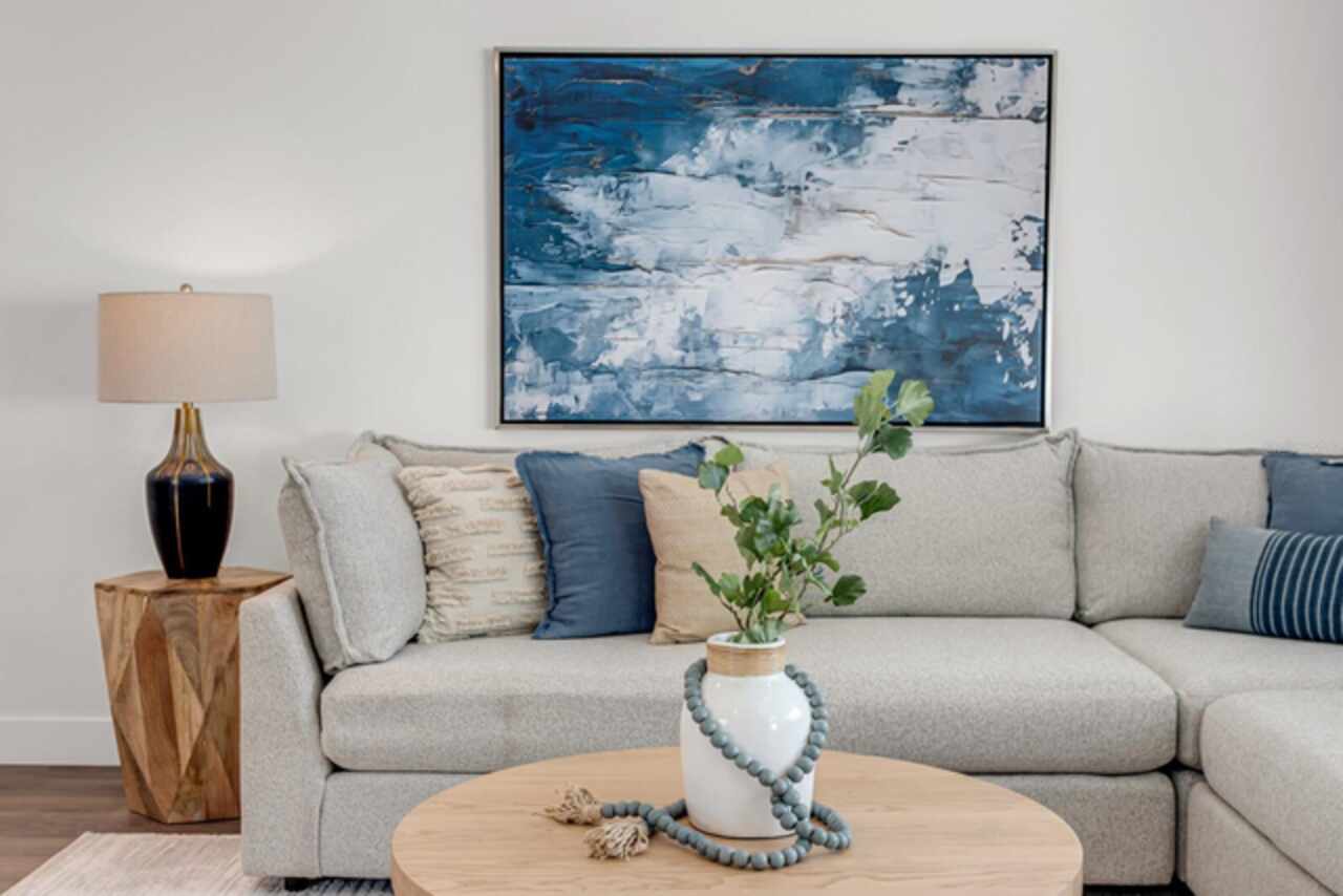 Eat-in Kitchen, High Ceilings, Kitchen/Family Room Combo, Living Room/Dining Room Combo, Open Floorplan, PrimaryBedroom Upstairs, Solid Surface Counters, Solid Wood Cabinets, Split Bedroom, Stone Counters, Thermostat, Walk-In Closet(s)