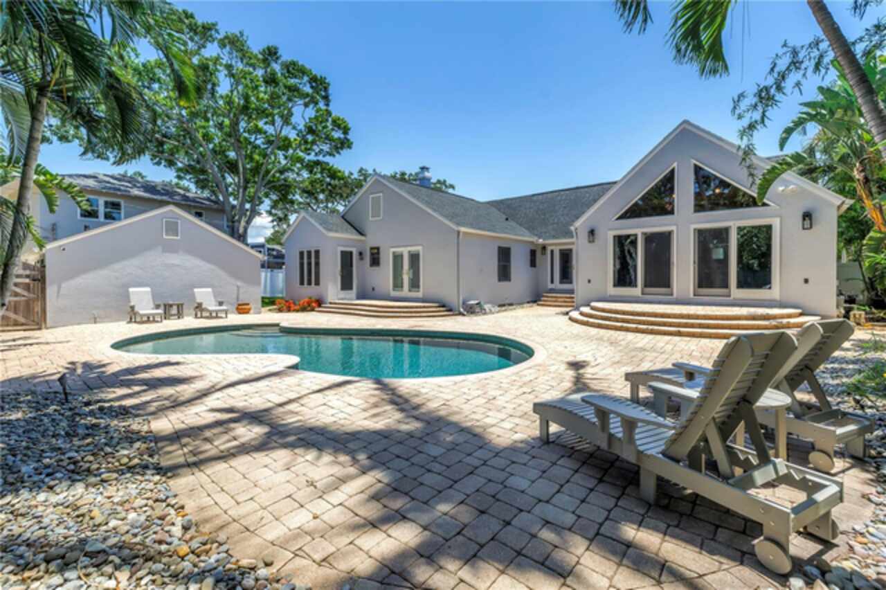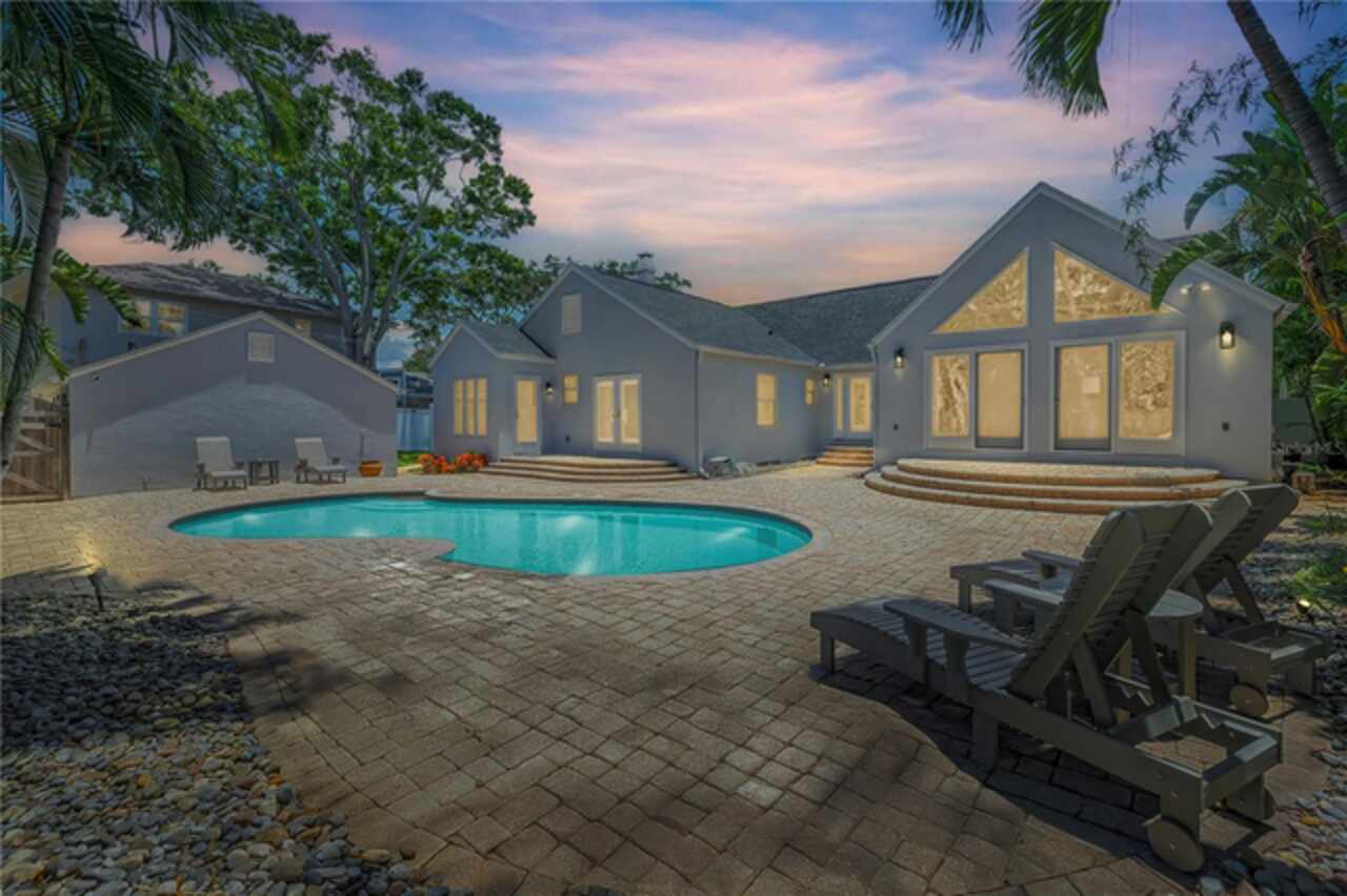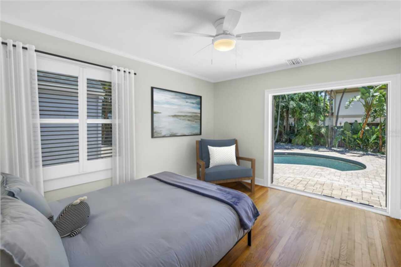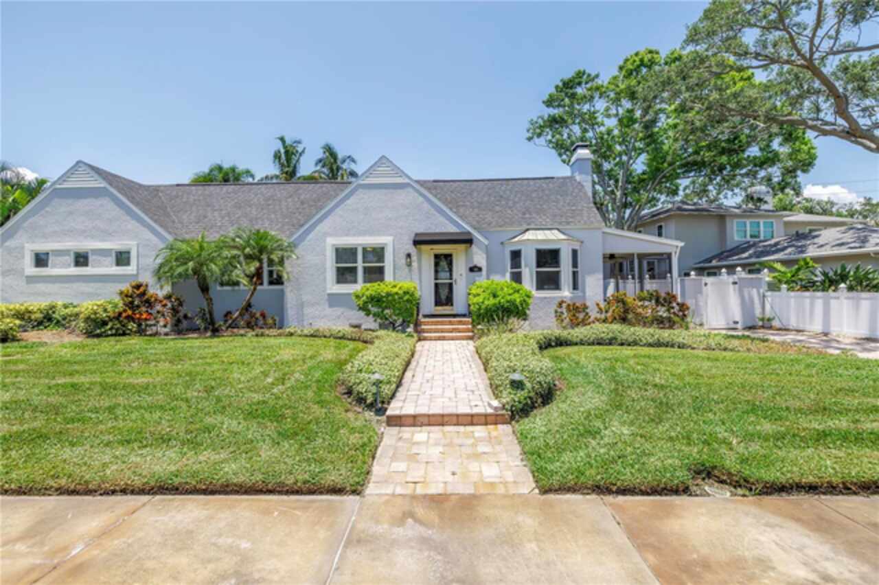 One or more photo(s) has been virtually staged. NO Flooding or Damage here from last year’s storms, a brand new 2024 roof and other infrastructure upgrades offer peace of mind in one of St. Pete’s most cherished areas! Welcome to your slice of mid-century modern paradise nestled in one of St. Petersburg’s most iconic neighborhoods — the cobblestone-lined, palm-draped streets of Historic Old Northeast. Just one block from the shimmering waters of Coffee Pot Bayou, this home offers not only timeless architecture, but a front-row seat to Florida’s vibrant coastal lifestyle. Step inside and immediately feel the warmth of rich wood floors and thoughtful design. The living room flows effortlessly into a cozy sunroom — perfect for morning coffee or a quiet reading nook. Beyond the dining area, you’ll find a charming den that adds another layer of flexibility to the home. At the heart of the home, the kitchen is both spacious and stylish, featuring granite countertops, warm wood cabinetry, newer stainless steel appliances, and a breakfast bar. Whether you’re entertaining or enjoying a quiet meal, the kitchen's openness to the dining area and access to the pool makes it a true hub for connection. The private office, just before entering the primary suite, offers the ideal work-from-home setup with French doors leading directly to the pool — an inspiring view to keep you motivated. The oversized primary suite is a retreat in itself, with soaring vaulted ceilings, a walk-in closet (plus an additional one with laundry), and a beautifully appointed bathroom with dual vanities. And when you're ready to unwind, just step through either set of double doors and take a dip in your backyard oasis. Two more spacious bedrooms complete the home — one with its own ensuite bath and pool access, perfect for guests or a second primary. A third full bathroom is conveniently located off the hall. Step outside and you’re transported to your own tropical resort. The backyard is expansive and newly landscaped with low-maintenance turf, includes a new pool pump/filtration, lush greenery, and a sparkling pool at its center — ideal for sunny afternoons or moonlit swims. A detached two-car garage with alley access provides extra storage and functionality, while the front driveway offers additional off-street parking. And the location? Unbeatable. Just minutes by foot to Vinoy Park, North Shore Beach, and outdoor gyms, volleyball courts, and kayak launches. Dolphins and manatees are your new neighbors. Take a leisurely stroll or bike ride downtown to enjoy some of Florida’s best restaurants, arts, and nightlife. This is more than just a beautiful home — it’s your chance to be part of one of St. Pete’s most vibrant, walkable, and scenic communities. From morning sunrise strolls along the bay to evenings in your private pool, every day here feels effortless