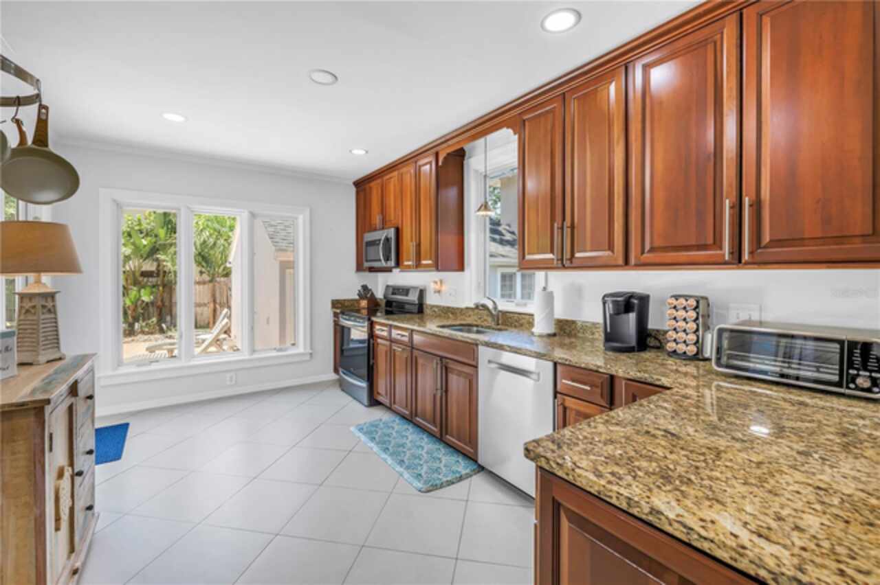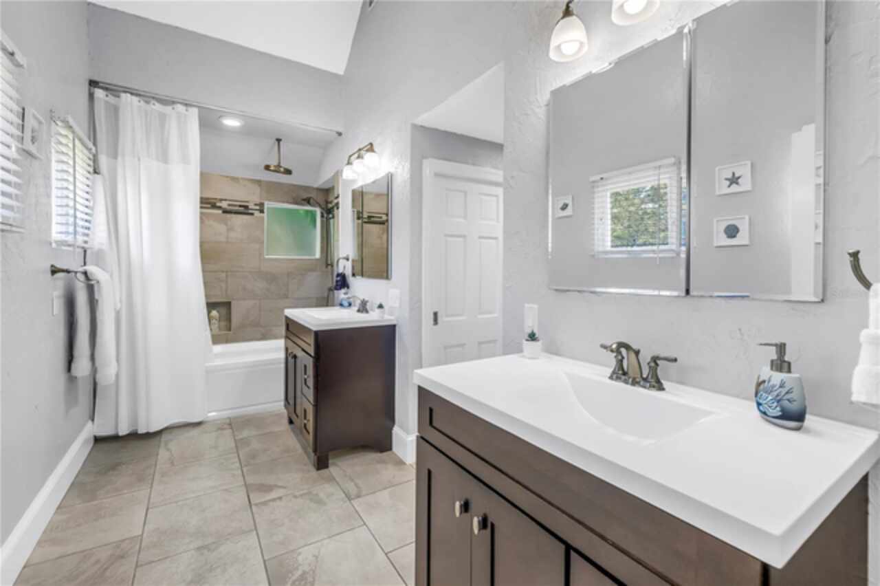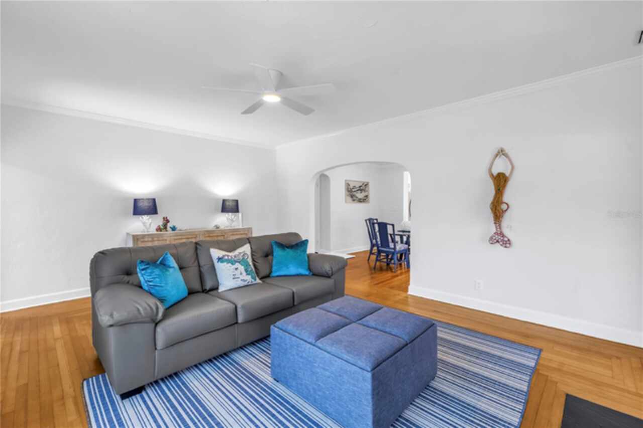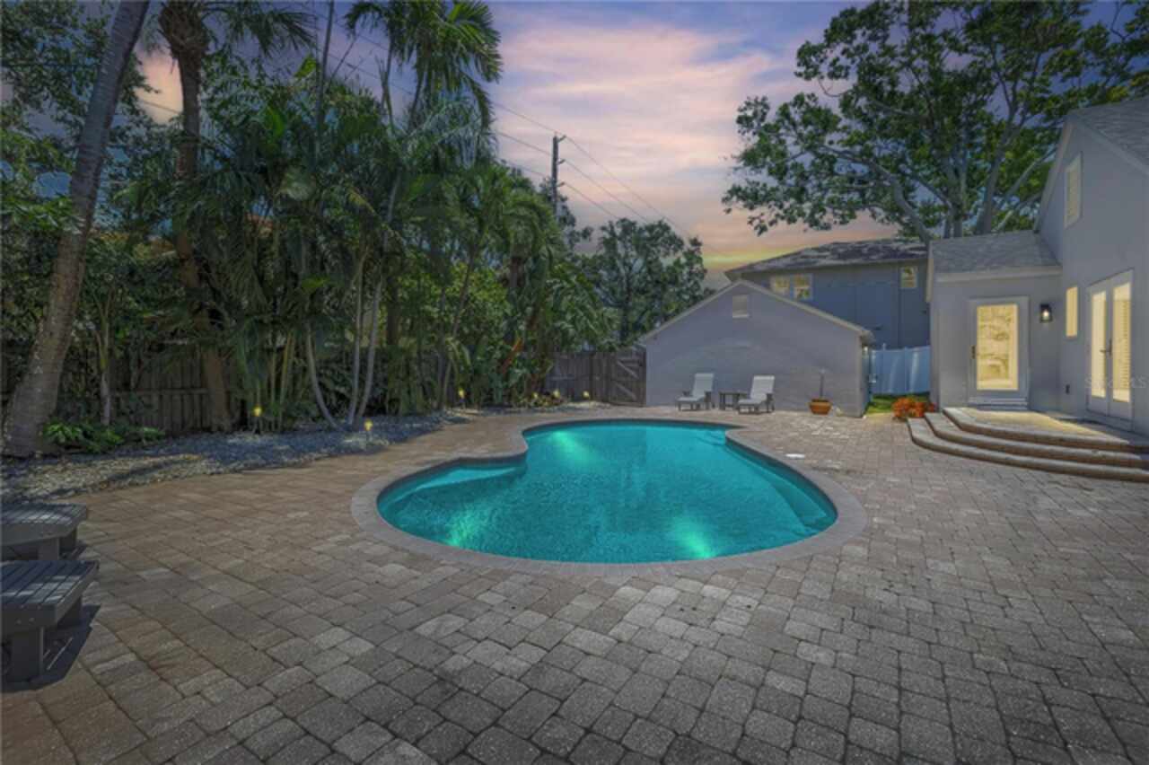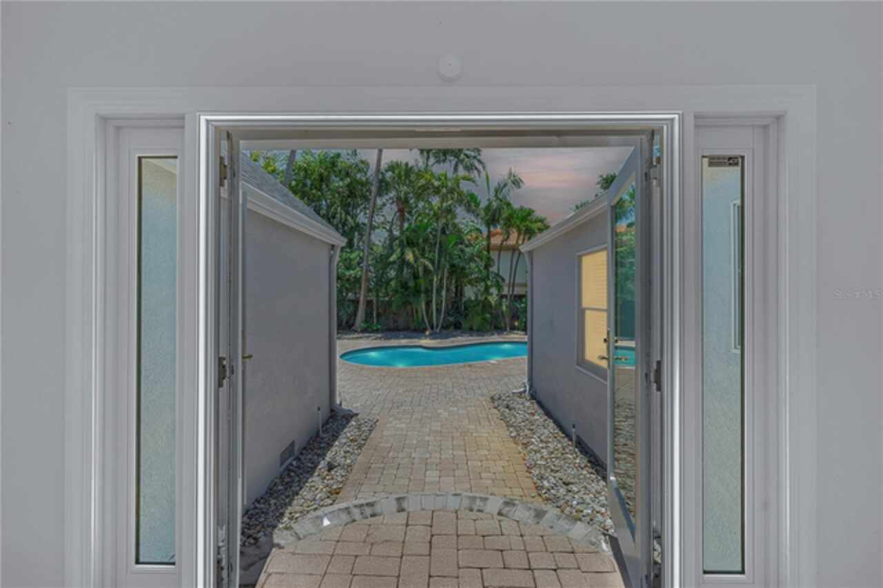 One or more photo(s) has been virtually staged. NO Flooding or Damage here from last year’s storms, a brand new 2024 roof and other infrastructure upgrades offer peace of mind in one of St. Pete’s most cherished areas! Welcome to your slice of mid-century modern paradise nestled in one of St. Petersburg’s most iconic neighborhoods — the cobblestone-lined, palm-draped streets of Historic Old Northeast. Just one block from the shimmering waters of Coffee Pot Bayou, this home offers not only timeless architecture, but a front-row seat to Florida’s vibrant coastal lifestyle. Step inside and immediately feel the warmth of rich wood floors and thoughtful design. The living room flows effortlessly into a cozy sunroom — perfect for morning coffee or a quiet reading nook. Beyond the dining area, you’ll find a charming den that adds another layer of flexibility to the home. At the heart of the home, the kitchen is both spacious and stylish, featuring granite countertops, warm wood cabinetry, newer stainless steel appliances, and a breakfast bar. Whether you’re entertaining or enjoying a quiet meal, the kitchen's openness to the dining area and access to the pool makes it a true hub for connection. The private office, just before entering the primary suite, offers the ideal work-from-home setup with French doors leading directly to the pool — an inspiring view to keep you motivated. The oversized primary suite is a retreat in itself, with soaring vaulted ceilings, a walk-in closet (plus an additional one with laundry), and a beautifully appointed bathroom with dual vanities. And when you're ready to unwind, just step through either set of double doors and take a dip in your backyard oasis. Two more spacious bedrooms complete the home — one with its own ensuite bath and pool access, perfect for guests or a second primary. A third full bathroom is conveniently located off the hall. Step outside and you’re transported to your own tropical resort. The backyard is expansive and newly landscaped with low-maintenance turf, includes a new pool pump/filtration, lush greenery, and a sparkling pool at its center — ideal for sunny afternoons or moonlit swims. A detached two-car garage with alley access provides extra storage and functionality, while the front driveway offers additional off-street parking. And the location? Unbeatable. Just minutes by foot to Vinoy Park, North Shore Beach, and outdoor gyms, volleyball courts, and kayak launches. Dolphins and manatees are your new neighbors. Take a leisurely stroll or bike ride downtown to enjoy some of Florida’s best restaurants, arts, and nightlife. This is more than just a beautiful home — it’s your chance to be part of one of St. Pete’s most vibrant, walkable, and scenic communities. From morning sunrise strolls along the bay to evenings in your private pool, every day here feels effortless