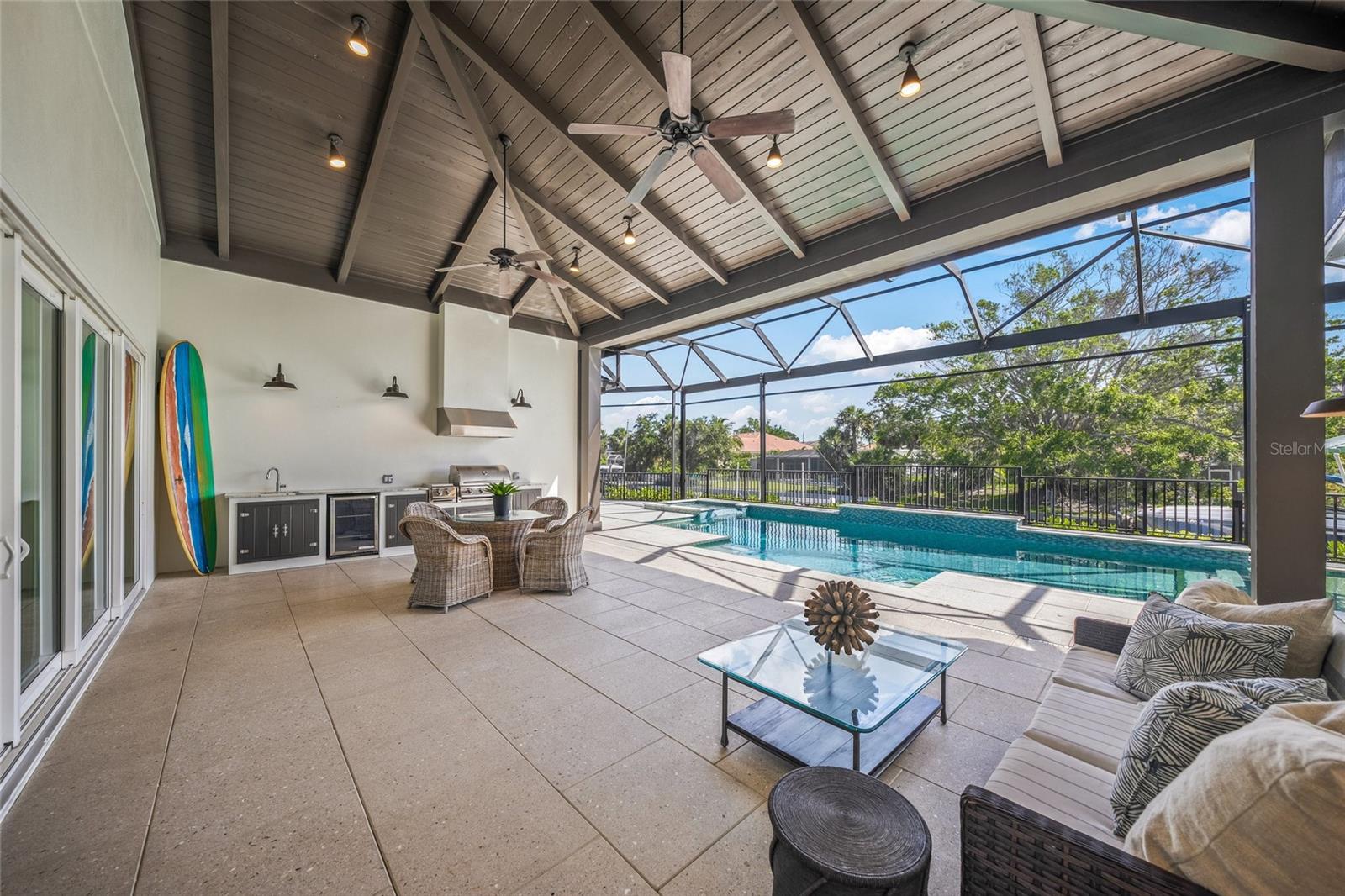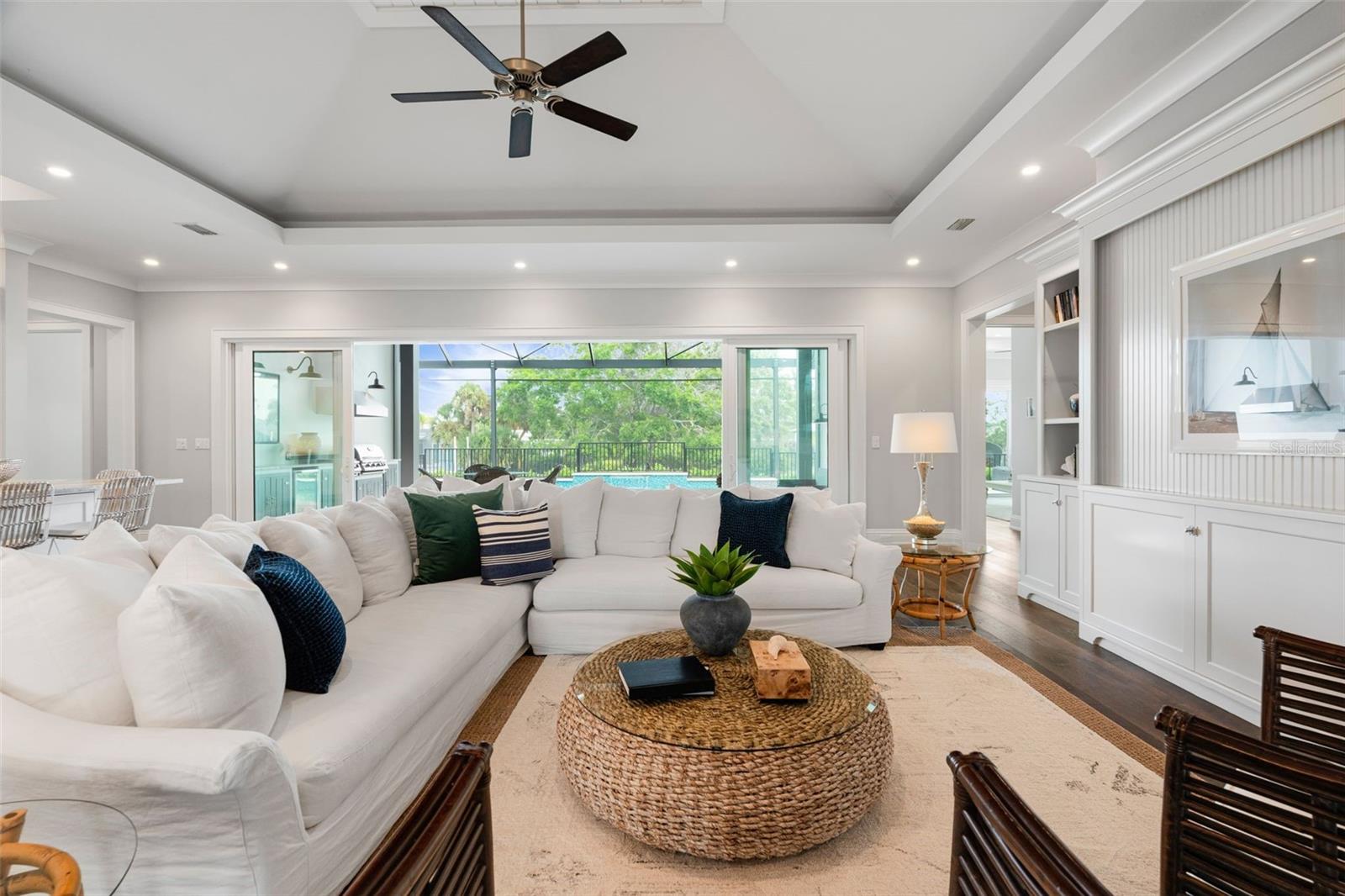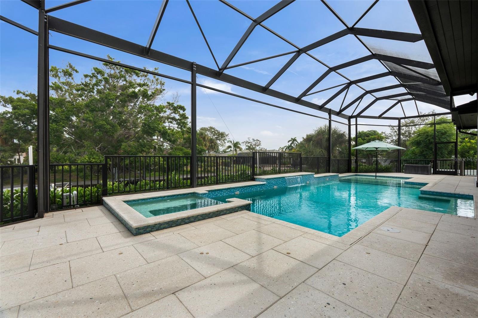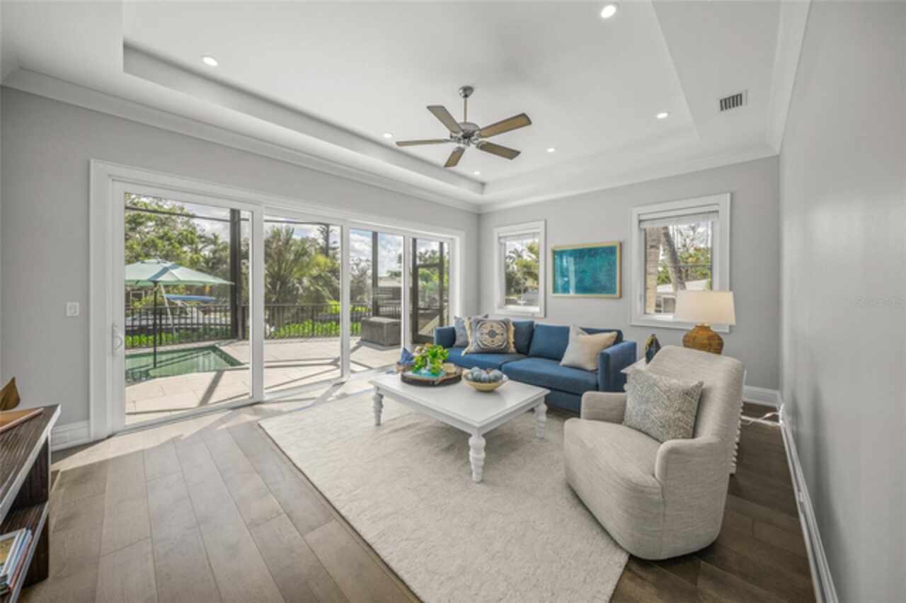LOCATION, LOCATION, LOCATION !!! One Block to the Crystal Sands of Siesta Key Beach the #1 Beach in the USA! Or spend the day on the Aqua waters with two boats on lifts out back, and 119' of frontage on the Grand Canal leading to the ICW (only one bridge with about 15’ clearance to the Gulf). Oversized 16, 163 sf Lot, elevated concrete block home and spectacular pool in your view from most every room! Not just the best location, but this custom-built in 2016 West Indies style home is a fortress all on one level, and is well above flood plain. High and dry through the "storms of the century" in 2024. Beautiful, engineered hardwood floors, and everything freshly painted inside & out. Custom cabinetry and built-ins, as well as several new appliances, including a True Ice Maker. Three large en-suite bedrooms. Four full Baths, a Den/Office/ 4th bedroom with murphy bed, an Open Concept Family room, Dining room & Kitchen, and an extra-large Great Room make living spacious and easy. Large walls of sliding glass doors in all waterfront rooms extend living spaces to a huge, screened Lanai which adds over 500 sf to living space. The total A/C space is 3, 654 sf, with a total of 5, 075 under roof. All hurricane rated extra heavy duty PGT doors and windows. The oversized 3-car garage with an Epoxy floor has a very high ceiling which allows 2 more cars to be added on lifts for a total of 5 vehicles for the enthusiast. Climate controlled enclosed attic storage is available above the rear part of the garage. Both Air conditioning systems and Hot water heater replaced in past year. The large free form pool and spa have new high end Pentair pool pump & heater & auto chlorinator. Both boats as well as professional decorator staged furniture, decor and pictures may be available for separate purchase for "Turn-Key" possession. DEFINITELY check out the Virtual Tour, since it provides “3D walk through any direction” photos which can really give you the flow of the house as you manipulate your way around.
