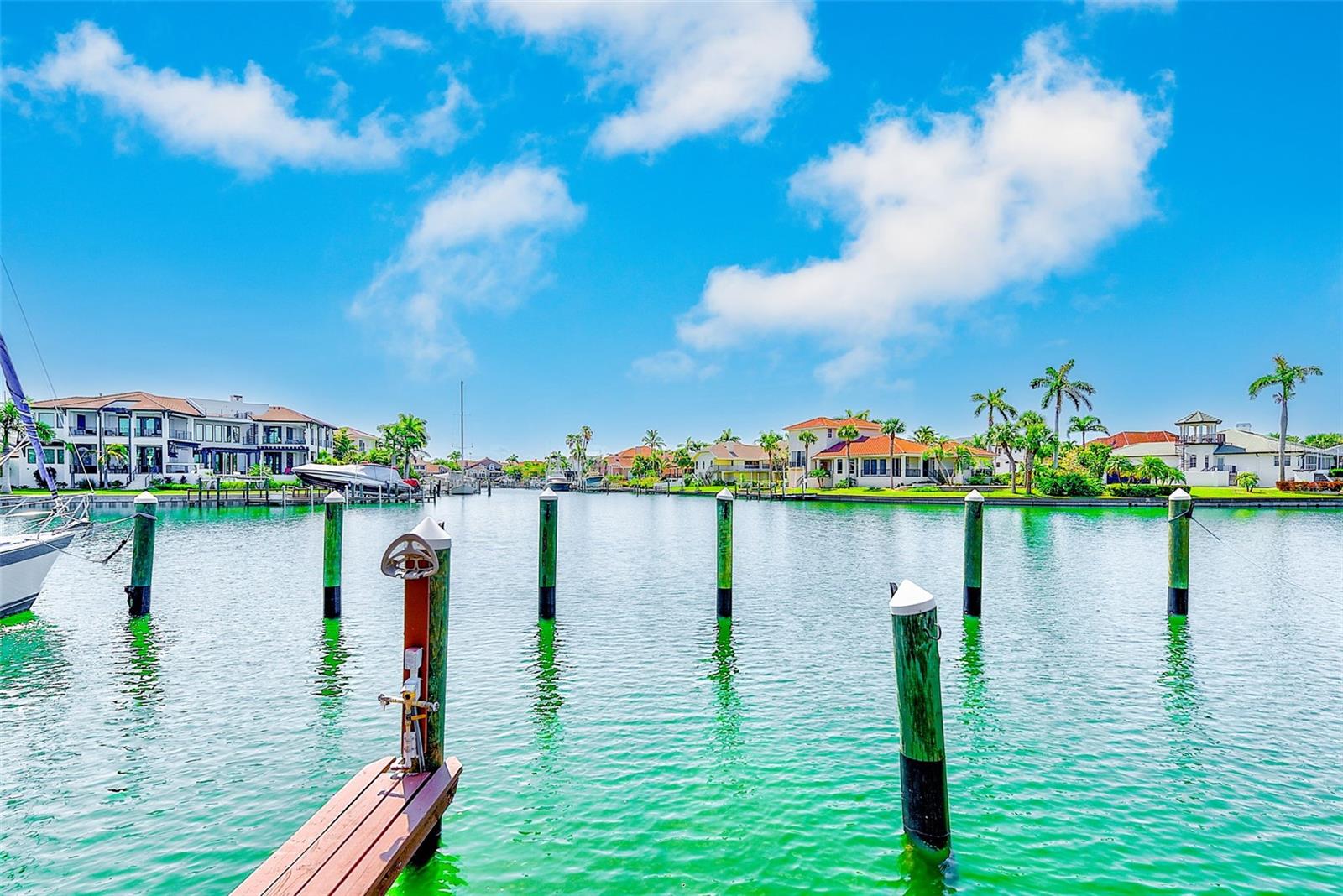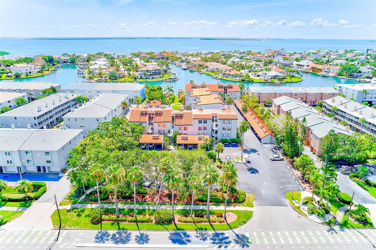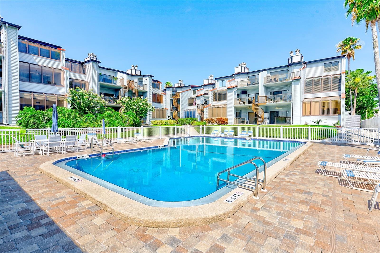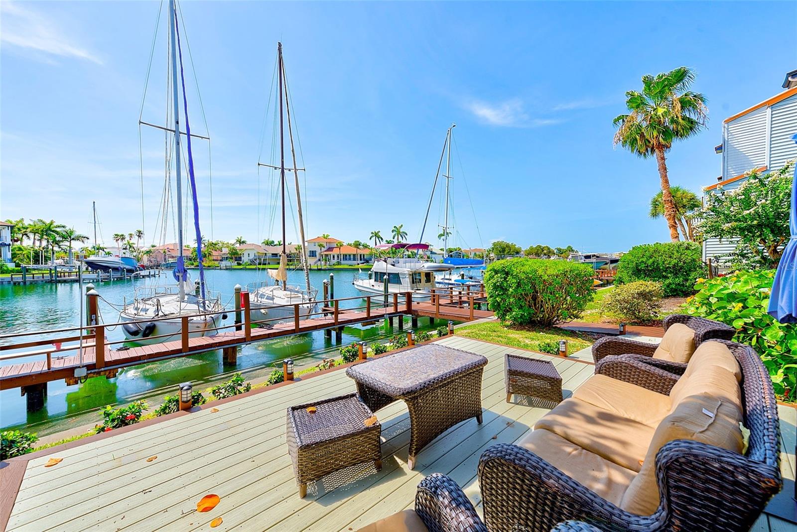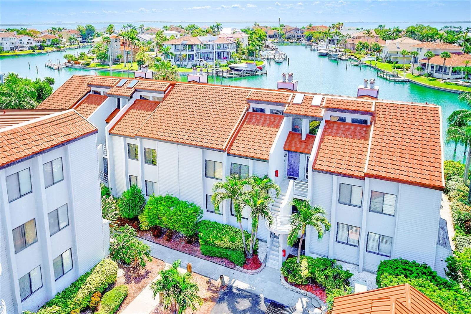 Welcome to this beautiful 2-bedroom, 2-bathroom first-floor waterfront condo in the peaceful and private community of Ciega Verde. Enjoy serene views of the intracoastal waterway right from your covered back patio—with a convenient back-patio stairwell for easy access to the grounds and docks—where you can unwind amid lush landscaping and relaxing breezes. Inside, the freshly painted interior showcases a kitchen that’s a true centerpiece, featuring rich wood shaker cabinets, granite countertops, a center island, decorative open shelving, stainless steel appliances, and tile flooring throughout. Expansive windows flood the space with natural light, especially in the dining area which overlooks the tranquil canal. The spacious primary suite offers dual closets and a luxurious ensuite bathroom complete with a modern barn door, double vanity, and floor-to-ceiling tiled standing shower. The secondary bedroom is generous in size, with garden views and abundant natural light. An updated guest bathroom in the hallway features a quartz countertop vanity, updated tub/shower combo and fixtures, pebble flooring, and a lighted mirror. The open-concept living area connects seamlessly to the kitchen and includes a wood-burning fireplace and large sliding glass doors leading to the covered patio. The patio itself boasts beautiful art deco flooring, a bar area, kitchen pass-through, a new ceiling fan, and convenient storage—perfect for entertaining or relaxing outdoors. Practical upgrades abound: a new roof (2025), new AC (2025), and a dedicated inside utility closet with a full-size washer and dryer make living and maintenance a breeze. Enjoy the convenience of an assigned covered parking space just steps from your front door, along with an additional open parking space and guest parking for visitors. This condo experienced no flooding during last year’s hurricanes; although on the first floor, the residence is set on raised construction that helps keep the living space above potential water intrusion. Association fees include: water, sewer, trash collection, pool maintenance, pest control, exterior maintenance, insurance incl. flood, and grounds care. Ciega Verde is an intimate, laid-back community with just 32 units—offering privacy and a true sense of retreat. Community amenities include a pool, walking paths, waterfront seating, and fishing. Just minutes away is one of the world’s most unique nature preserves, a cluster of "Keys" reminiscent of the Florida Keys, offering endless opportunities to explore. Enjoy quick and easy access to the Gulf of Mexico by boat (slips are available to rent) and be just a 10-minute drive from downtown St. Petersburg, renowned restaurants, and the world-famous beaches of St. Pete Beach and Pass-a-Grille. Everyone who stays here falls in love—come see why.