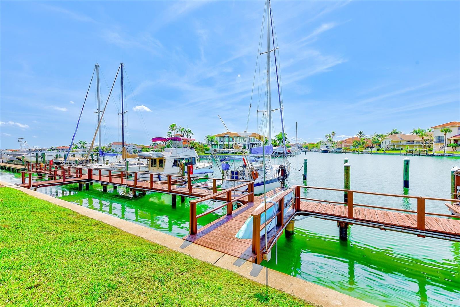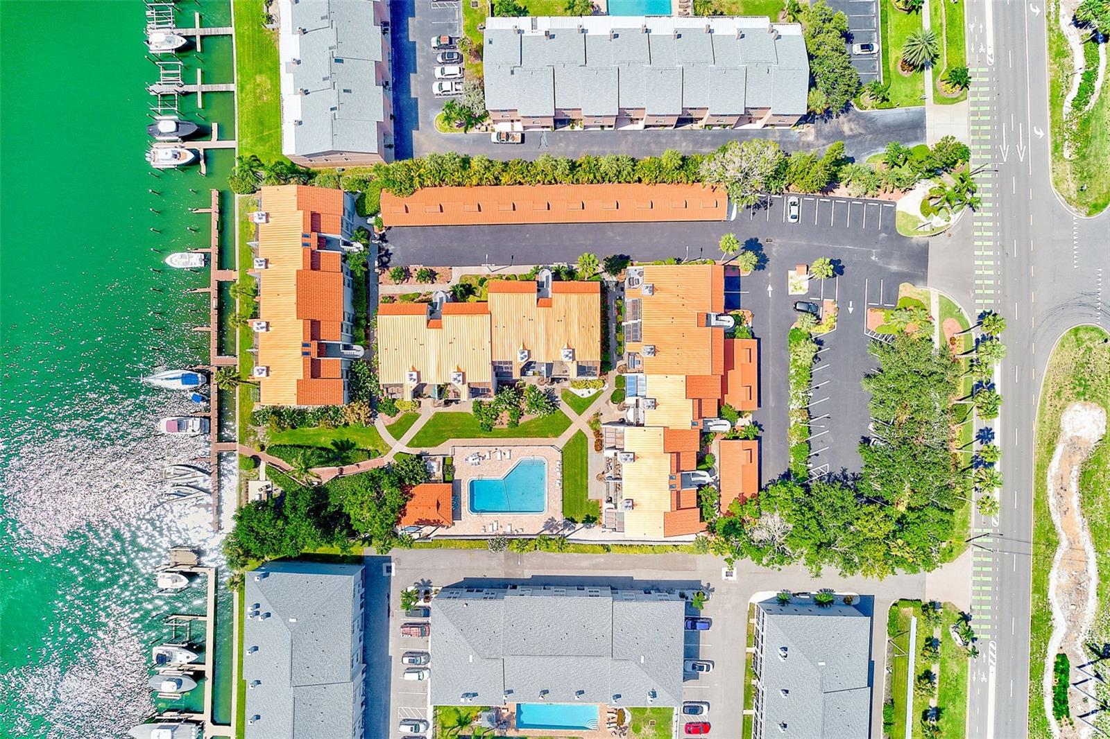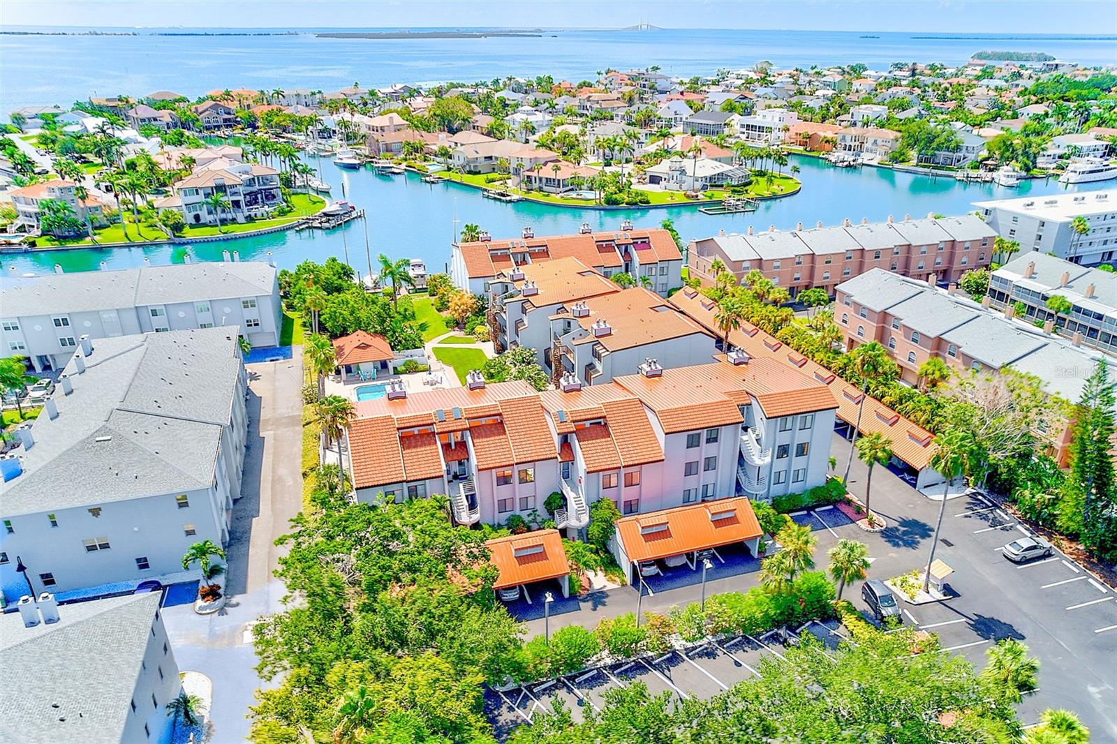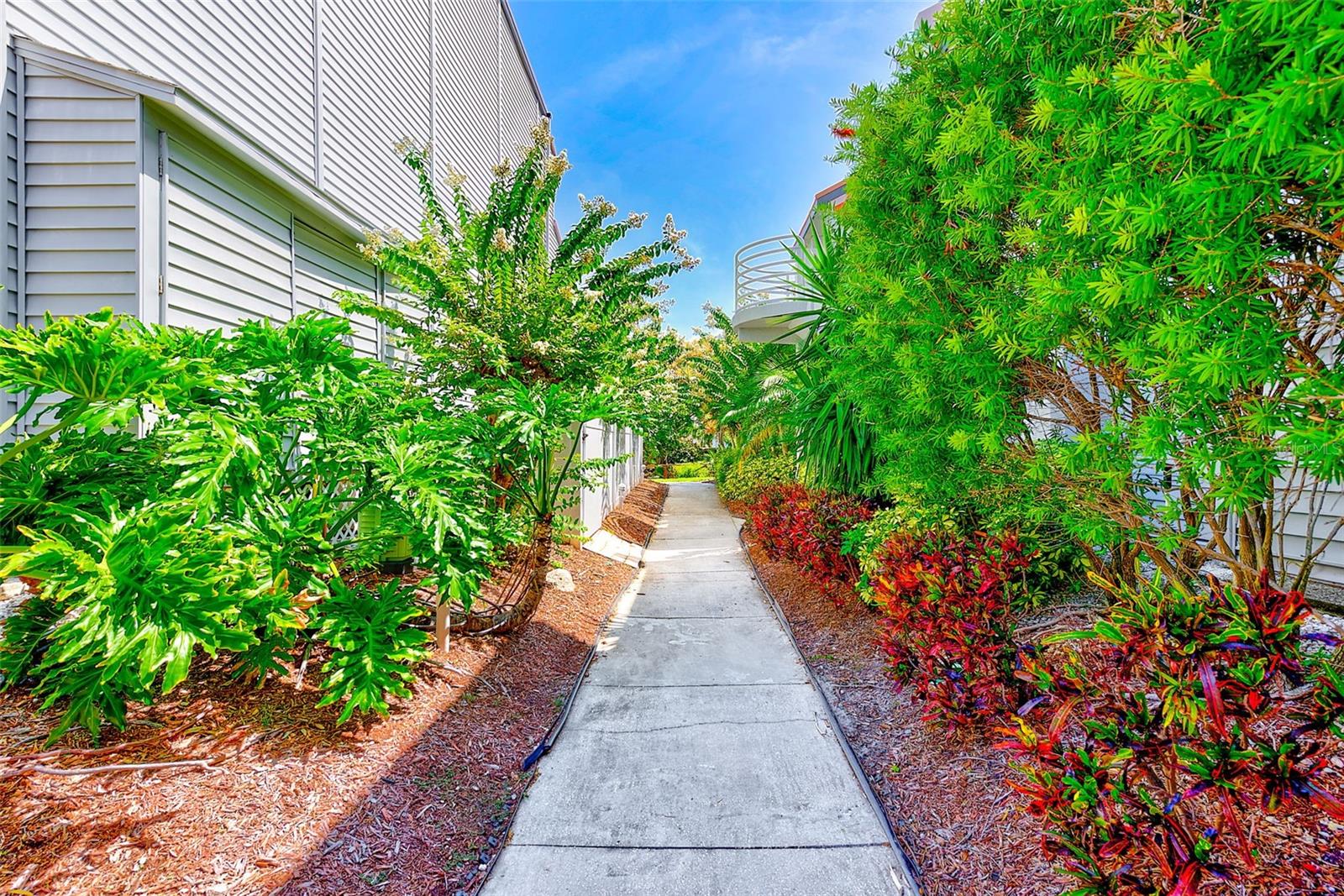 Welcome to this beautiful 2-bedroom, 2-bathroom first-floor waterfront condo in the peaceful and private community of Ciega Verde. Enjoy serene views of the intracoastal waterway right from your covered back patio—with a convenient back-patio stairwell for easy access to the grounds and docks—where you can unwind amid lush landscaping and relaxing breezes. Inside, the freshly painted interior showcases a kitchen that’s a true centerpiece, featuring rich wood shaker cabinets, granite countertops, a center island, decorative open shelving, stainless steel appliances, and tile flooring throughout. Expansive windows flood the space with natural light, especially in the dining area which overlooks the tranquil canal. The spacious primary suite offers dual closets and a luxurious ensuite bathroom complete with a modern barn door, double vanity, and floor-to-ceiling tiled standing shower. The secondary bedroom is generous in size, with garden views and abundant natural light. An updated guest bathroom in the hallway features a quartz countertop vanity, updated tub/shower combo and fixtures, pebble flooring, and a lighted mirror. The open-concept living area connects seamlessly to the kitchen and includes a wood-burning fireplace and large sliding glass doors leading to the covered patio. The patio itself boasts beautiful art deco flooring, a bar area, kitchen pass-through, a new ceiling fan, and convenient storage—perfect for entertaining or relaxing outdoors. Practical upgrades abound: a new roof (2025), new AC (2025), and a dedicated inside utility closet with a full-size washer and dryer make living and maintenance a breeze. Enjoy the convenience of an assigned covered parking space just steps from your front door, along with an additional open parking space and guest parking for visitors. This condo experienced no flooding during last year’s hurricanes; although on the first floor, the residence is set on raised construction that helps keep the living space above potential water intrusion. Association fees include: water, sewer, trash collection, pool maintenance, pest control, exterior maintenance, insurance incl. flood, and grounds care. Ciega Verde is an intimate, laid-back community with just 32 units—offering privacy and a true sense of retreat. Community amenities include a pool, walking paths, waterfront seating, and fishing. Just minutes away is one of the world’s most unique nature preserves, a cluster of "Keys" reminiscent of the Florida Keys, offering endless opportunities to explore. Enjoy quick and easy access to the Gulf of Mexico by boat (slips are available to rent) and be just a 10-minute drive from downtown St. Petersburg, renowned restaurants, and the world-famous beaches of St. Pete Beach and Pass-a-Grille. Everyone who stays here falls in love—come see why.