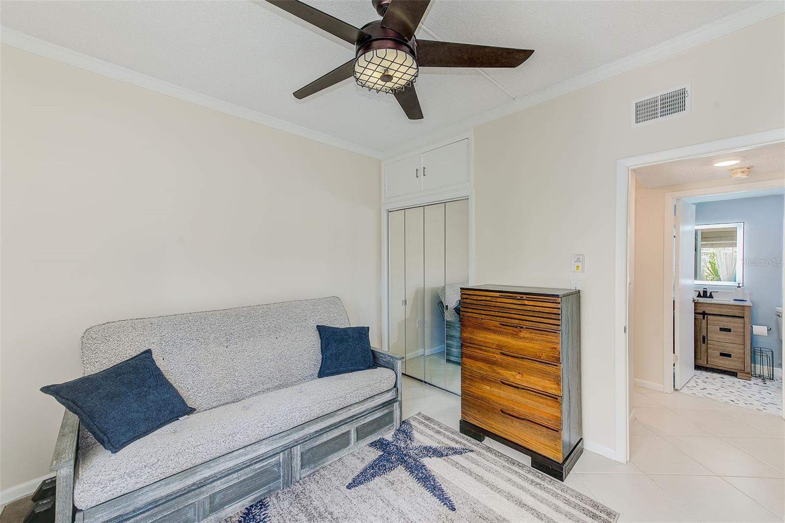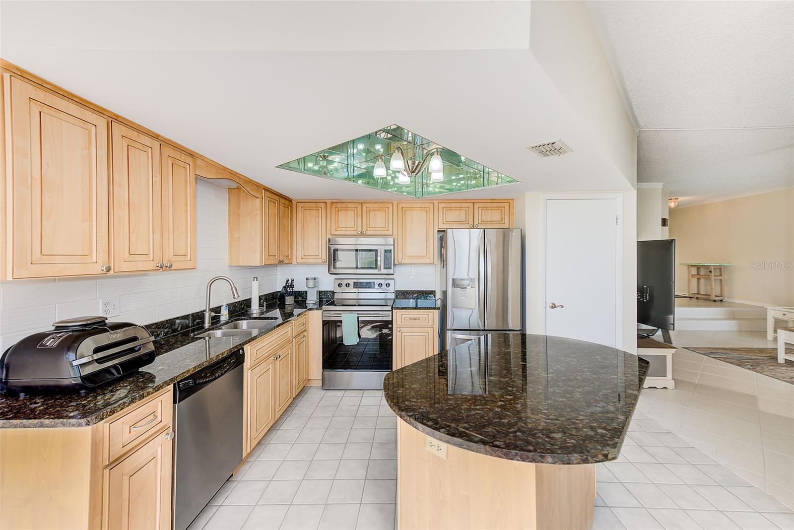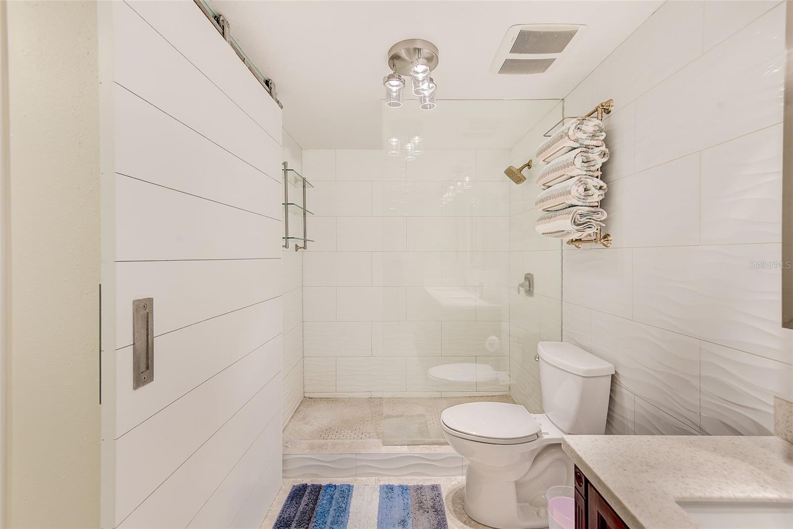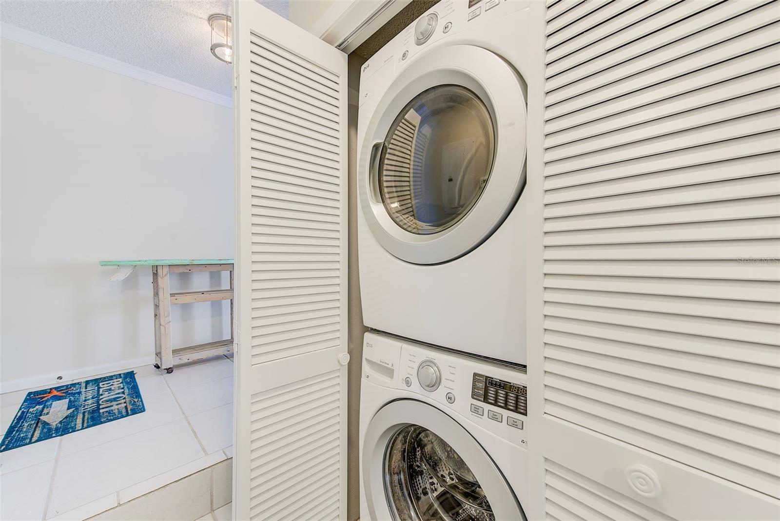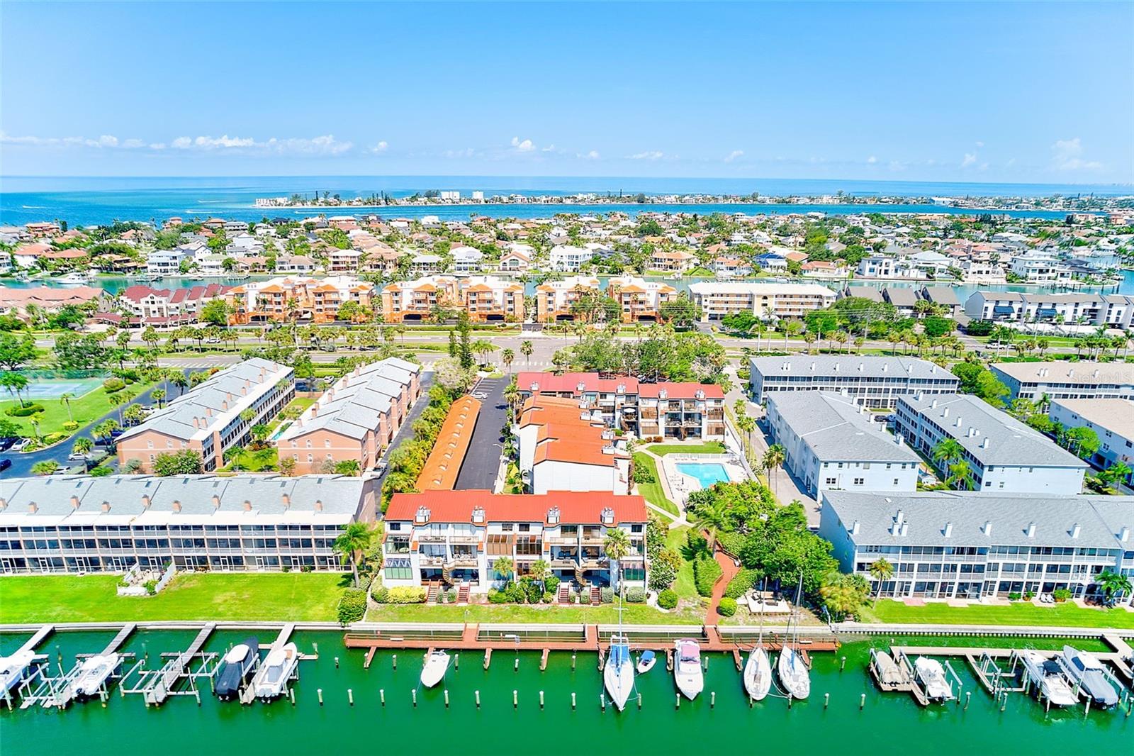 Welcome to this beautiful 2-bedroom, 2-bathroom first-floor waterfront condo in the peaceful and private community of Ciega Verde. Enjoy serene views of the intracoastal waterway right from your covered back patio—with a convenient back-patio stairwell for easy access to the grounds and docks—where you can unwind amid lush landscaping and relaxing breezes. Inside, the freshly painted interior showcases a kitchen that’s a true centerpiece, featuring rich wood shaker cabinets, granite countertops, a center island, decorative open shelving, stainless steel appliances, and tile flooring throughout. Expansive windows flood the space with natural light, especially in the dining area which overlooks the tranquil canal. The spacious primary suite offers dual closets and a luxurious ensuite bathroom complete with a modern barn door, double vanity, and floor-to-ceiling tiled standing shower. The secondary bedroom is generous in size, with garden views and abundant natural light. An updated guest bathroom in the hallway features a quartz countertop vanity, updated tub/shower combo and fixtures, pebble flooring, and a lighted mirror. The open-concept living area connects seamlessly to the kitchen and includes a wood-burning fireplace and large sliding glass doors leading to the covered patio. The patio itself boasts beautiful art deco flooring, a bar area, kitchen pass-through, a new ceiling fan, and convenient storage—perfect for entertaining or relaxing outdoors. Practical upgrades abound: a new roof (2025), new AC (2025), and a dedicated inside utility closet with a full-size washer and dryer make living and maintenance a breeze. Enjoy the convenience of an assigned covered parking space just steps from your front door, along with an additional open parking space and guest parking for visitors. This condo experienced no flooding during last year’s hurricanes; although on the first floor, the residence is set on raised construction that helps keep the living space above potential water intrusion. Association fees include: water, sewer, trash collection, pool maintenance, pest control, exterior maintenance, insurance incl. flood, and grounds care. Ciega Verde is an intimate, laid-back community with just 32 units—offering privacy and a true sense of retreat. Community amenities include a pool, walking paths, waterfront seating, and fishing. Just minutes away is one of the world’s most unique nature preserves, a cluster of "Keys" reminiscent of the Florida Keys, offering endless opportunities to explore. Enjoy quick and easy access to the Gulf of Mexico by boat (slips are available to rent) and be just a 10-minute drive from downtown St. Petersburg, renowned restaurants, and the world-famous beaches of St. Pete Beach and Pass-a-Grille. Everyone who stays here falls in love—come see why.