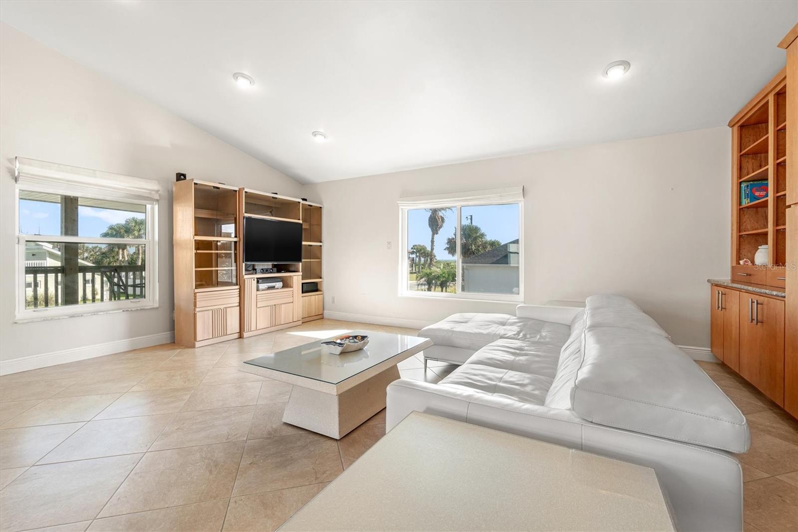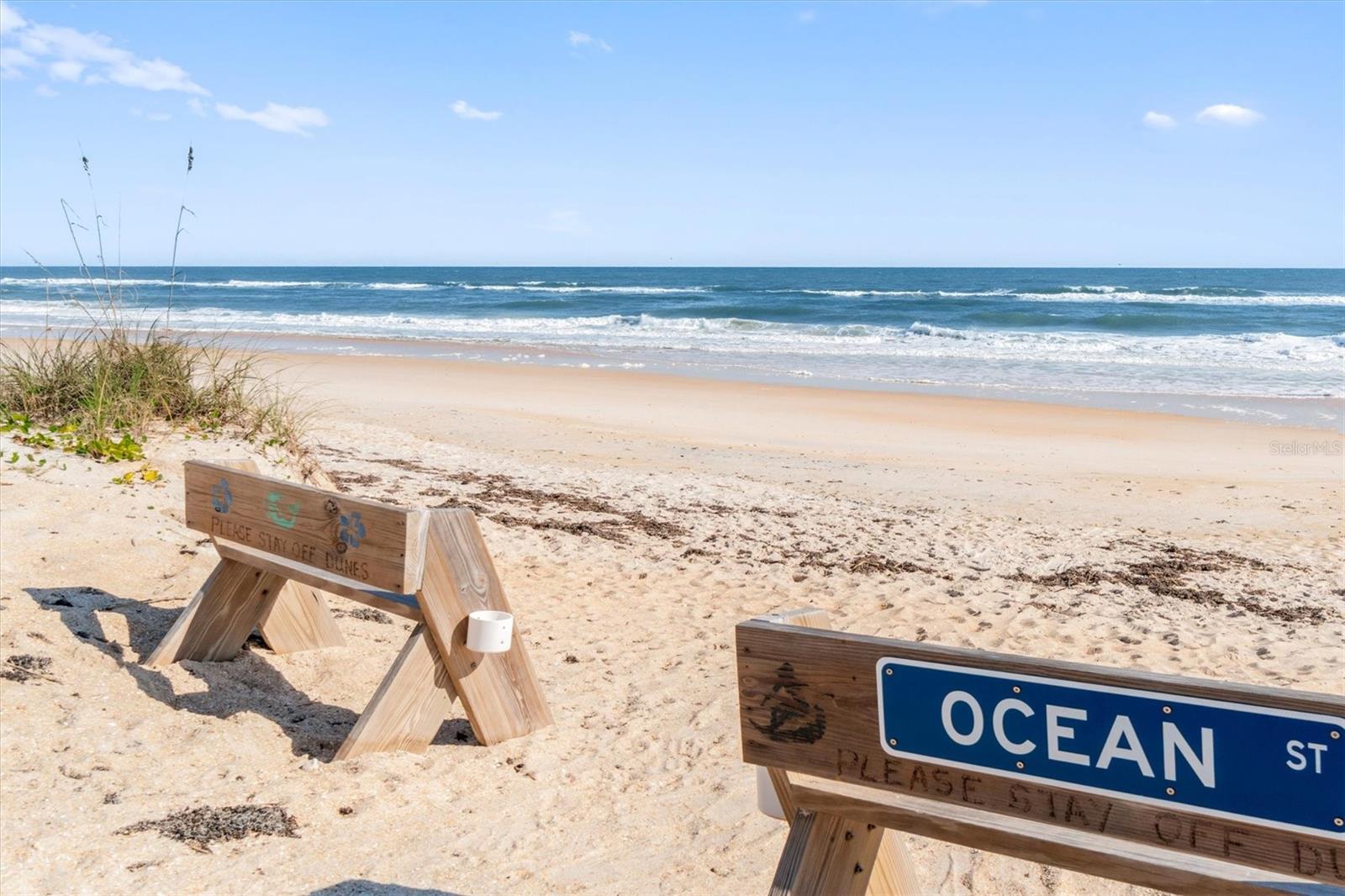 The 4th lot from the ocean, this home captures everything to love about coastal living - forever views, quiet mornings on the shaded porch, and sunlight that fills the backyard by afternoon. This one is for the visionaries; those who understand the value of the irreplaceable beachside location, the health benefits of clean ocean air, the value of nature with the hundreds of acres of nearby conservation land, and the freedom to call this your full time home, vacation getaway or vacation rental (no HOA, short term rentals allowed). Inside the home, vaulted ceilings and Italian porcelain tile create an easy flow through open, light-filled spaces. The kitchen is both beautiful and practical, with granite countertops, maple Craftsmade cabinetry, and stainless steel appliances including a new LG refrigerator. The primary suite is a calm, private retreat that opens to the porch and features an oversized bath with a jacuzzi tub. The second bedroom also offers porch access. Downstairs, a separate guest suite (already plumbed for a full kitchen and laundry) adds versatility. It’s perfect for visitors, extended family, or a private workspace. Built-ins, smooth walls, and thoughtful lighting keep the look clean and timeless. This home has been carefully maintained with all the right updates: hurricane-rated windows and doors, a newer roof, and a full drainage system for peace of mind. Outside, there’s an oversized two-car garage, plenty of parking for a boat or RV, and room for a pool. The solid, concrete block construction and Cedar siding offer protection from both time and weather. Located near Washington Oaks State Park and minutes from St. Augustine and Palm Coast, it’s a place that feels both tucked away and connected. Coastal simplicity meets everyday ease.