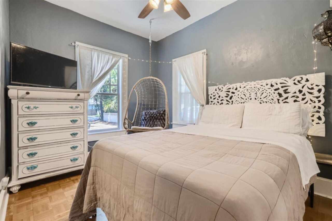 Discover this meticulously maintained Seminole Heights gem, nestled on a large fenced corner lot with a sprawling yard, pavered driveway, and a stunning wrap-around front porch! Inside, you'll find a tastefully decorated living room that seamlessly flows into a spacious, open kitchen and dining area, showcasing beautiful original hardwood floors. The kitchen is a chef’s delight with ample cabinet and counter space, complemented by stainless steel appliances. On one side of the home, the master suite features its own updated bathroom, while the other side includes two additional bedrooms sharing another updated bathroom. A convenient inside utility/laundry room adds to the home's functionality. Set back on the lot, the home offers an expansive front yard and excellent curb appeal. Recent upgrades include a new roof installed in 2022, updated plumbing, updated electrical systems, and a new HVAC system in 2023. This property is perfect for anyone looking to make it their dream home or explore its potential as a high-demand Airbnb. Don’t miss out on this fantastic opportunity—call today to schedule your private viewing!