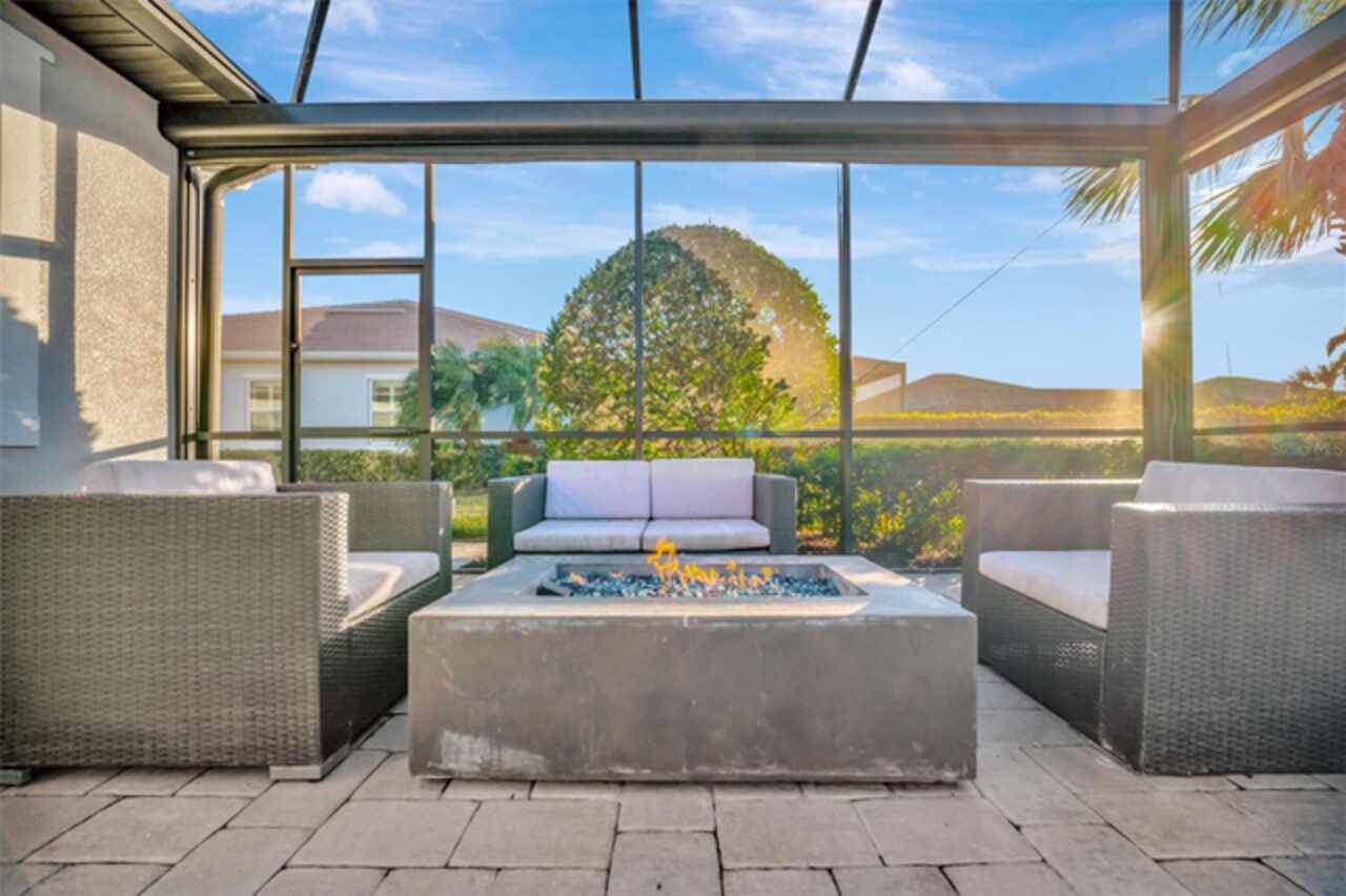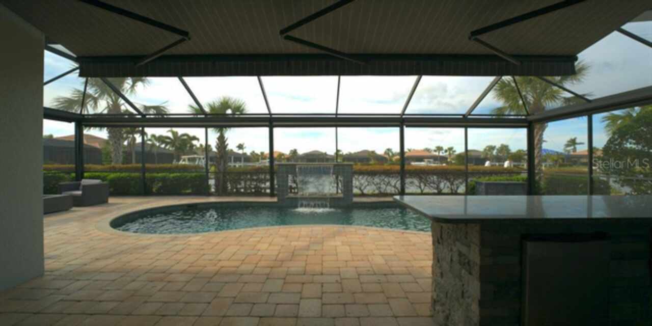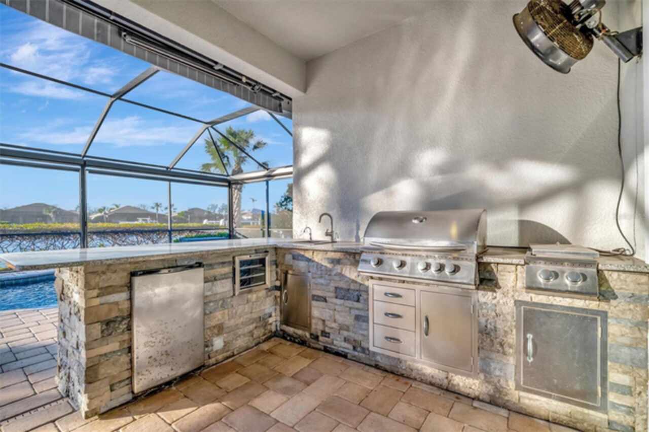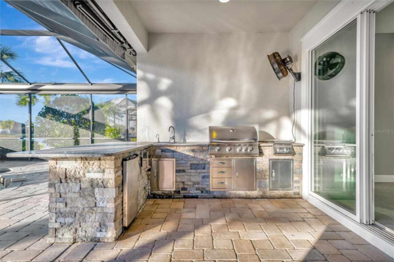 Awning(s), Hurricane Shutters, Outdoor Grill, Outdoor Kitchen, Sliding Doors