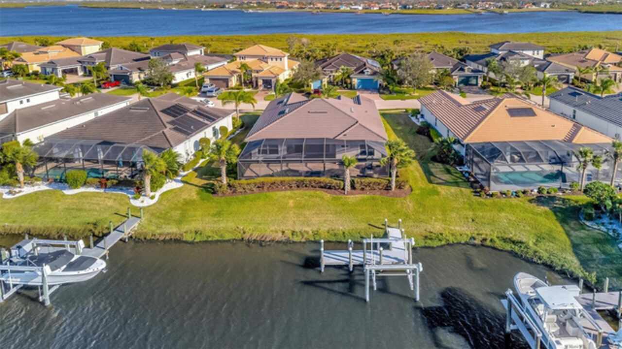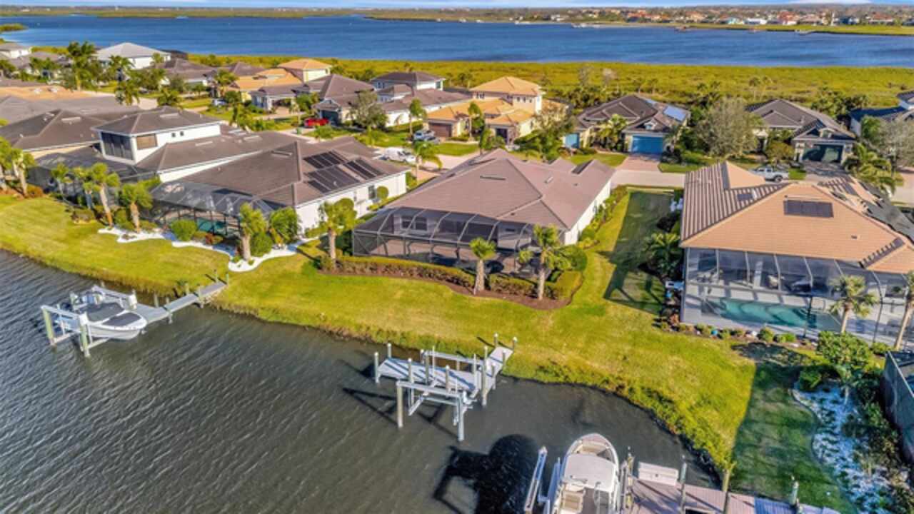 One or more photo(s) has been virtually staged. Interior Freshly painted! Seller Motivated – Offering $5, 000 credit toward closing costs or buyer’s choice of use! Welcome to Tidewater Preserve, Bradenton’s premier boating community, perfectly situated along the scenic Manatee River. This stunning Boretto Model offers breathtaking waterfront views and blends luxury finishes with resort-style living in a private, guard-gated setting. Featuring 3 bedrooms plus a den, 3 baths, and a 3-car garage, this freshly painted home boasts a spacious open floor plan designed for both comfort and entertaining. The chef’s kitchen showcases wood cabinetry, quartz countertops, a large island, stainless steel appliances including a new Samsung refrigerator (2023) and dishwasher (2024), a touchless faucet, and a walk-in pantry with custom shelving. The primary suite offers maximum privacy with a spa-like bath featuring dual sinks, a soaking tub, a walk-in shower, and expansive custom his-and-her closets. Two guest bedrooms with two baths are located on the opposite side of the home for separation and comfort, while a large den provides the perfect office or flex space. Set on a 110-foot waterfront lot with a 12, 000 lb boat lift and Trex dock, the outdoor oasis is designed for year-round enjoyment. The oversized salt-generated Pebble Tec pool and spa feature LED lighting, a dramatic waterfall with firewall, and a new rapid heater, all enclosed by a no-see-um screen for comfort. Entertain with a fully equipped outdoor kitchen, relax around the gas firepit with cozy seating, or unwind under the remote-controlled awning and privacy screens. Additional features include a dedicated pool bath, whole-house Kinetico water softener, smart thermostat, Ring doorbell, tankless water heater, custom closets, premium surround sound system inside and out, and extended driveways. Recent updates in 2024 include freshly painted interior and exterior, roof cleaned and sealed, and HVAC and ductwork serviced. Tidewater Preserve offers a true Florida lifestyle with 24-hour guard security, three resort-style pools, two fitness centers, tennis courts, clubhouse, riverfront nature trails, a dog park, playground, kayak launch, and marina—all with no CDD fees. Boating enthusiasts will love the community boat lift with direct access to the Manatee River, perfect for reaching your favorite waterfront restaurant, Anna Maria Island, or Egmont Key. End each day with breathtaking sunsets from your private dock and embrace the ultimate waterfront lifestyle in Bradenton’s most sought-after community.