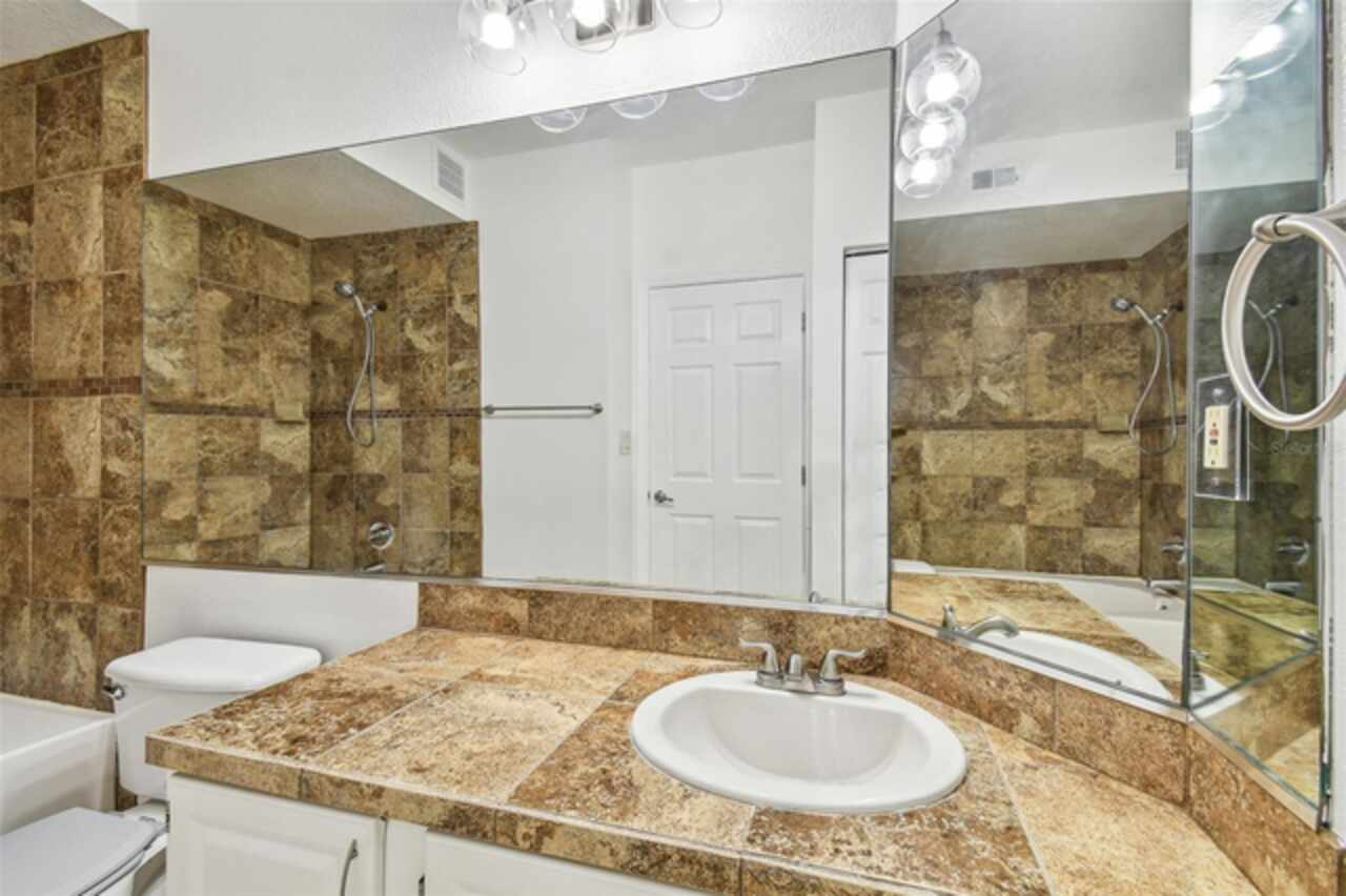 Back on the Market. Buyer Couldn’t Proceed. Here's your second chance to own this stunning condo – don't miss out! Location! Location! Location! Great opportunity to be the proud new owner of a beautiful 2 bedroom/2 bathroom condo in the Pinnacle at Carrollwood complex located in the desirable and sought after Carrollwood area. This spacious condo boasts of 2 large bedrooms, each with walk-in closets and two full baths. The kitchen features all black appliances including refrigerator, dishwasher, range and microwave giving a sleek, modern feel. A separate dining area with chandelier provides space for family and friends to dine comfortably. The nicely sized living room provides plenty of space for both entertaining or just relaxing. A sliding glass door leads to your own private balcony when you can sit back, relax and enjoy the views An outside closet on the balcony provides extra storage for outdoor cushions and/or items to be kept from the weather. The laundry area is right off the kitchen making doing the laundry a breeze. Stone countertops in the kitchen and both bathrooms not only look stunning but makes cleanups a breeze. Ceiling fans adorn both bedrooms as well as the living room helping to keep everyone cool and comfortable. Beautifully maintained complex with mature, manicured landscaping and beautiful ponds with fountain. Complex amenities include a beautiful community pool, a recreation building and an exercise/fitness center. Don't let this one pass you by...schedule your showing today!