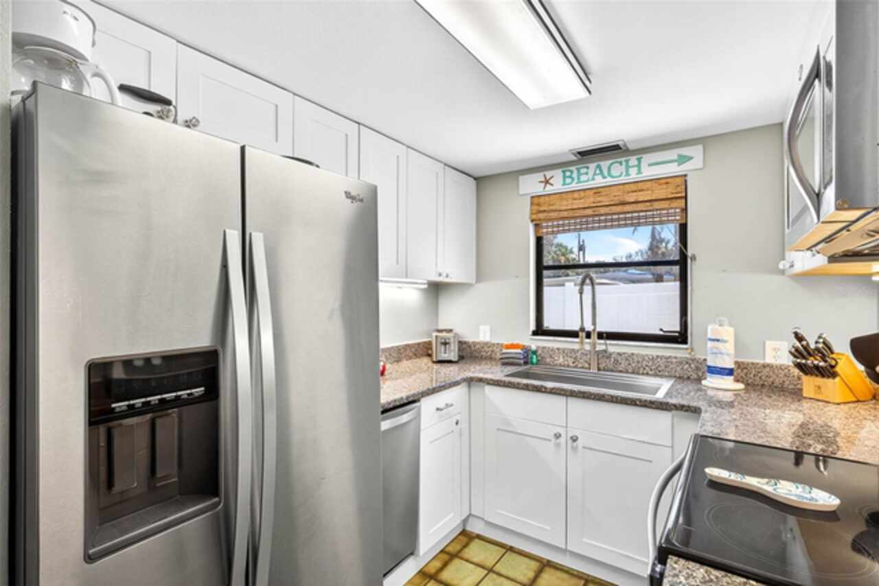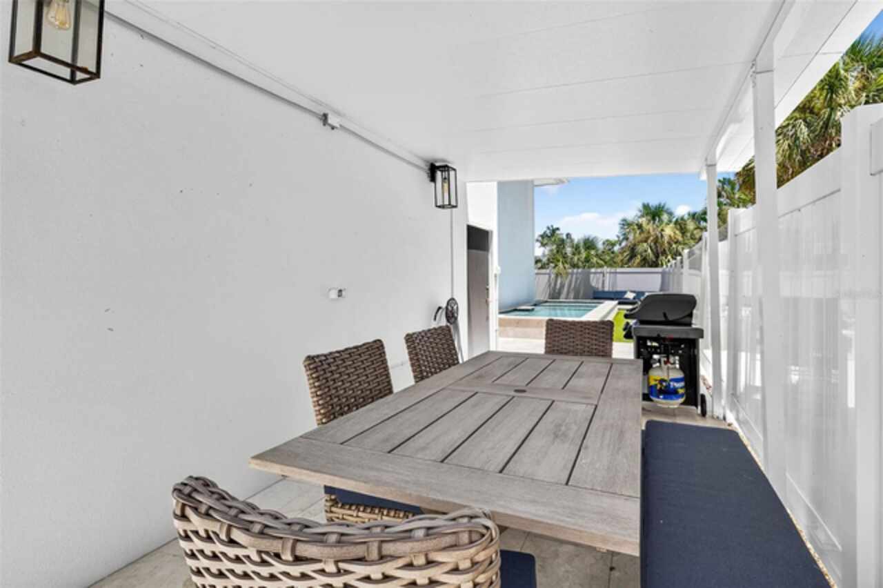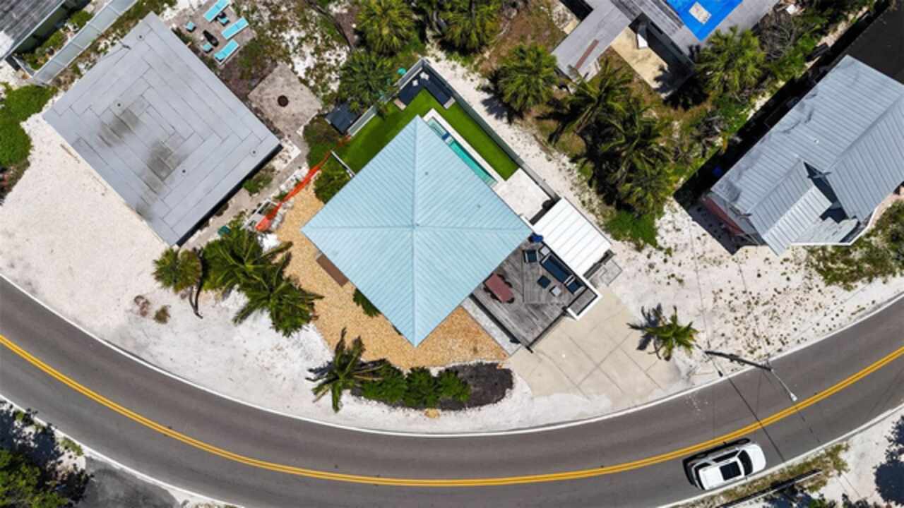 Under contract-accepting backup offers. UNDER CONTRACT ACCEPTING BACK UP OFFERS Welcome to this stunning coastal retreat, inspired by the iconic architecture of Frank Lloyd Wright, located on the sought-after Anna Maria Island. With private beach access just steps across the street and breathtaking Gulf Views from the spacious second story balcony, this home offers the ultimate island lifestyle. This two-story beauty features 3 bedrooms and 2 bathrooms, providing the perfect blend of modern comfort and coastal charm. The modern kitchen is equipped with brand new granite countertops and stainless-steel appliances, offering a sleek and functional space for everyday living. Up the stairs to the second floor, you will find the large living room designed for relaxation, with tall cleanings that create an airy, open feel. Step outside to the expansive balcony, perfect for enjoying the Gulf breeze and serene surroundings. The primary bedroom also located upstairs features a private balcony where you can unwind while taking in the island views. Additional features include a private driveway, with extra parking on the west side of the home, and a garage to store all your beach gear. After a day at the beach, rinse off in the new pool and spa, or relax under the covered patio area, all surrounded by a privacy vinyl fence and premium artificial turf for easy upkeep. AC 2 years old, metal roof in excellent condition, Impact windows, Hurricane window sliders, Pentair pool system, rainbird irrigation. This property also has a strong track record as a short-term rental, making it a fantastic investment opportunity. plus, you're just a short walk from Anna Maria Island's best restaurants, shops, and nightlife. As a Bonus you can take advantage of an assumable mortgage at a low rate of 2.75! Don't miss out on this unique opportunity to own a piece of paradise. schedule your private showing today!