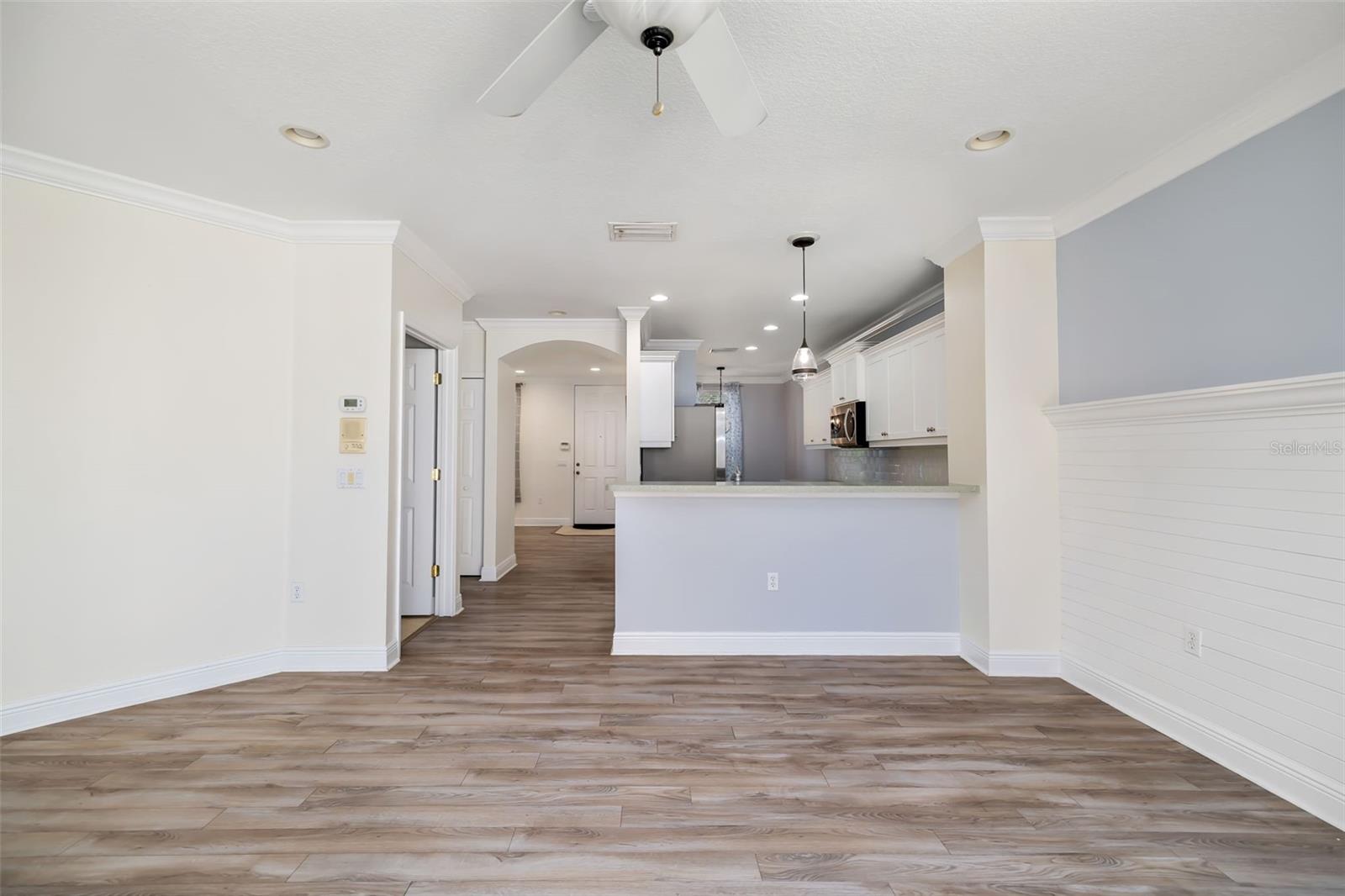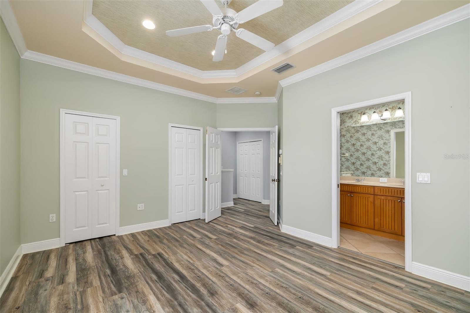 Ceiling Fans(s), Crown Molding, Kitchen/Family Room Combo, Solid Surface Counters, Thermostat, Tray Ceiling(s), Walk-In Closet(s)