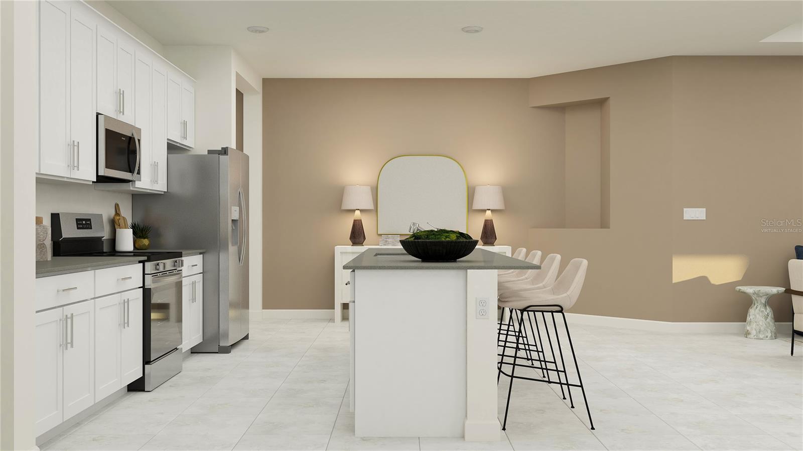 One or more photo(s) has been virtually staged. Under Construction. This new single-level Lakewood II defines luxury; it features a spacious and modern layout with ample room to live and grow. A convenient flex space can be found off the foyer near two secondary bedrooms. An open-concept floorplan with access to a lanai is ideal for seamless entertaining, with a nearby game room and bedroom off the main living space. The luxurious owner’s suite provides access to a spa-inspired bathroom and dual walk-in closets. Every home comes with Lennar’s Everything’s Included® promise, which includes all appliances as well as quartz countertops, blinds, and more in the price of your home. Springhead Lakes in Bridgewalk is one of the most anticipated new communities. At Bridgewalk, families can take advantage of the glorious resort-style swimming pool, extravagant clubhouse, with a state-of-the-art fitness center, playground, basketball & volleyball courts along with close proximity to Lake Ajay! What are you waiting for? Call and make an appt today.